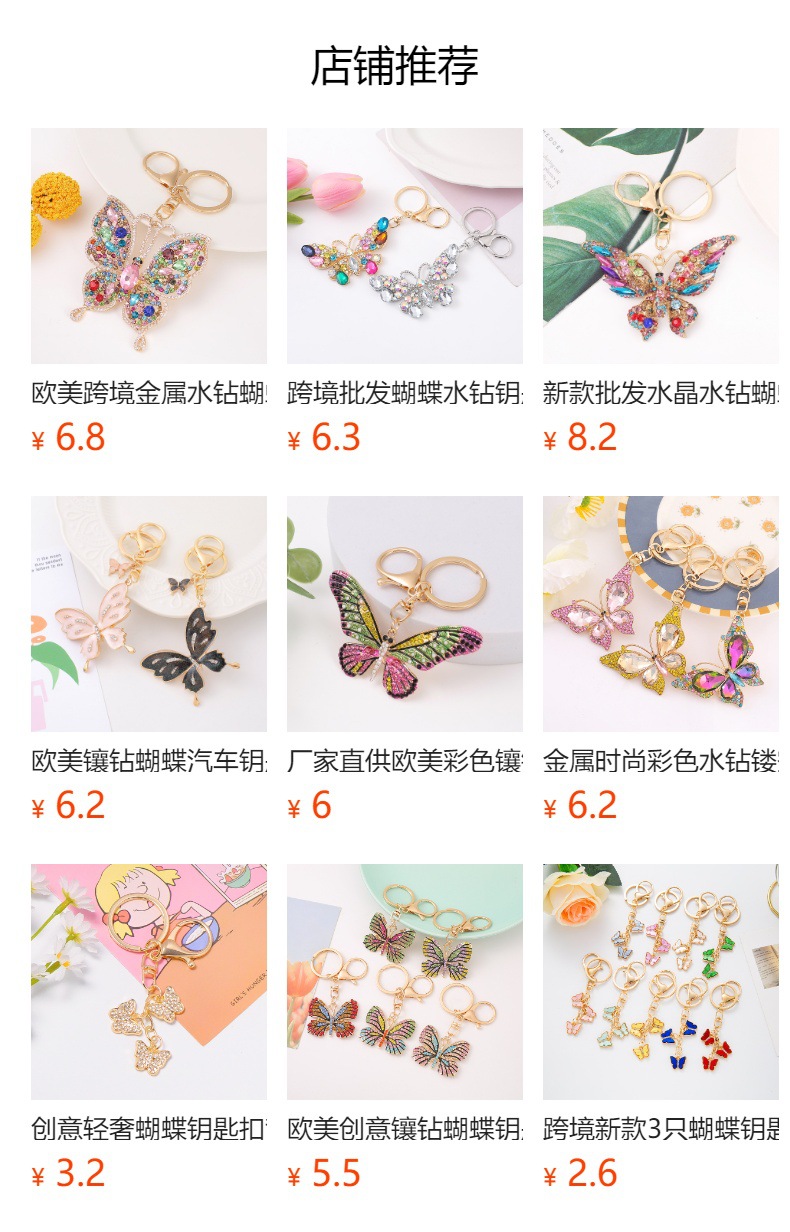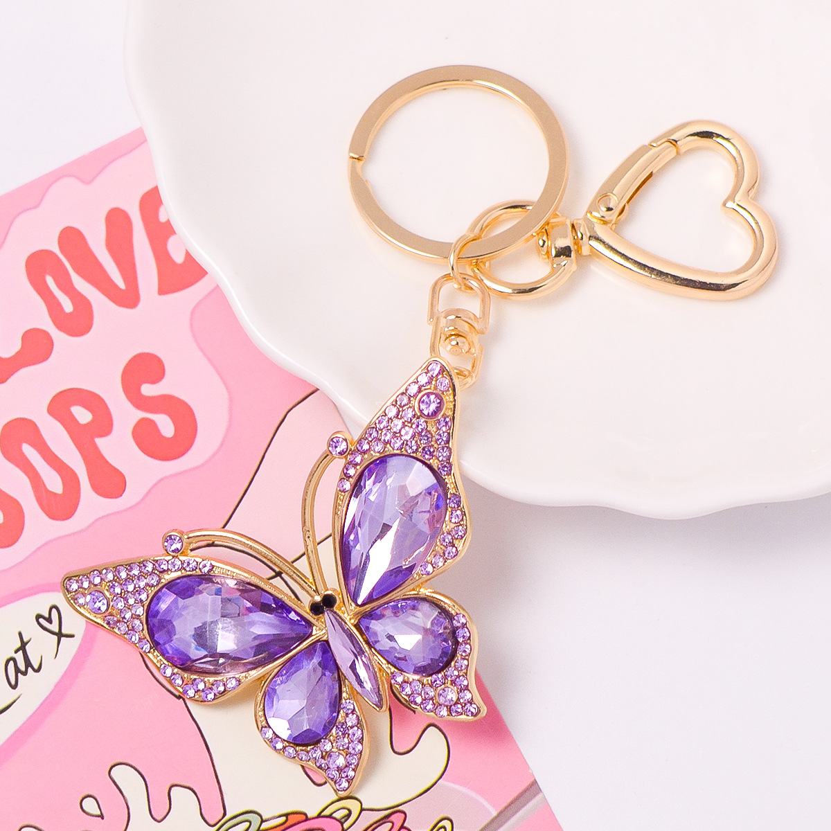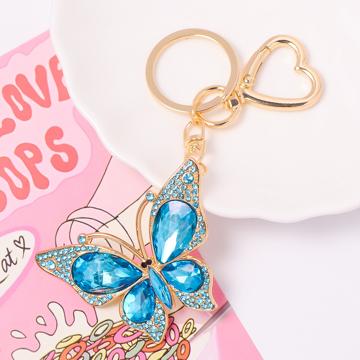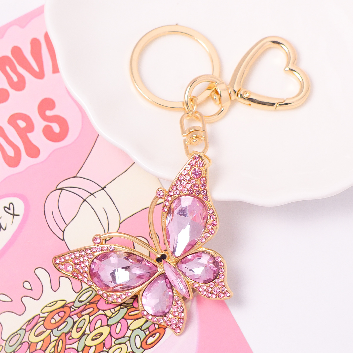 大钻彩色蝴蝶爱心钥匙扣小挂件小饰品配件钥匙链义乌小商品批货
