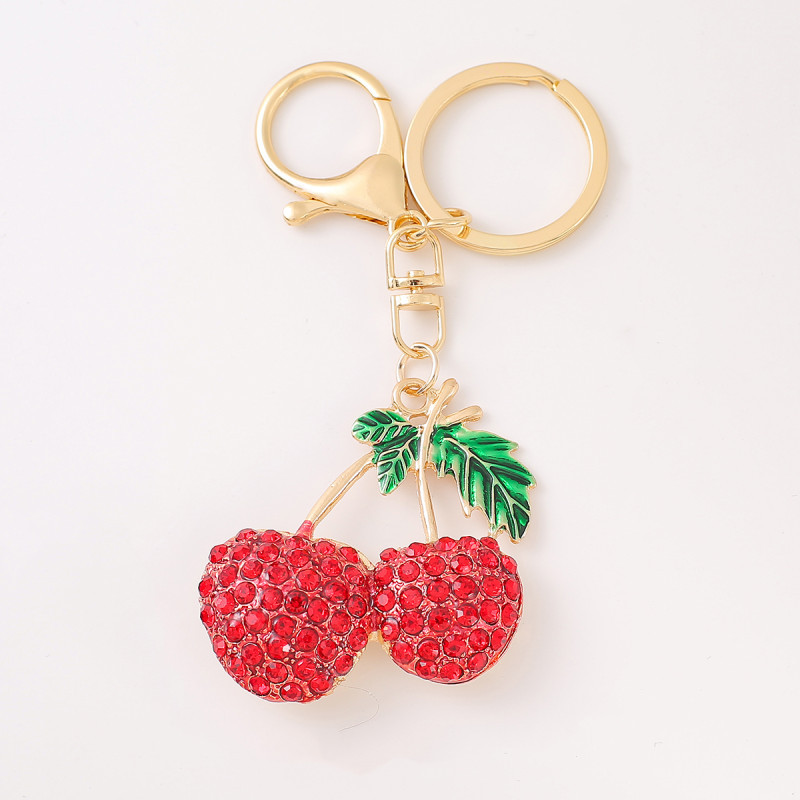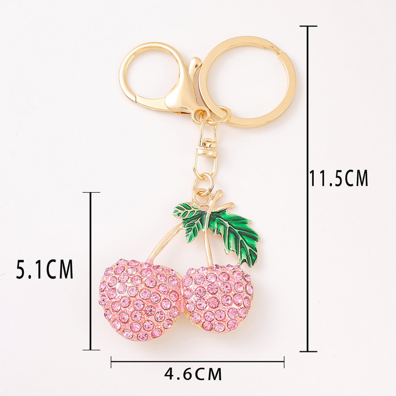 新款创意樱桃钥匙扣可印logo滴油工艺水钻金属水果汽车挂件高级感