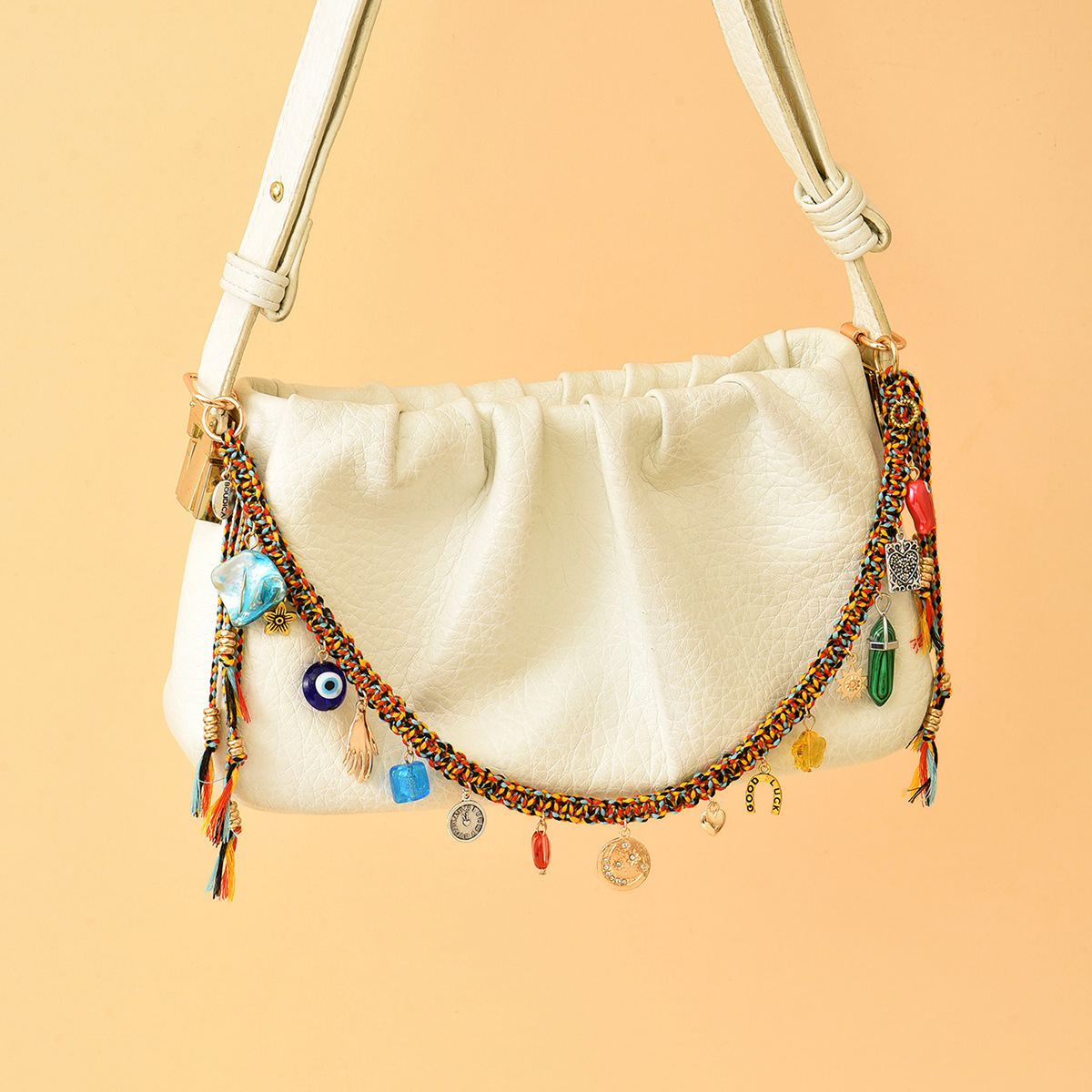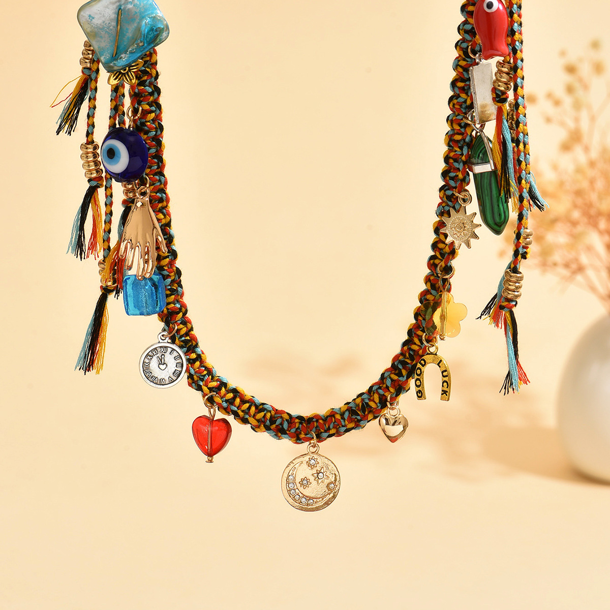 跨境热销 个性潮流恶魔之眼金属几何爱心吊坠编织 Freepeople包链
