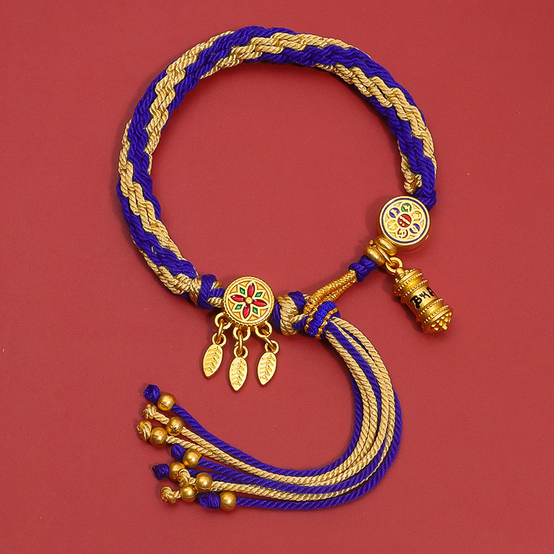 藏式唐卡手绳西藏diy吊坠饰品手饰手工编织轮回手链民族风五彩绳