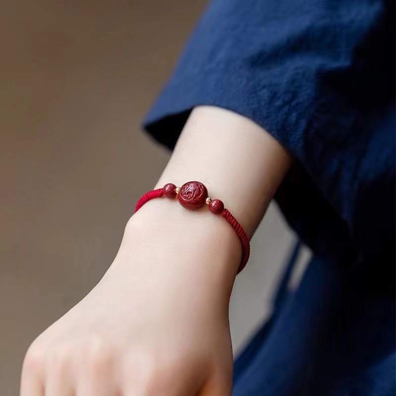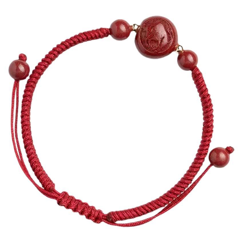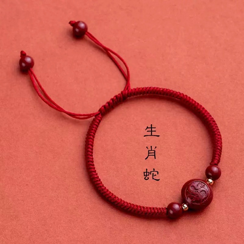 朱砂十二生肖红绳手链女蛇马猪狗龙本命年编织手绳男朱砂儿童手链
