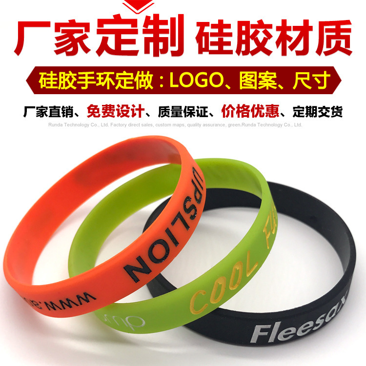 硅胶手环定 做印刷logo浮雕凹刻填色字夜光手腕表带橡胶手环光身