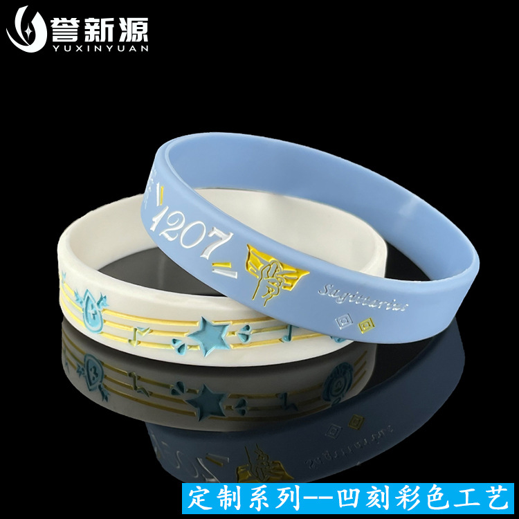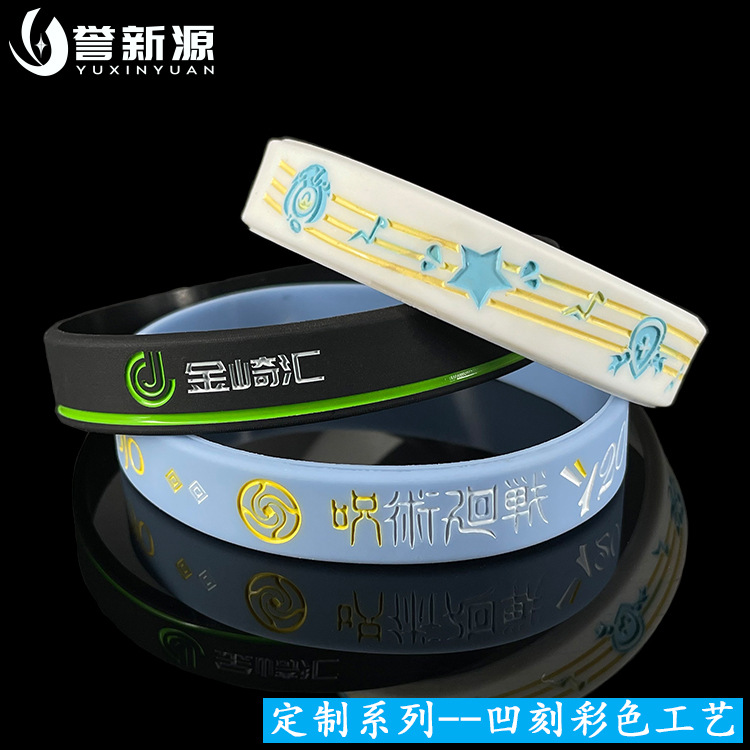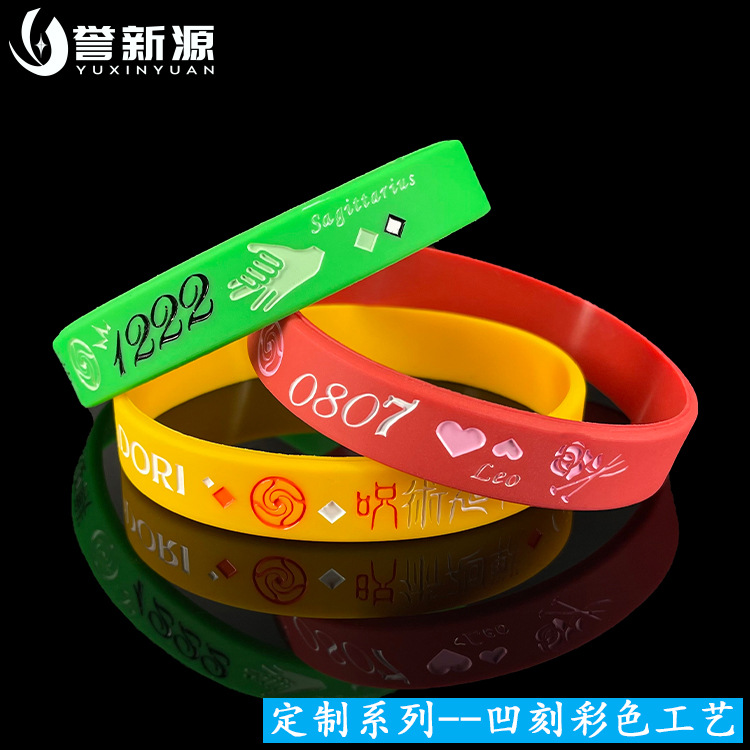 批发欧美简约民族风凹刻涂色硅胶手环腕带定制雕刻刻字手腕带
