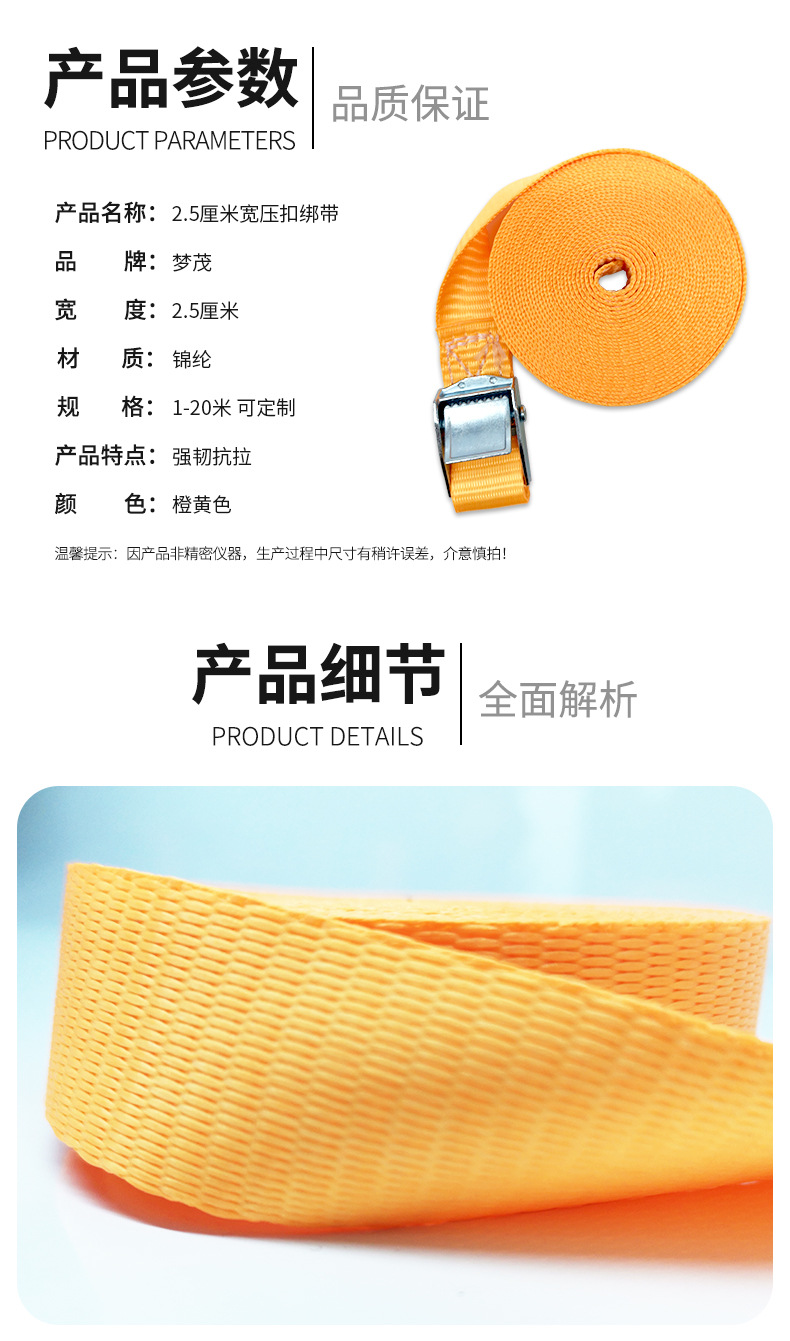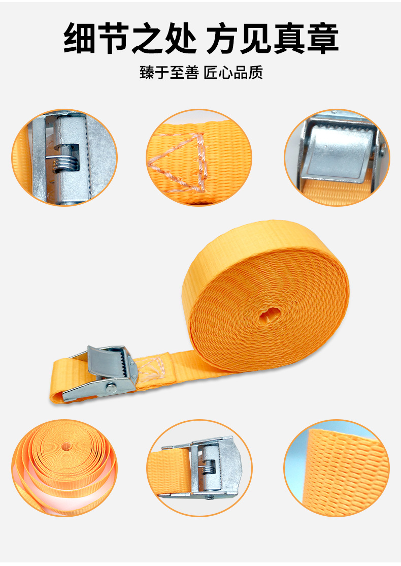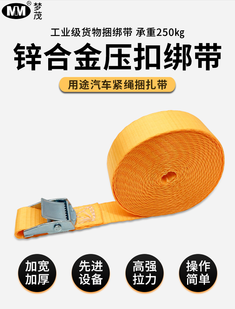 压扣绑带锌合金锌扣货车捆绑带橙色涤纶织带货物固定绳收紧带工厂