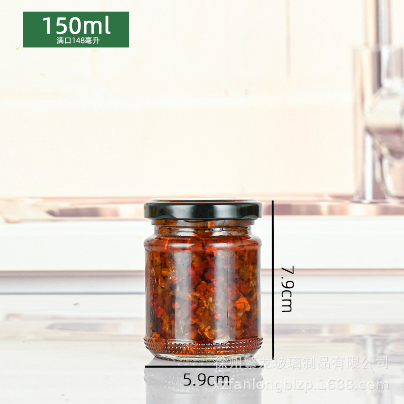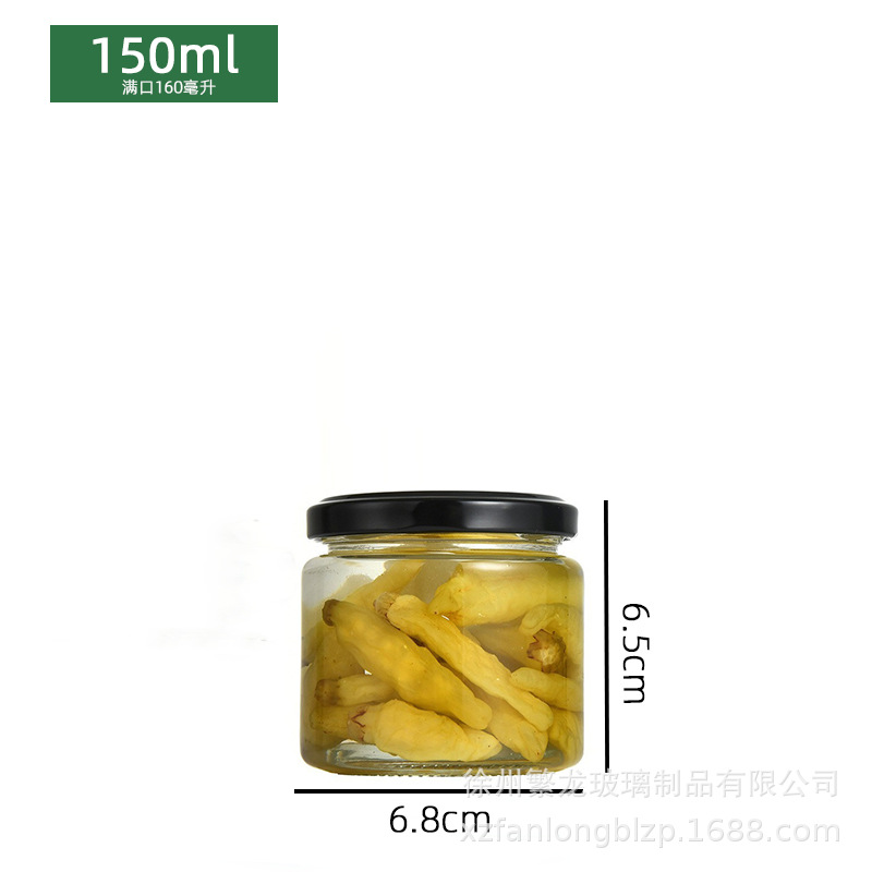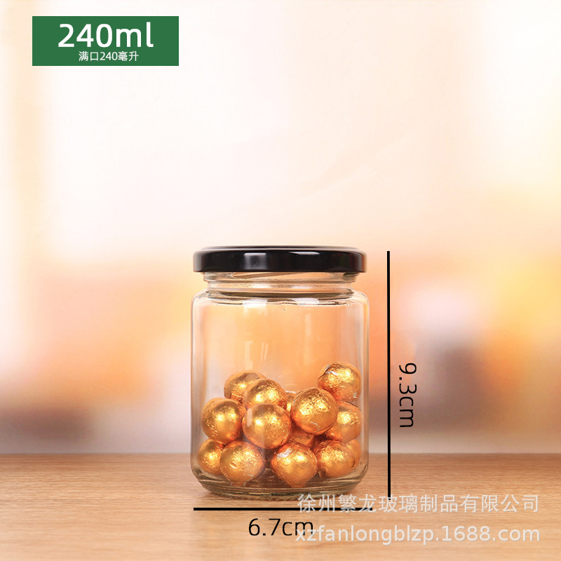 圆形酱菜玻璃瓶透明蜂蜜果酱密封储物罐辣椒酱罐头瓶带盖厂家货源