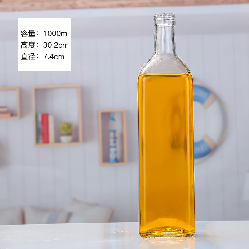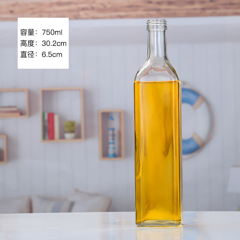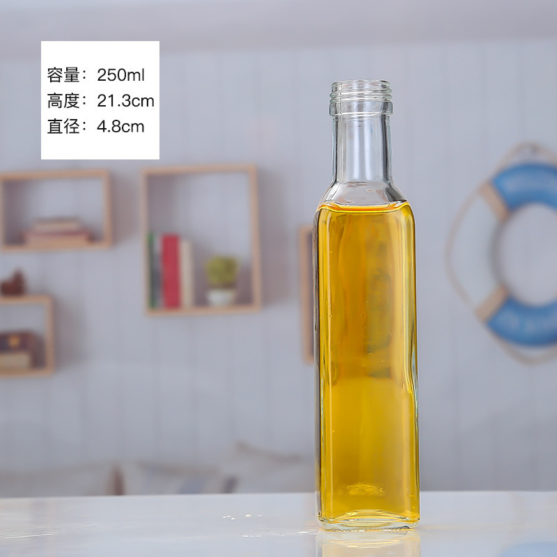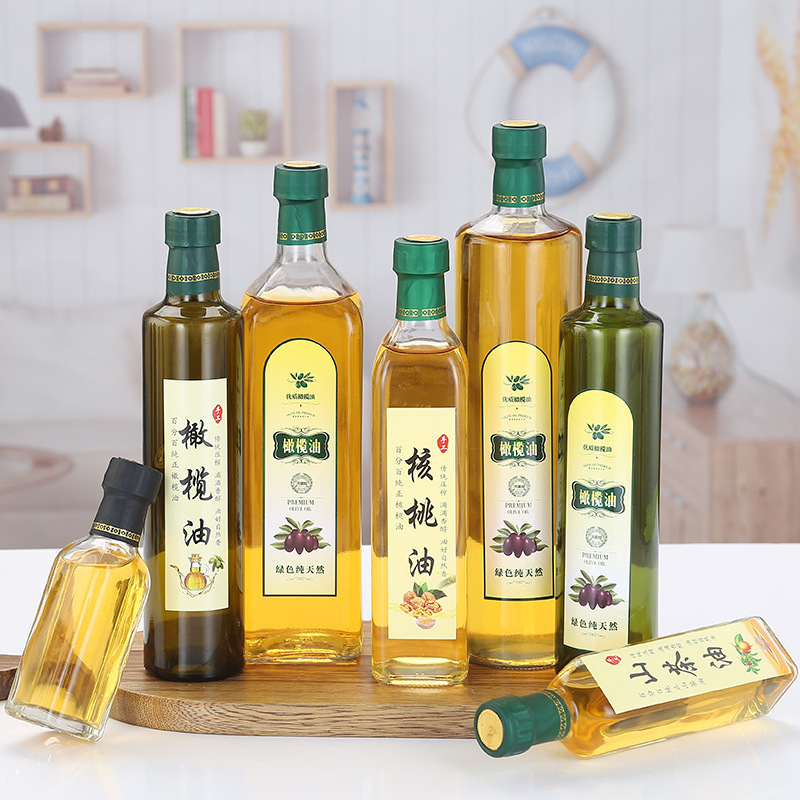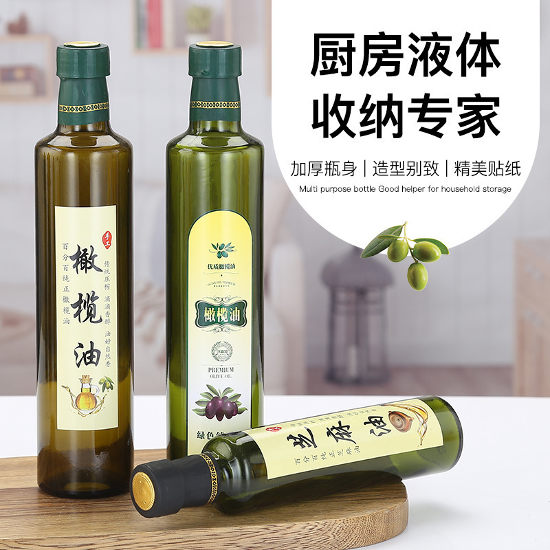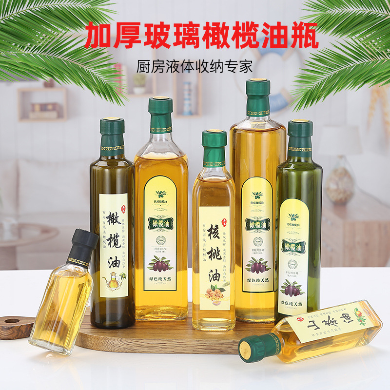 批发透明玻璃麻油酱油醋瓶橄榄油瓶圆形山茶油瓶方形墨绿色