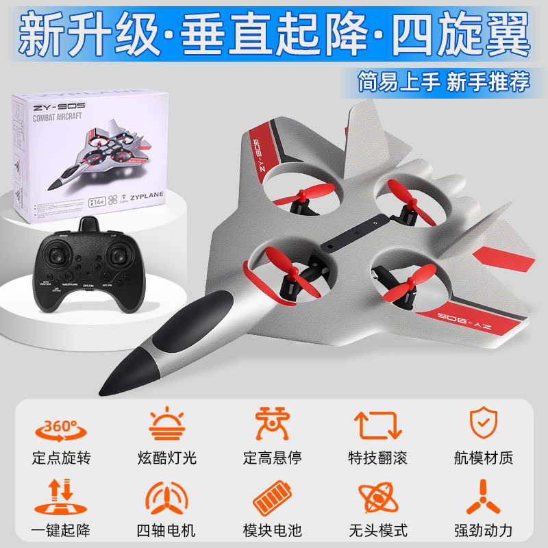 志扬玩具遥控飞机四旋翼儿童泡沫飞机耐摔玩具悬停定高四轴战斗机