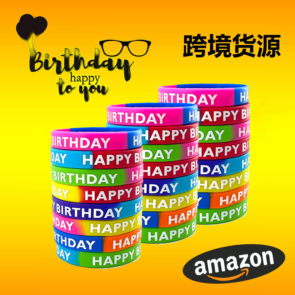 跨境欧美儿童happybirthday硅胶手环手腕带童趣生日快乐派对腕带