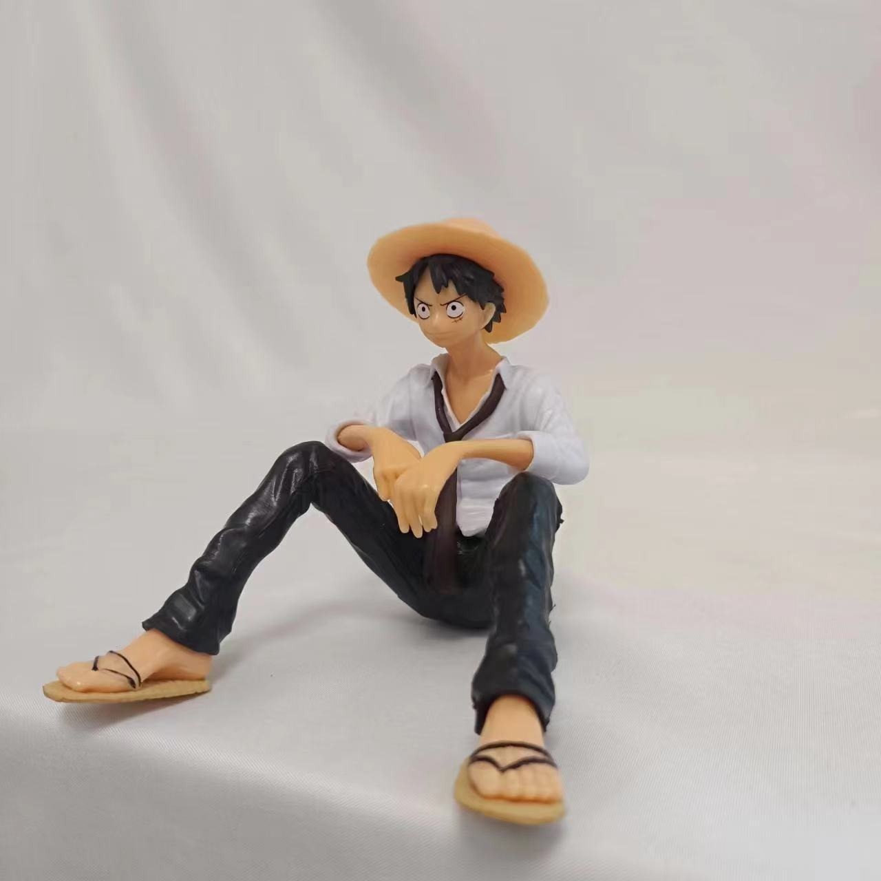 海贼王实心PVC 坐姿白衣路飞手办 车载公仔模型 家居饰品摆件批发