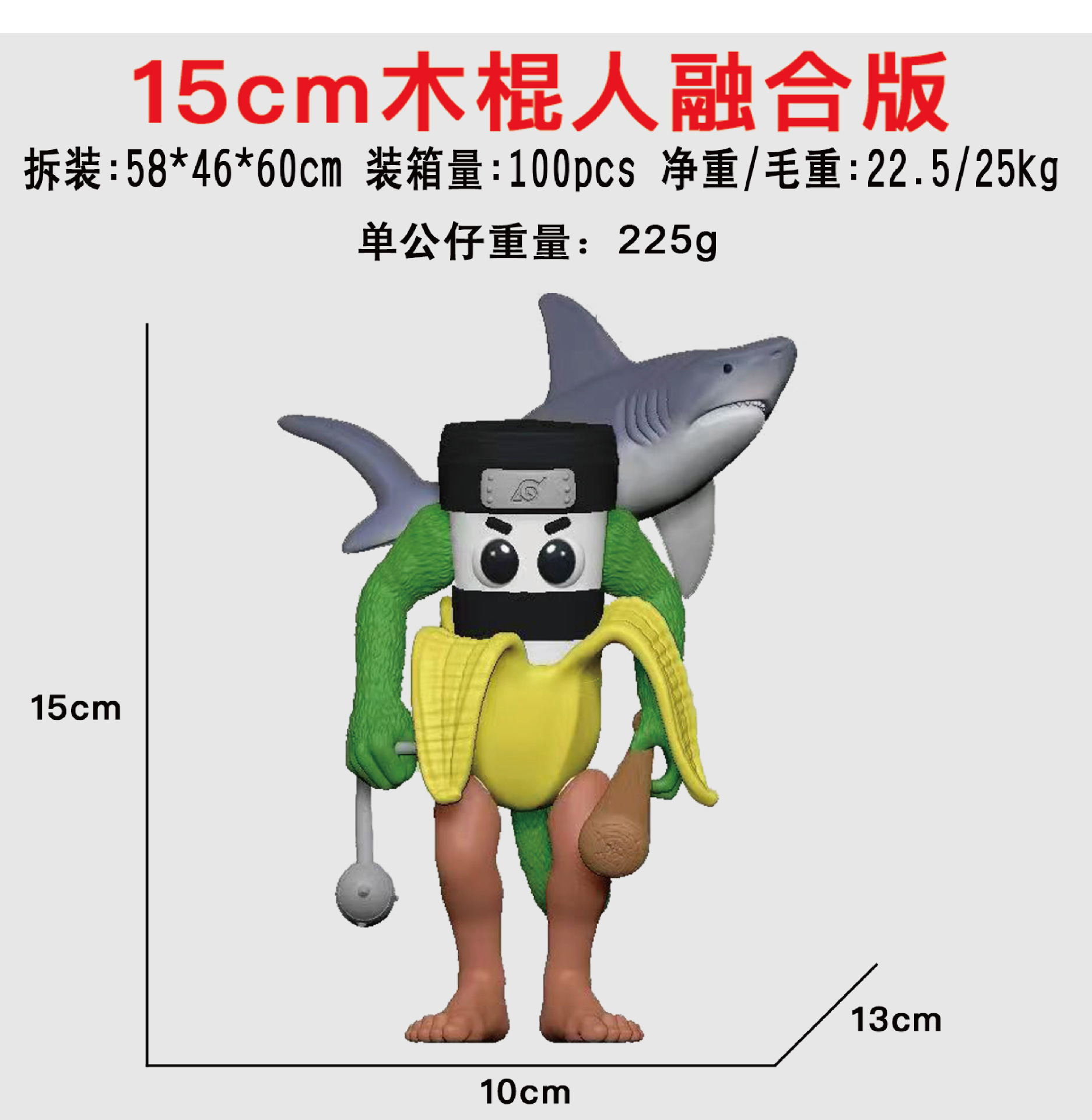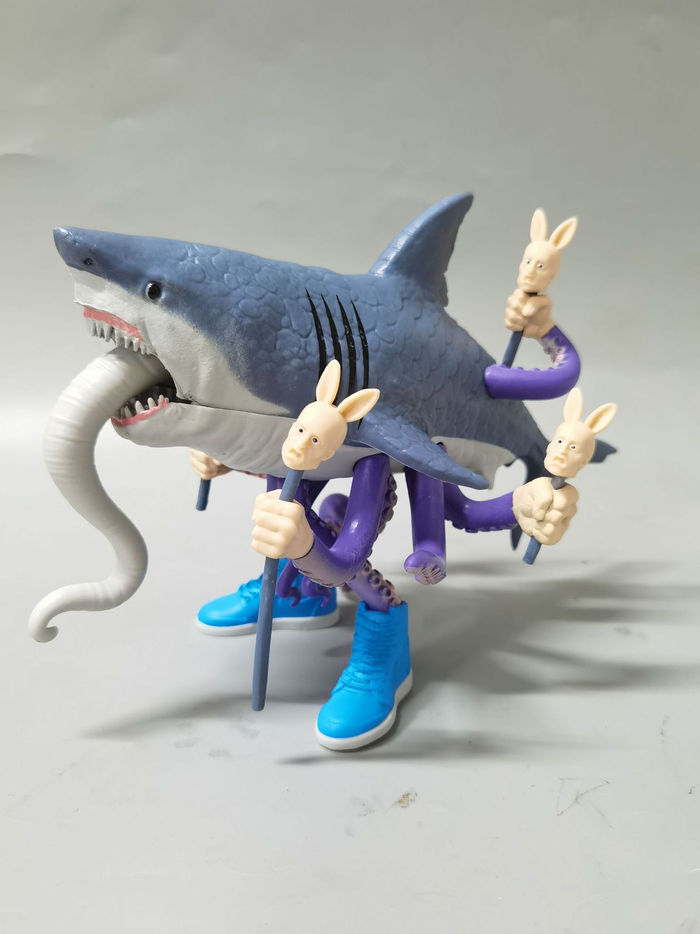 跨境山海经手办穿鞋的鲨鱼木棍人公仔模型摆件袋装