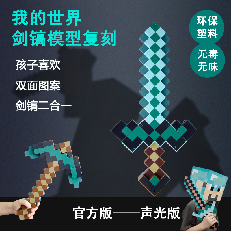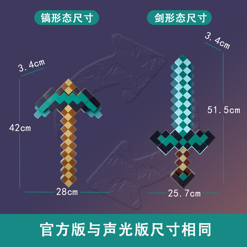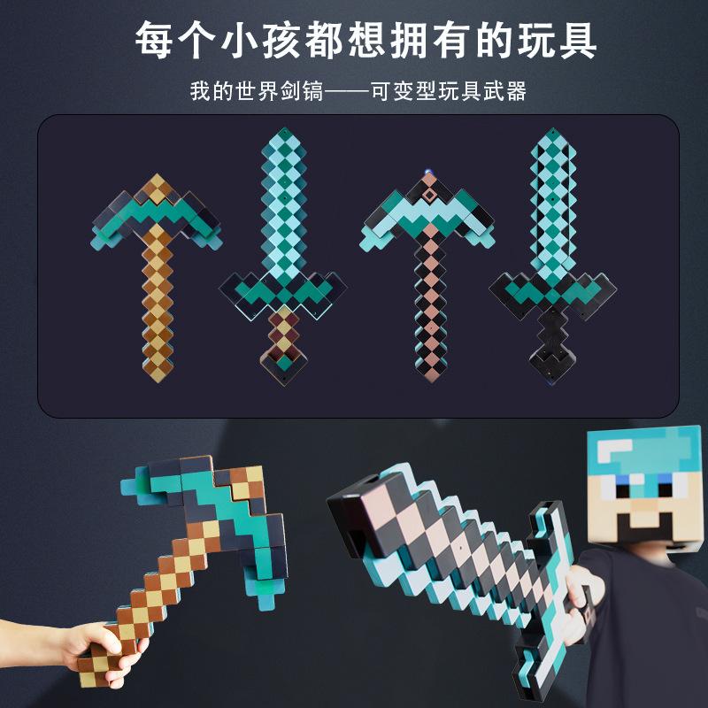 我的世界周边新款可变形剑镐二合一变装武器玩具模型
