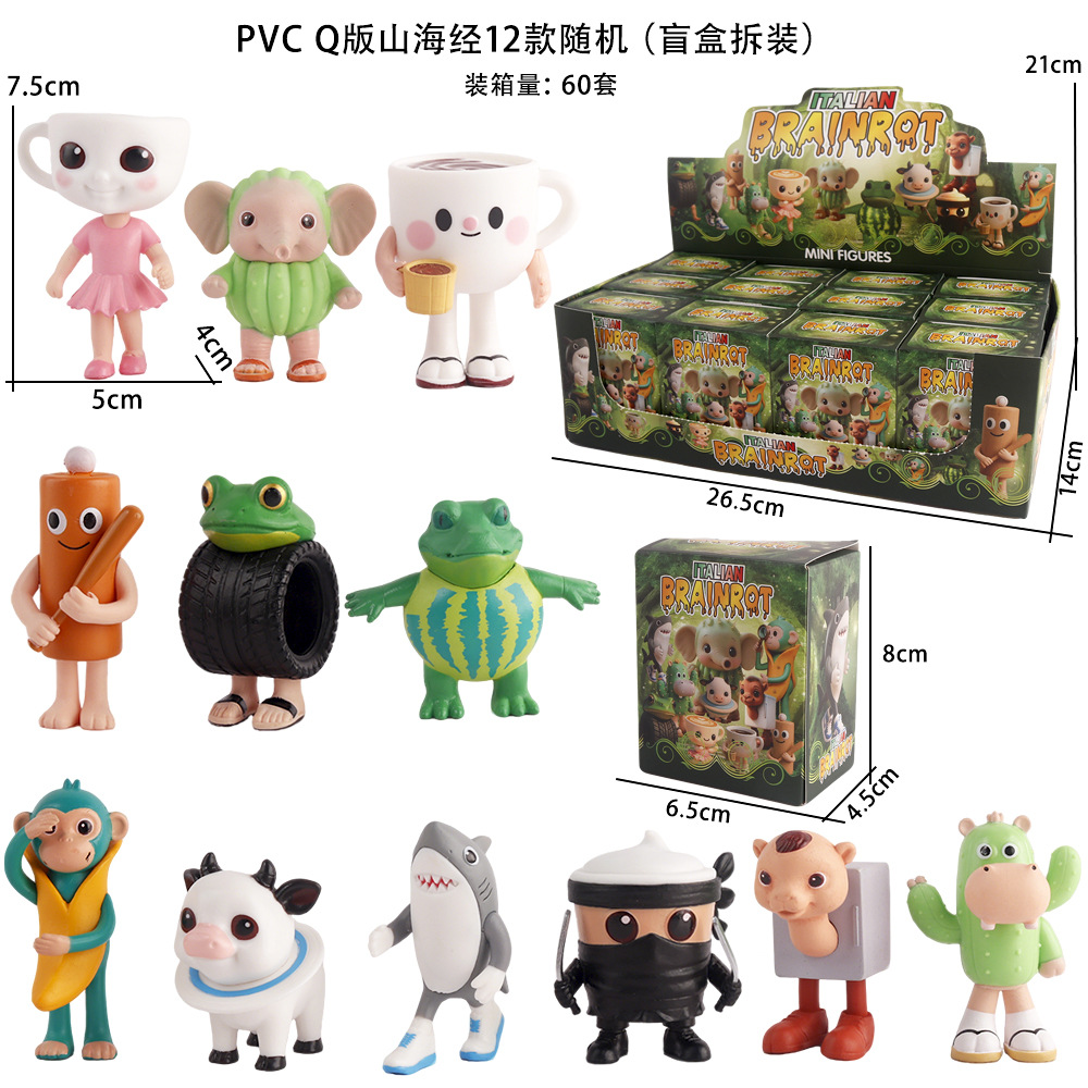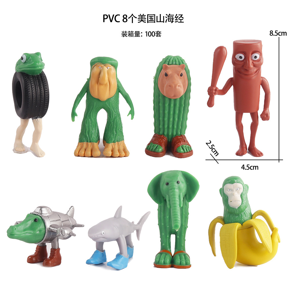 跨境外国山海经手办穿鞋的鲨鱼玩偶木棍人公仔模型钥匙扣挂件