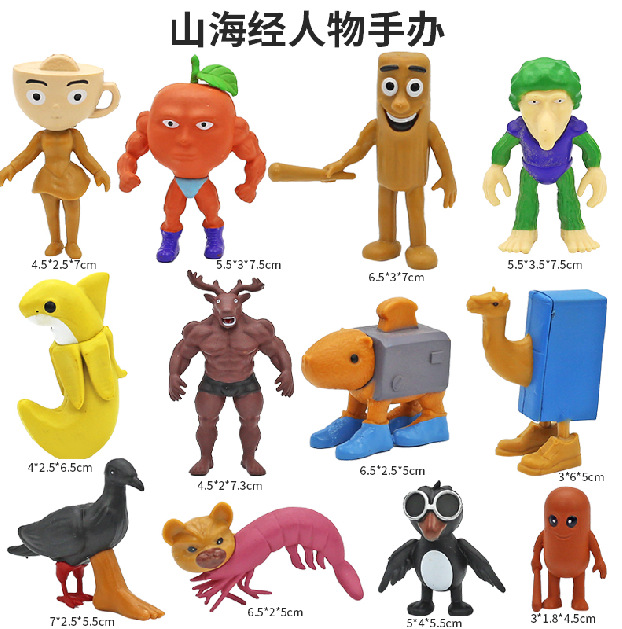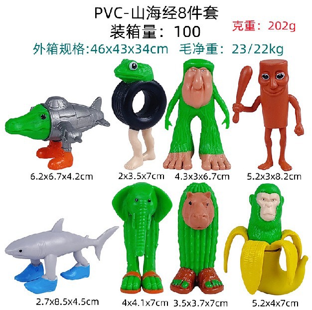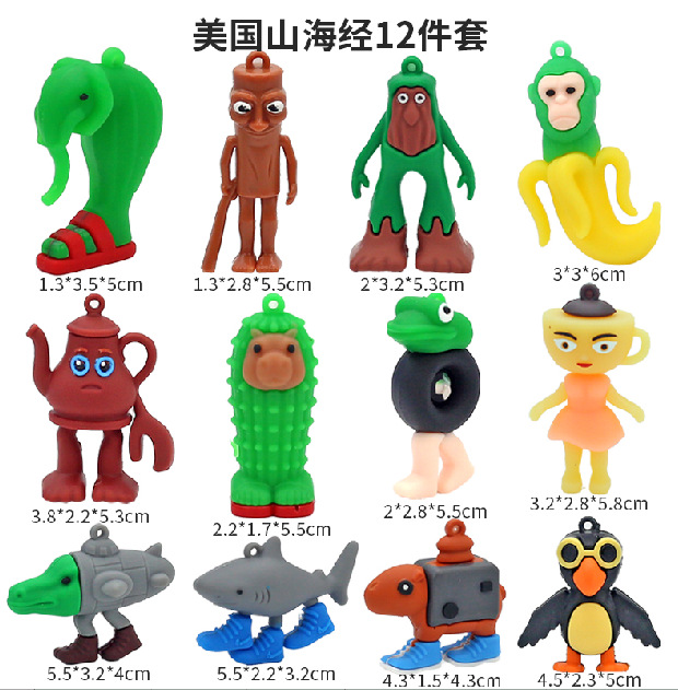 外国山海经钥匙扣批发搞怪抽象通通木棍人鲨鱼卡通立体挂件小礼品