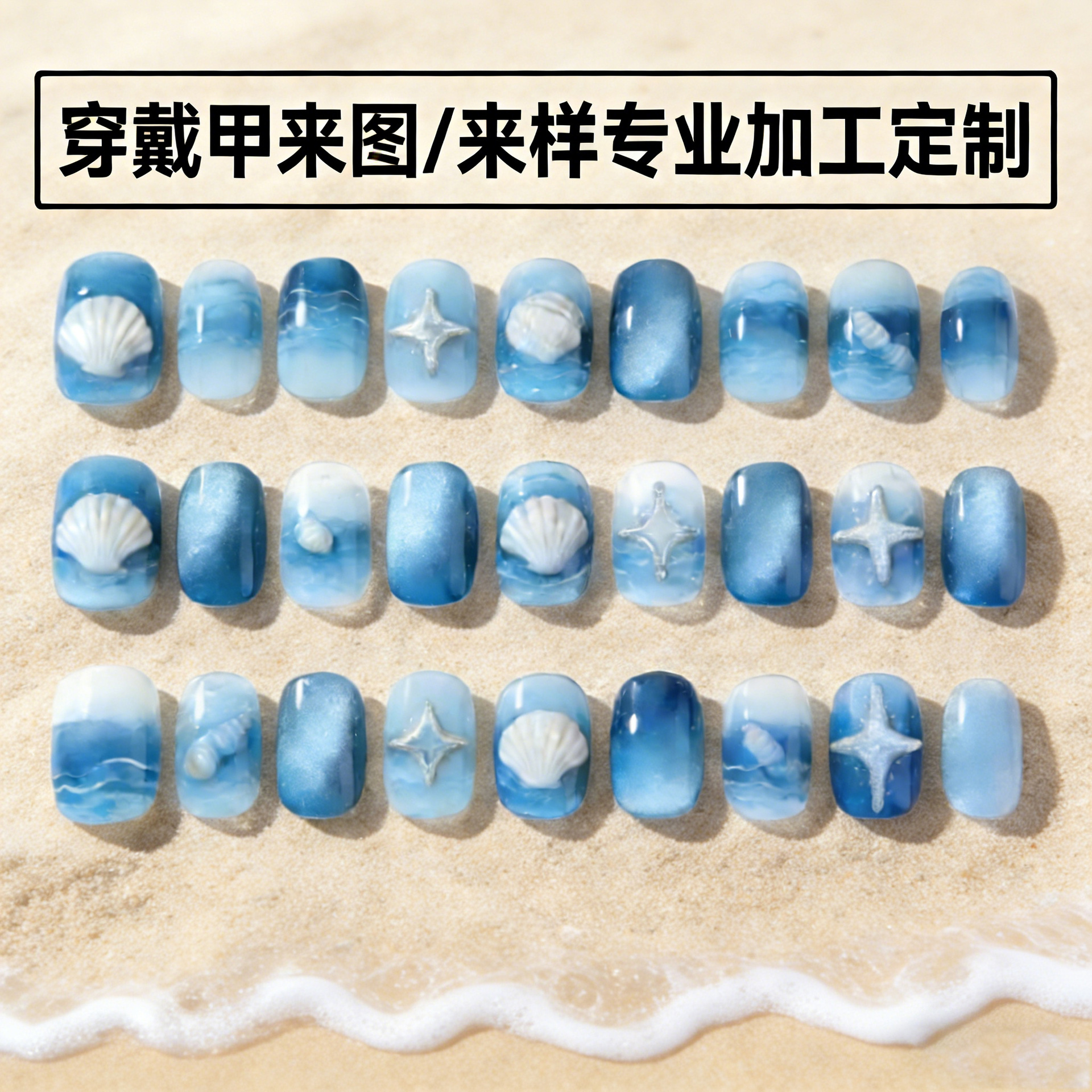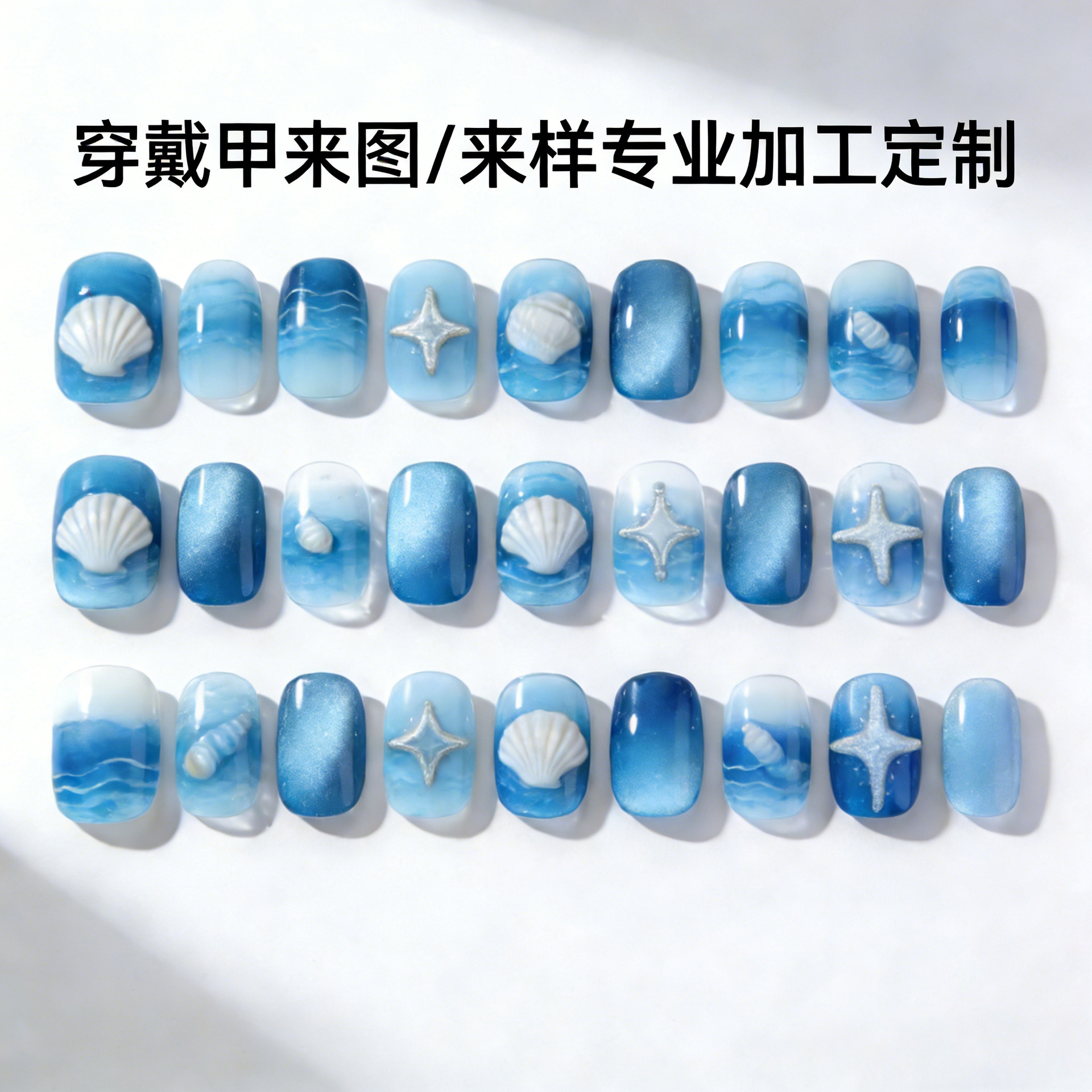 欧美24片美甲加工定制来图来样立体浮雕假指甲贴片穿戴甲定制批发
