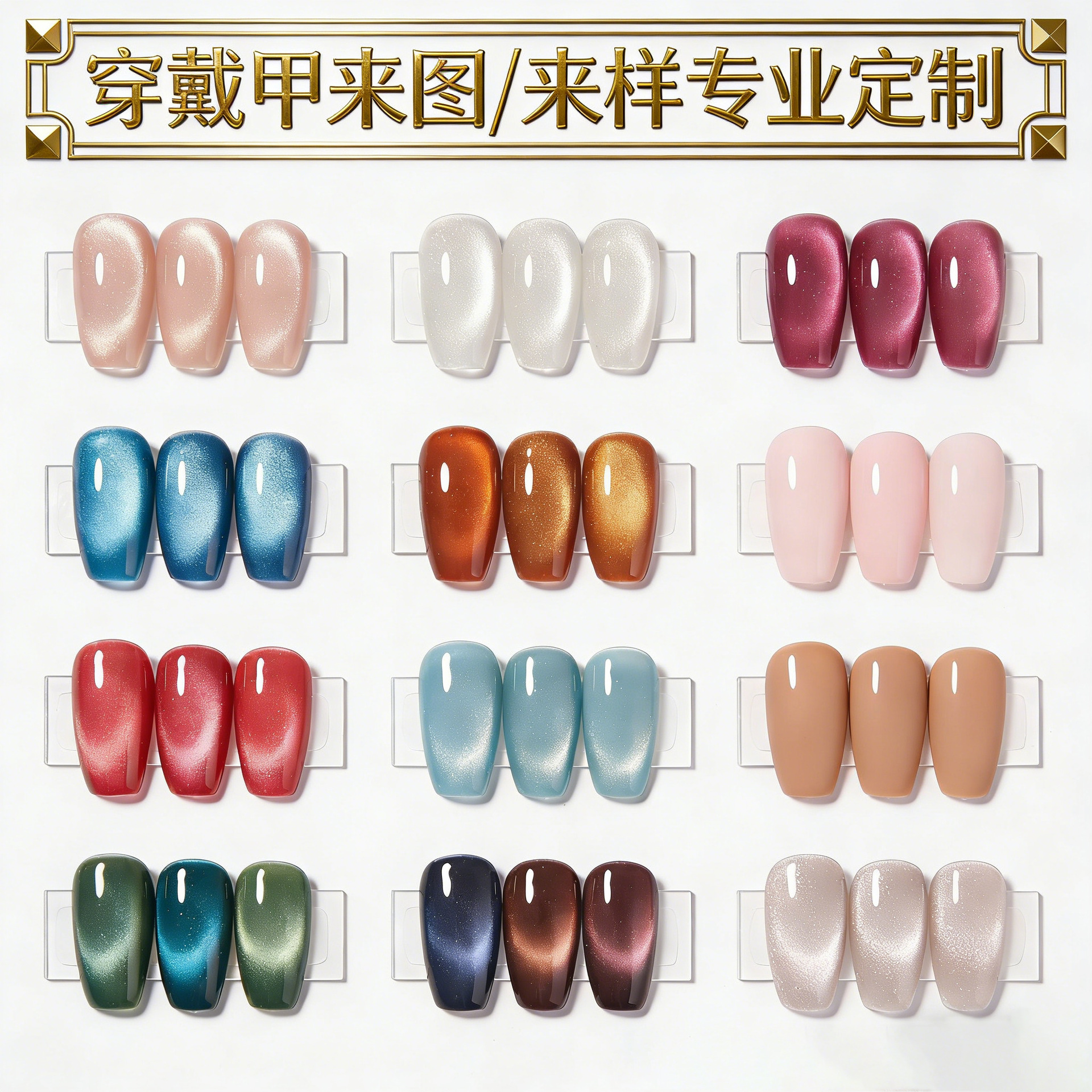 欧美24片猫眼美甲加工定制来图来样换包装贴标服务穿戴甲定制批发