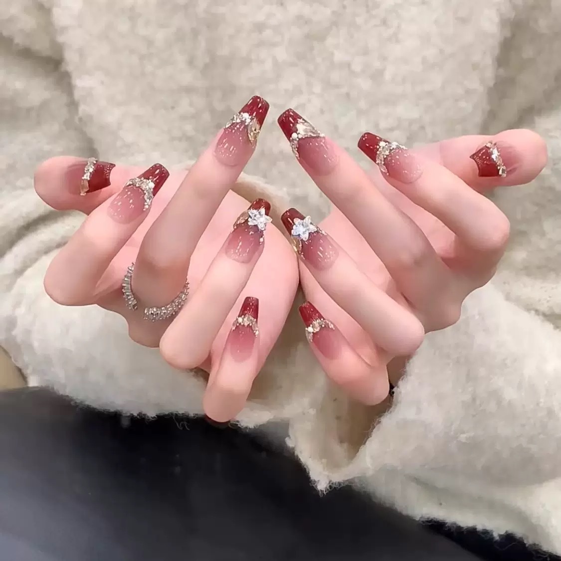 少女心极光闪粉法式蝴蝶结美甲贴片手工假指甲贴穿戴甲片成品
