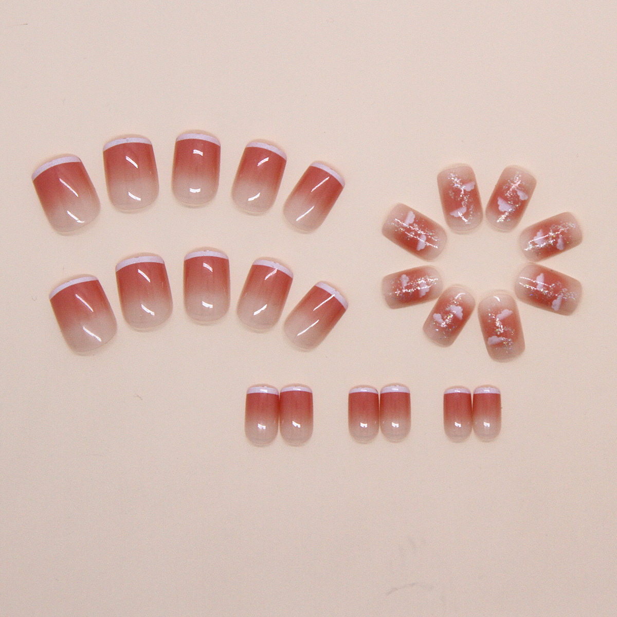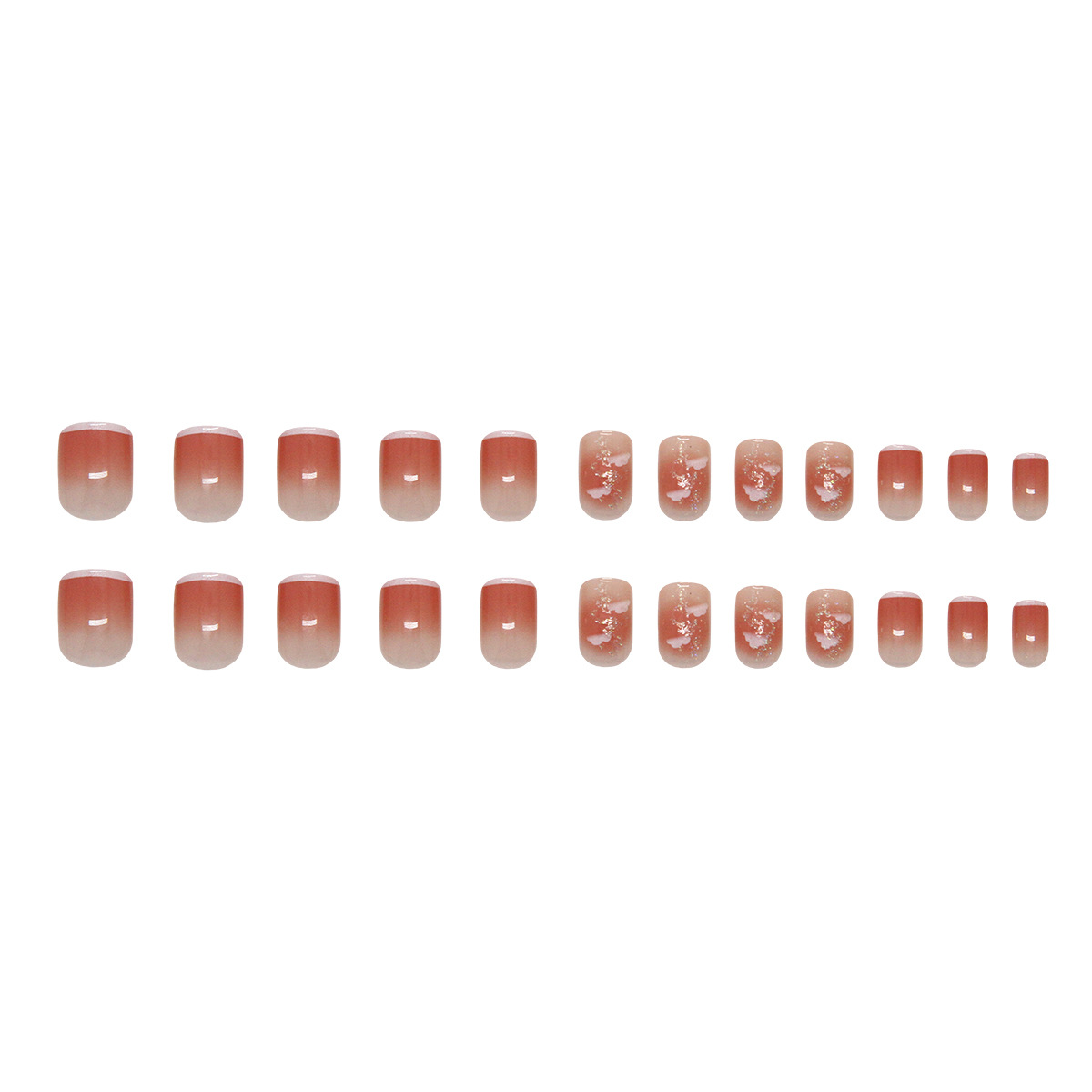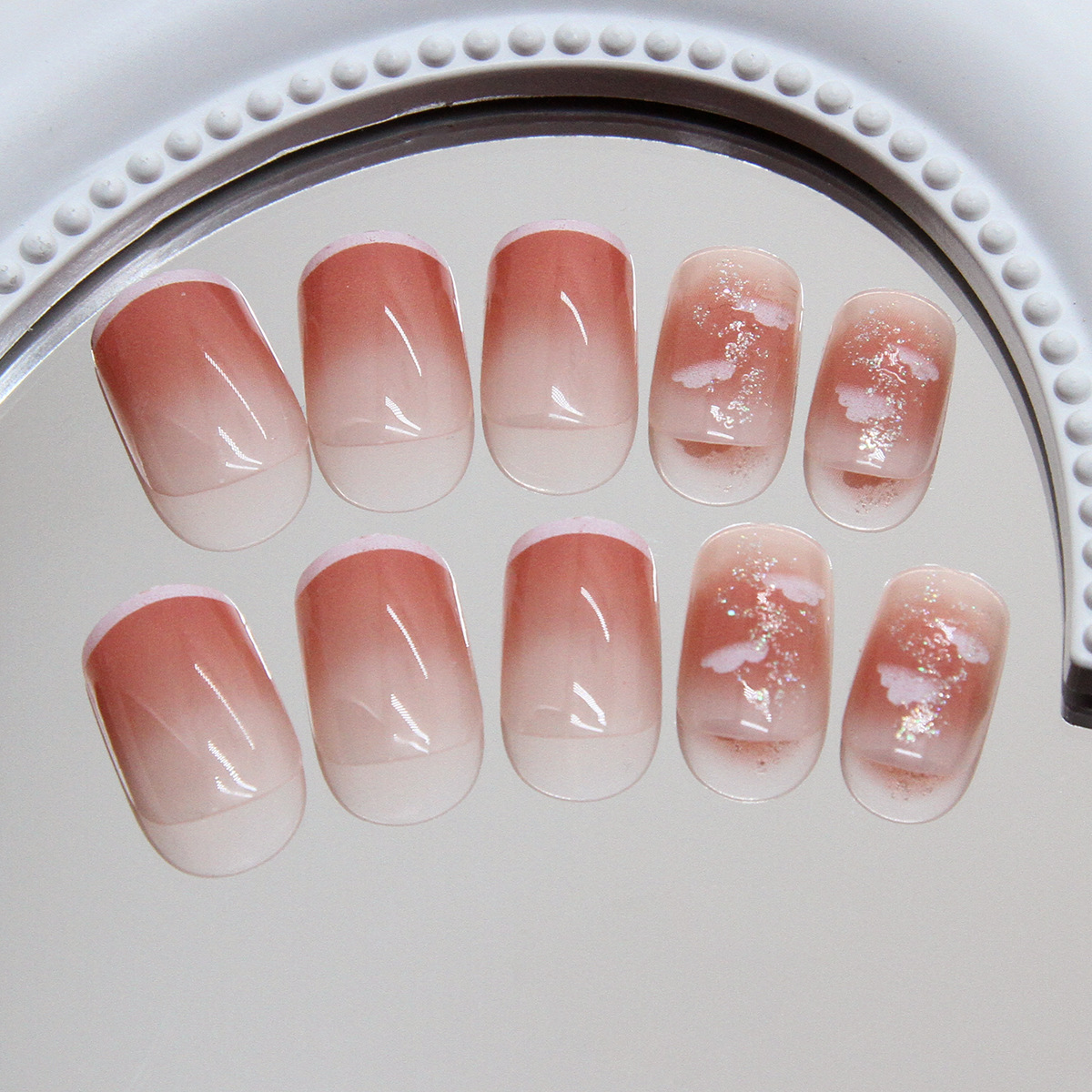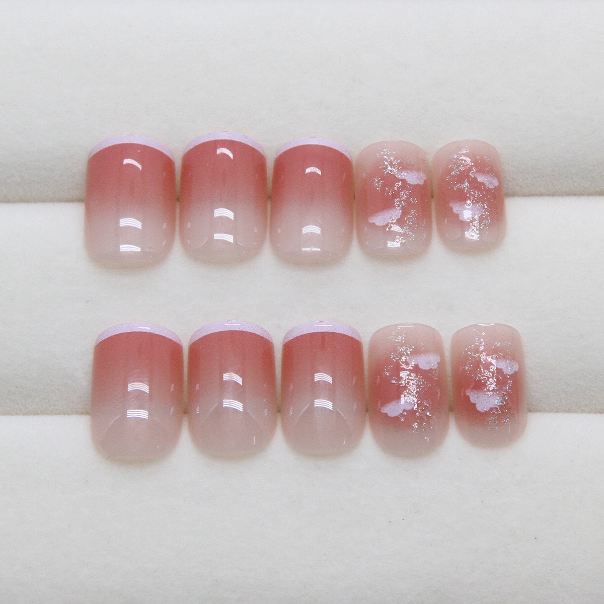 指尖白边法式透粉腮红云朵细闪少女显白百搭可拆卸美甲片24片