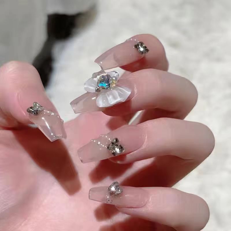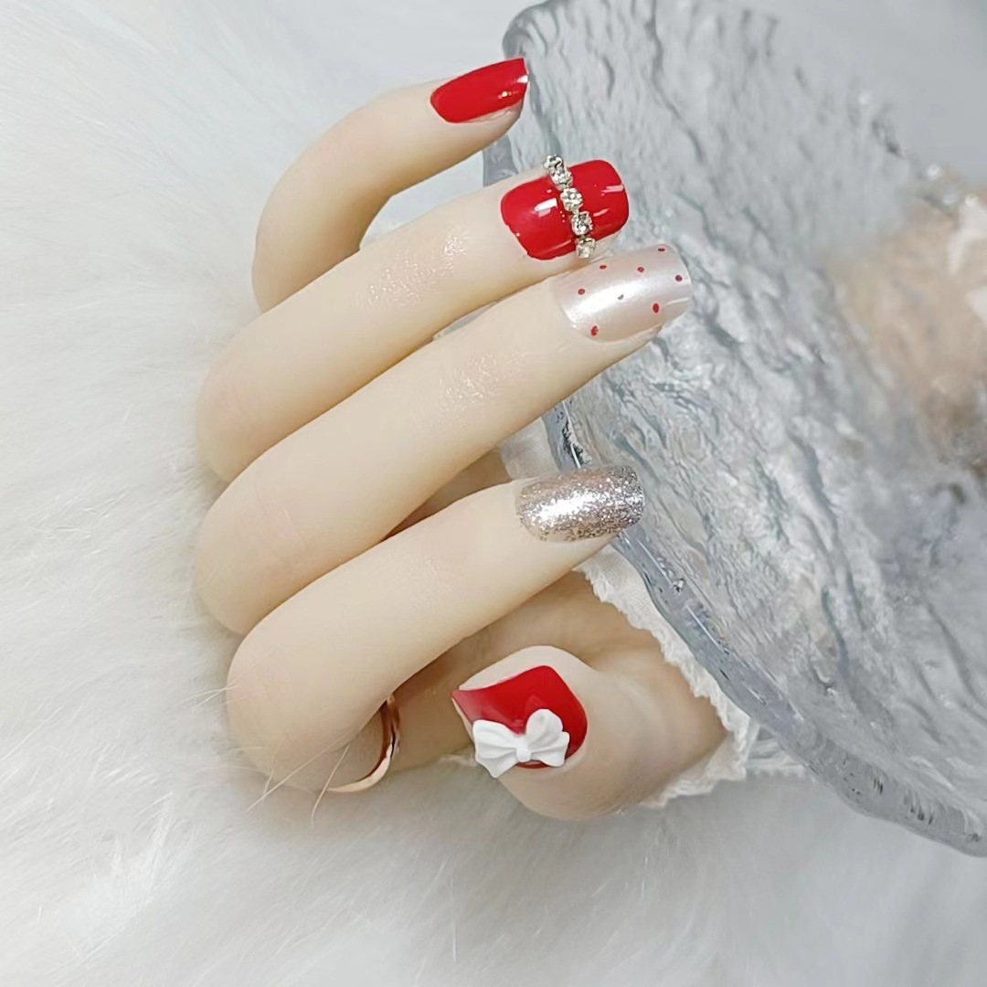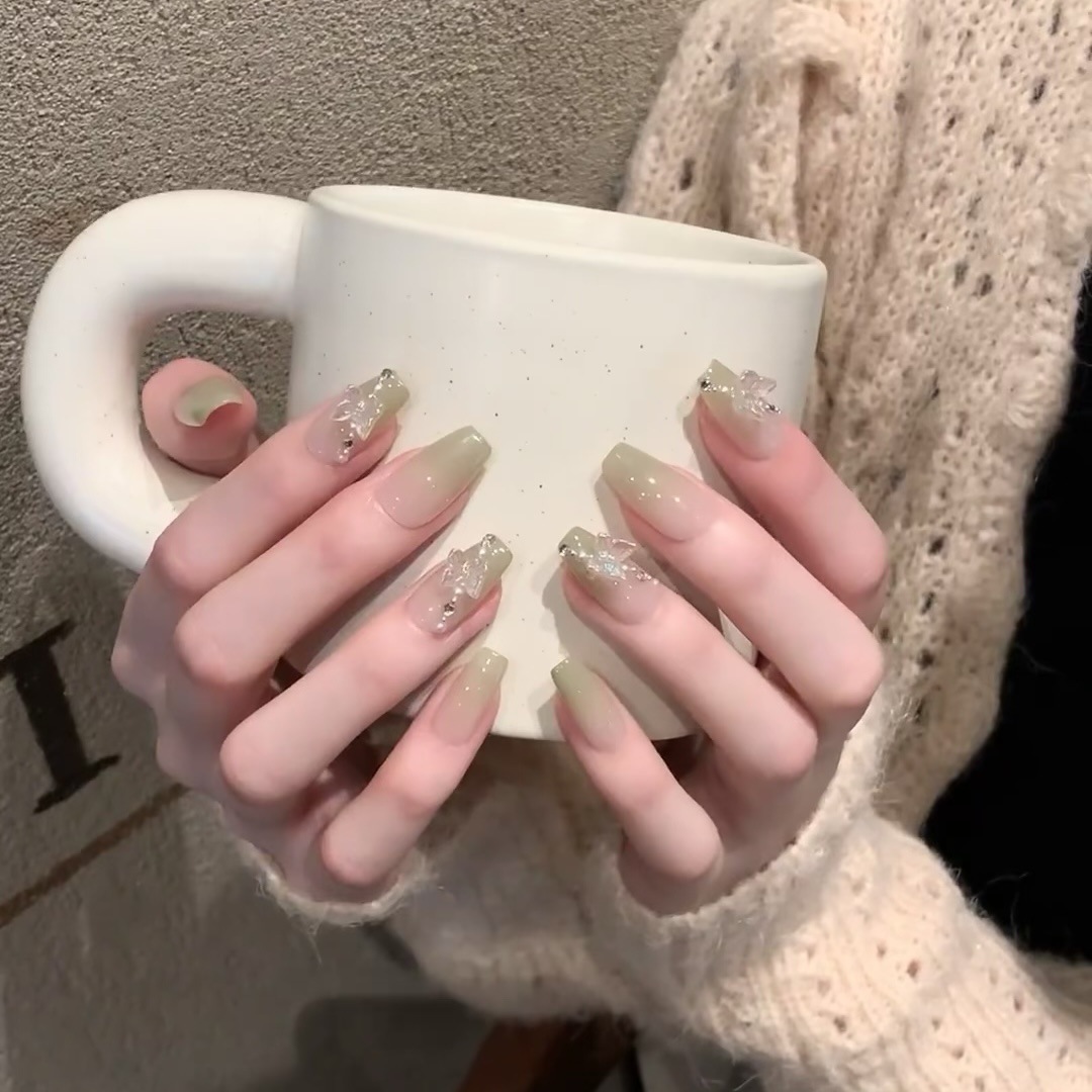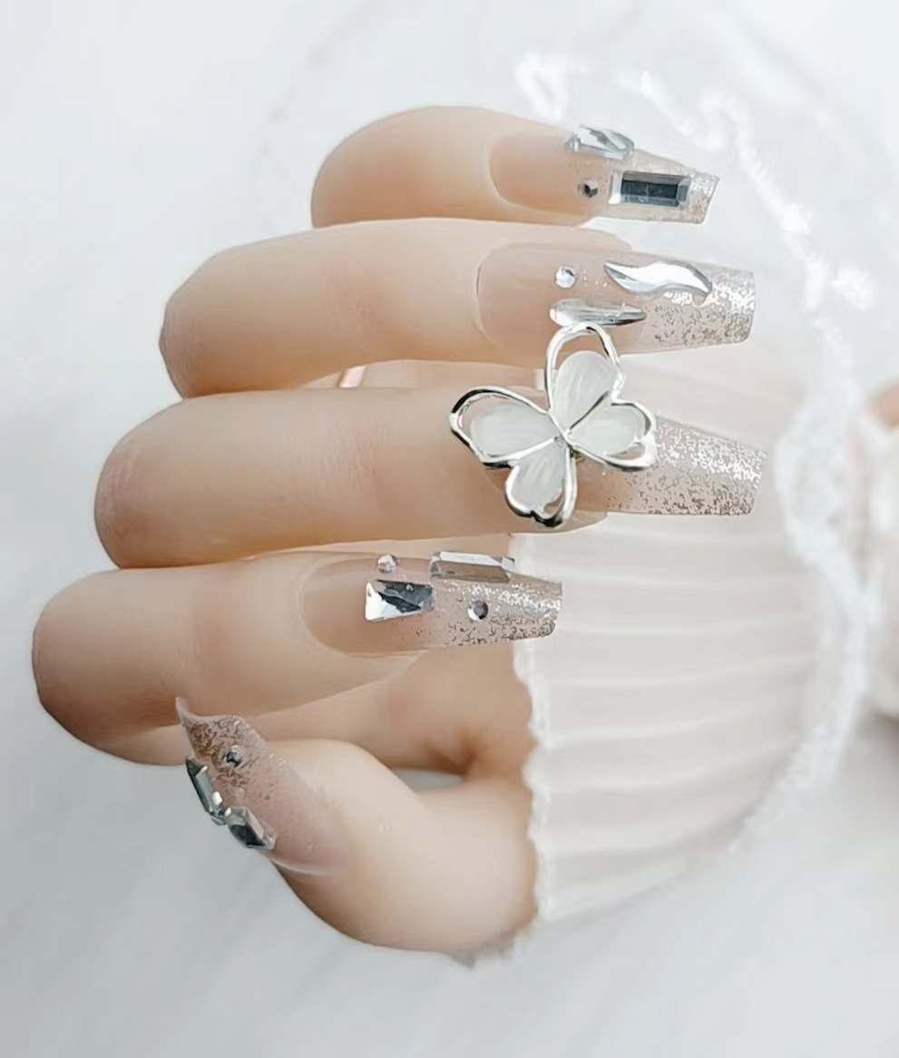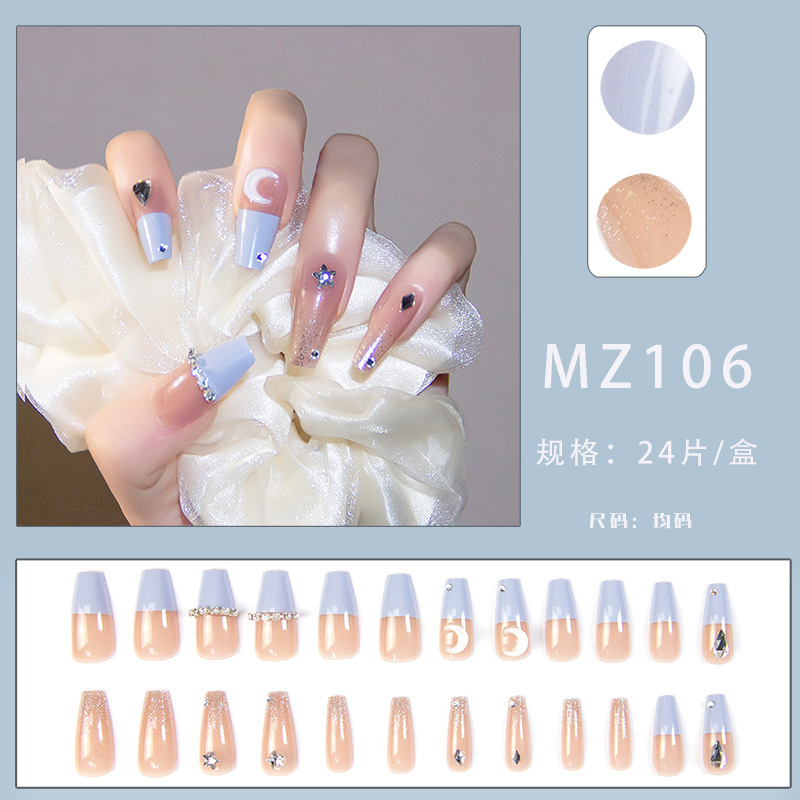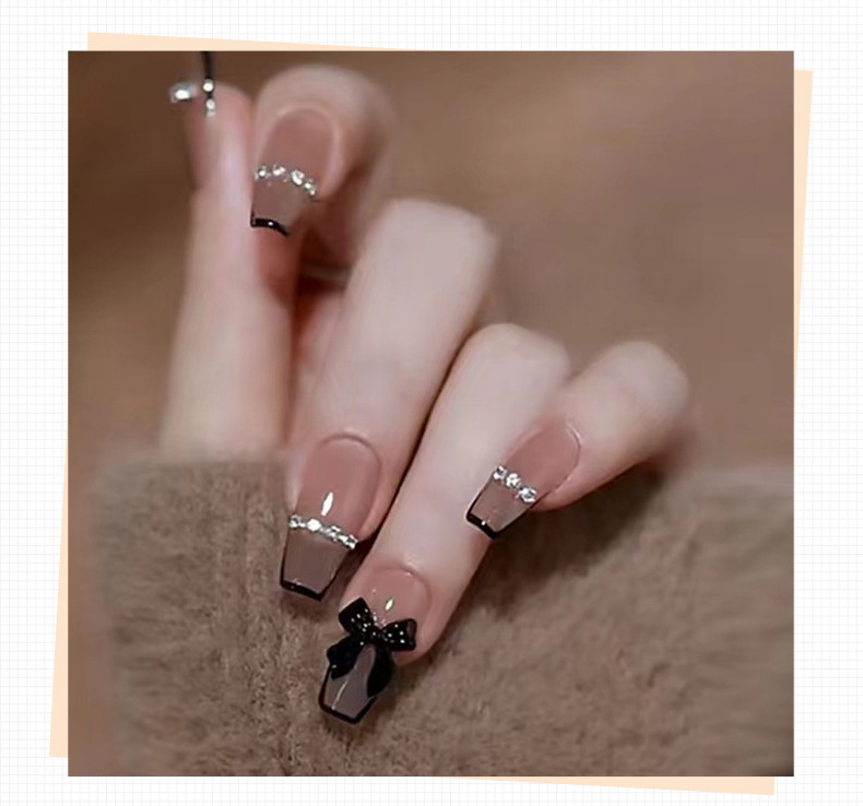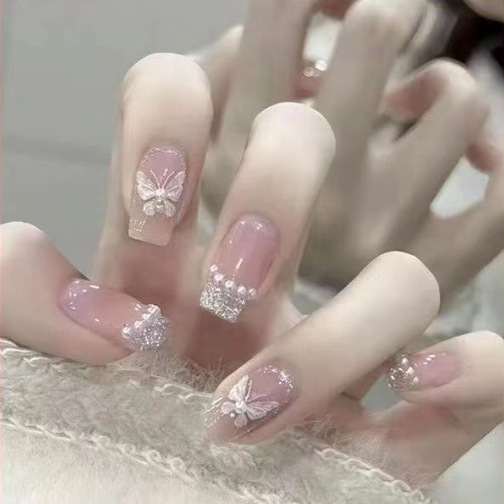 手工穿戴甲批发网红爆款碎钻旋转蝴蝶闪粉美甲甲片成品穿戴指甲贴
