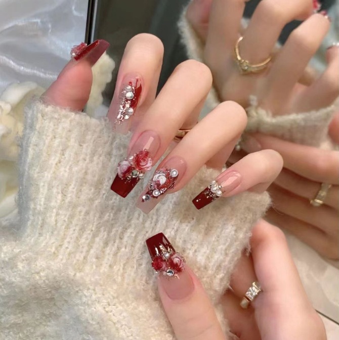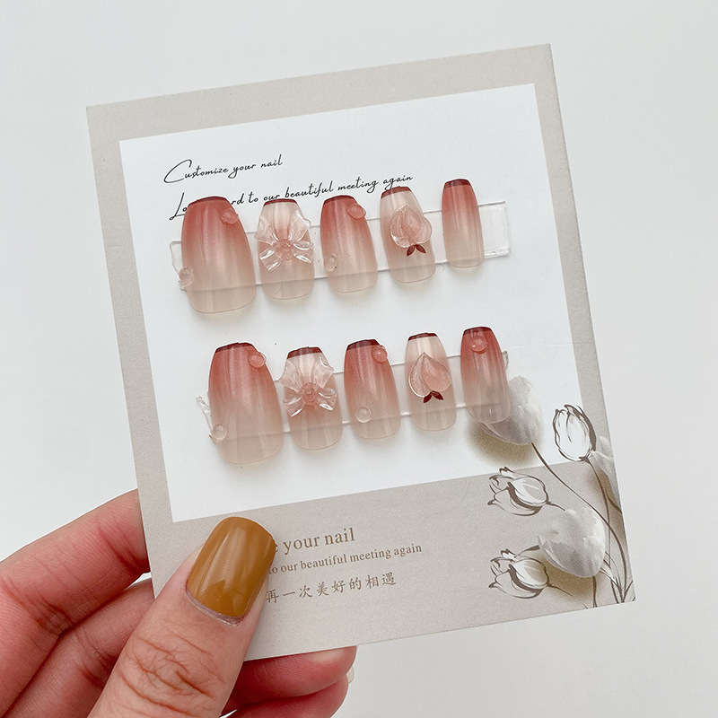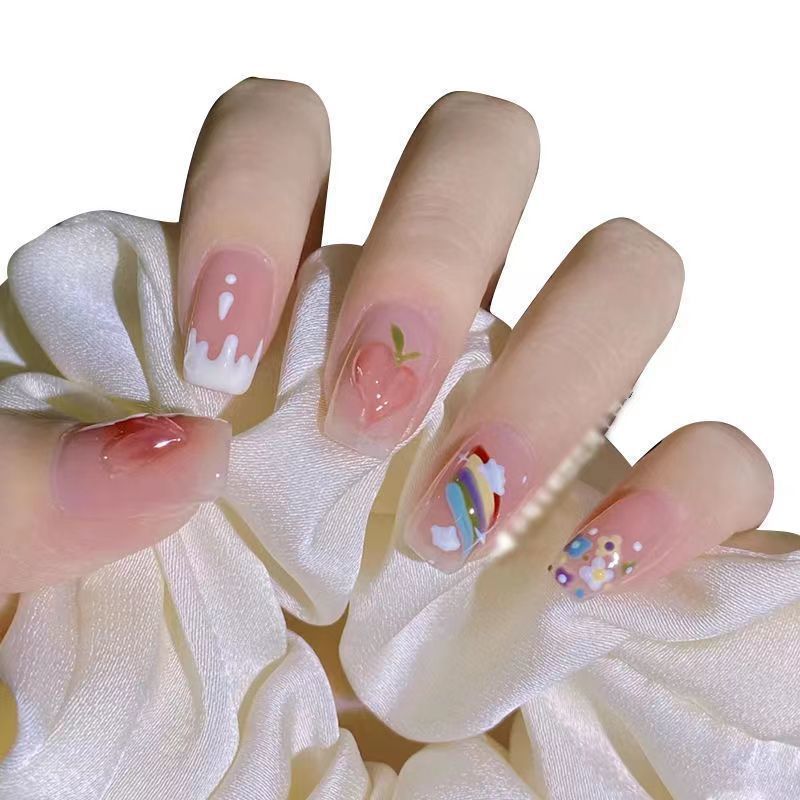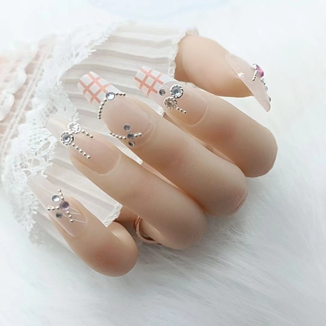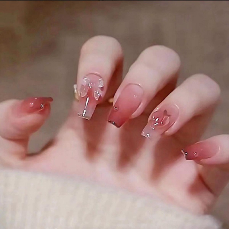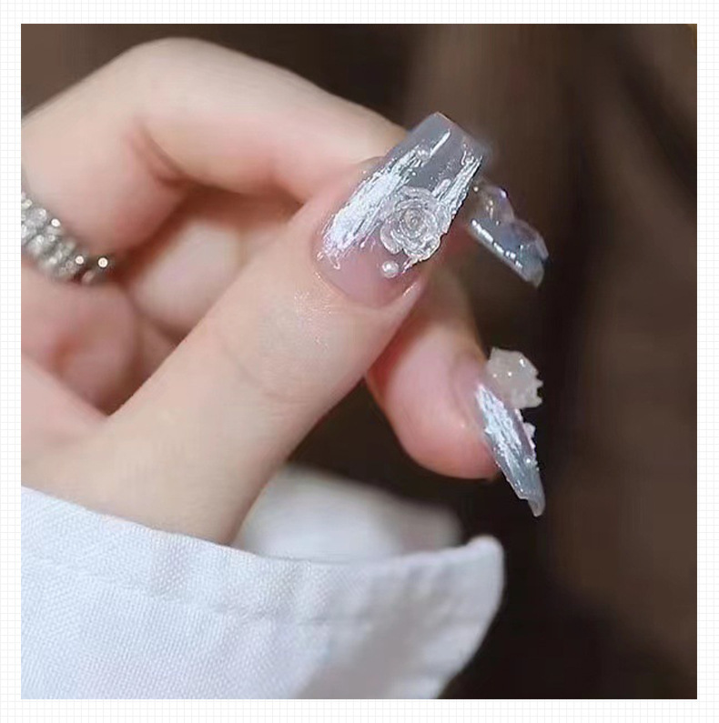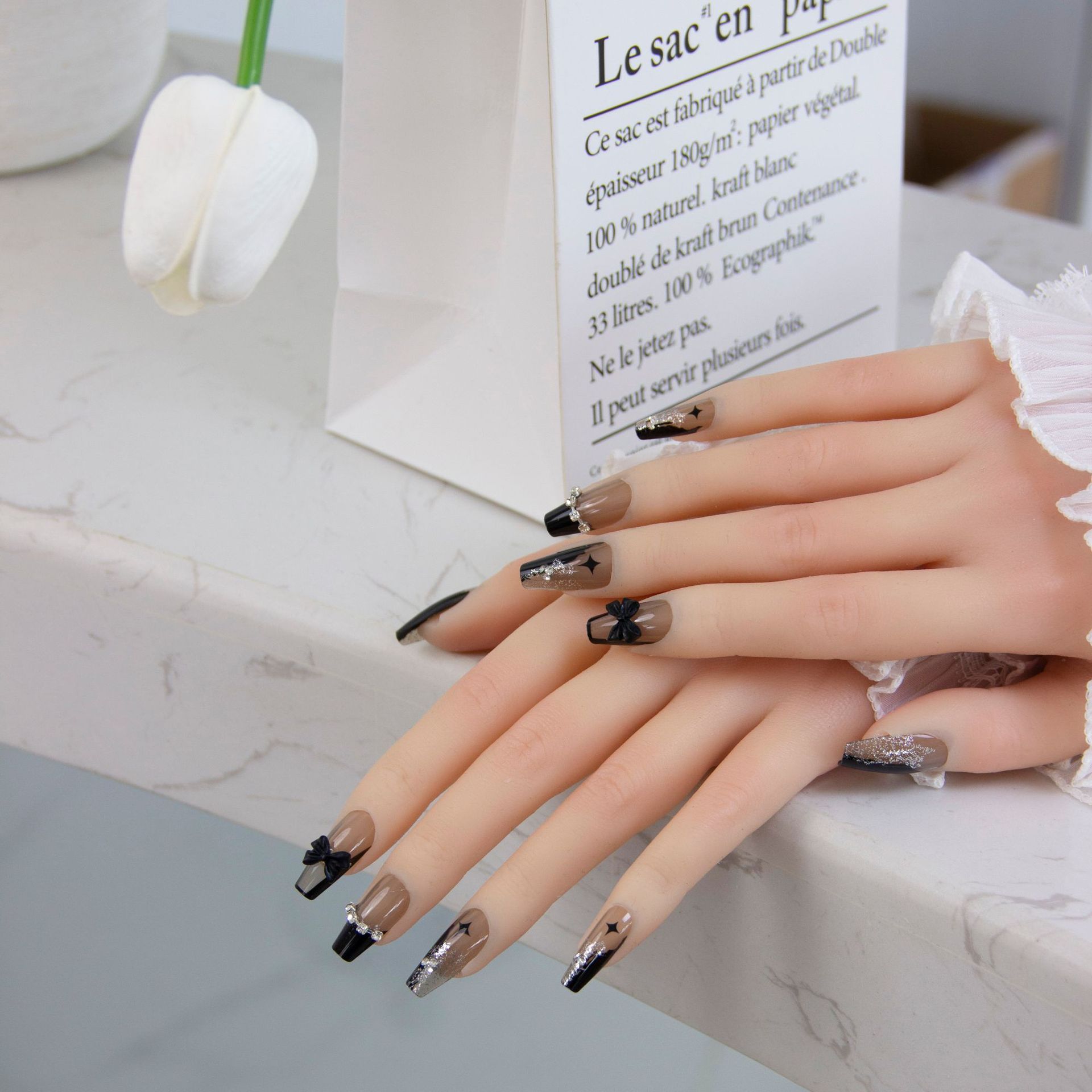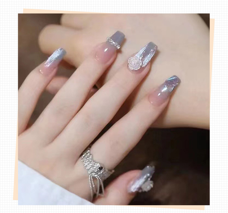 手工穿戴甲批发网红爆款碎钻旋转蝴蝶闪粉美甲甲片成品穿戴指甲贴