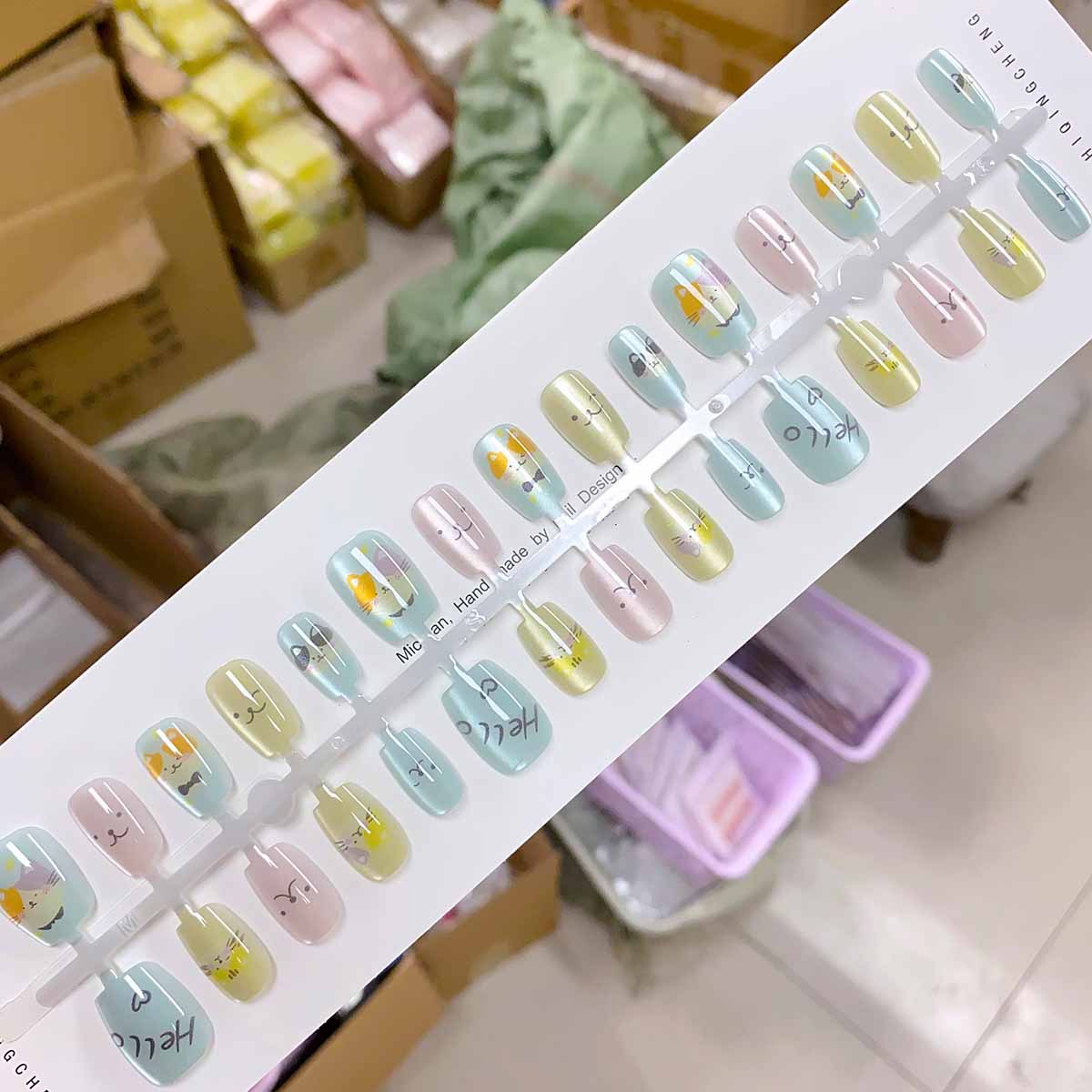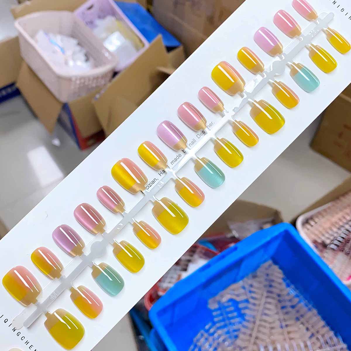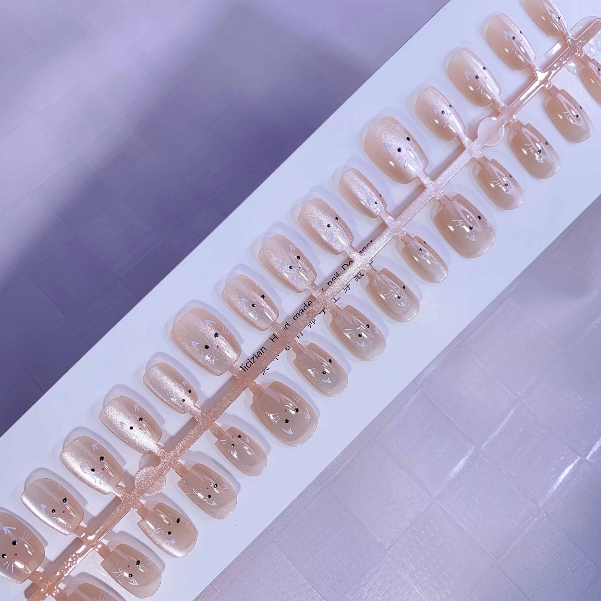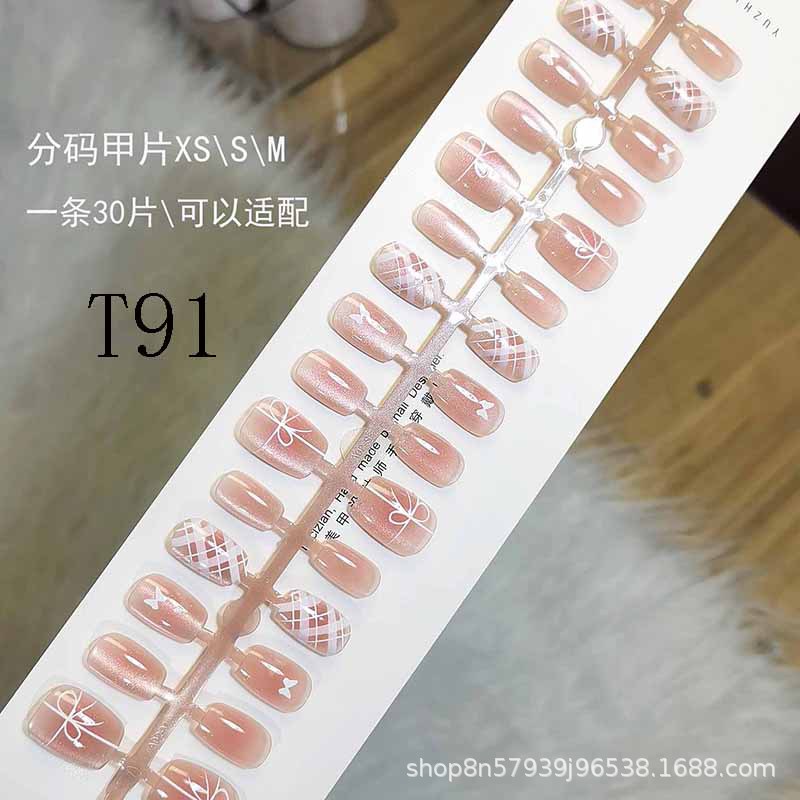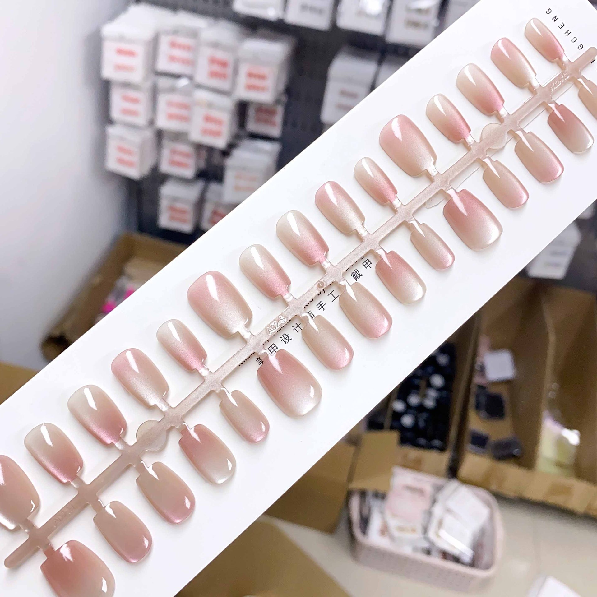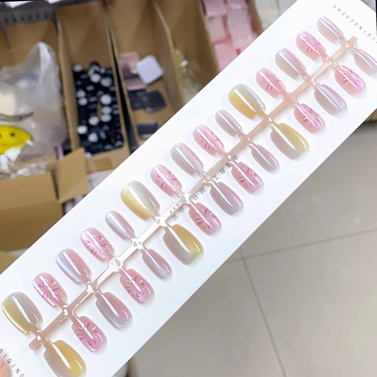 预制甲片抖音新款穿戴甲可批发猫眼条美甲猫眼假指甲合集30片