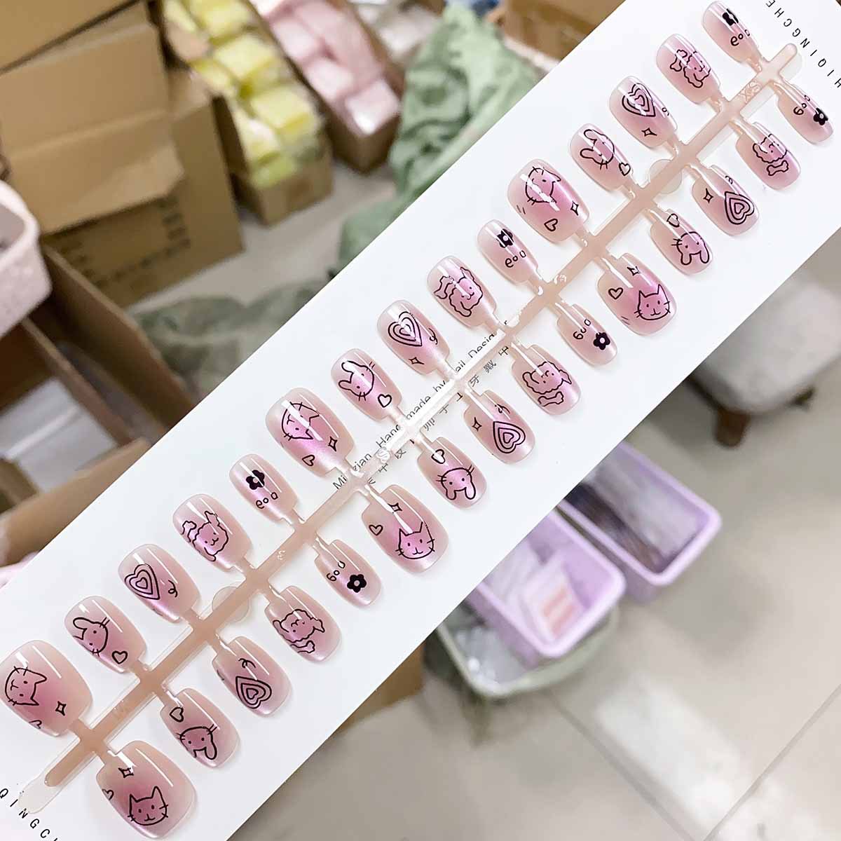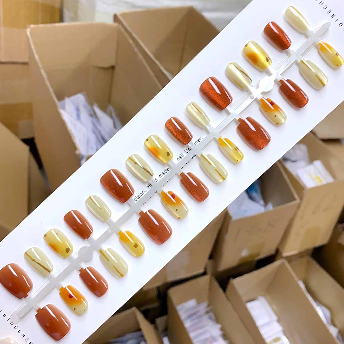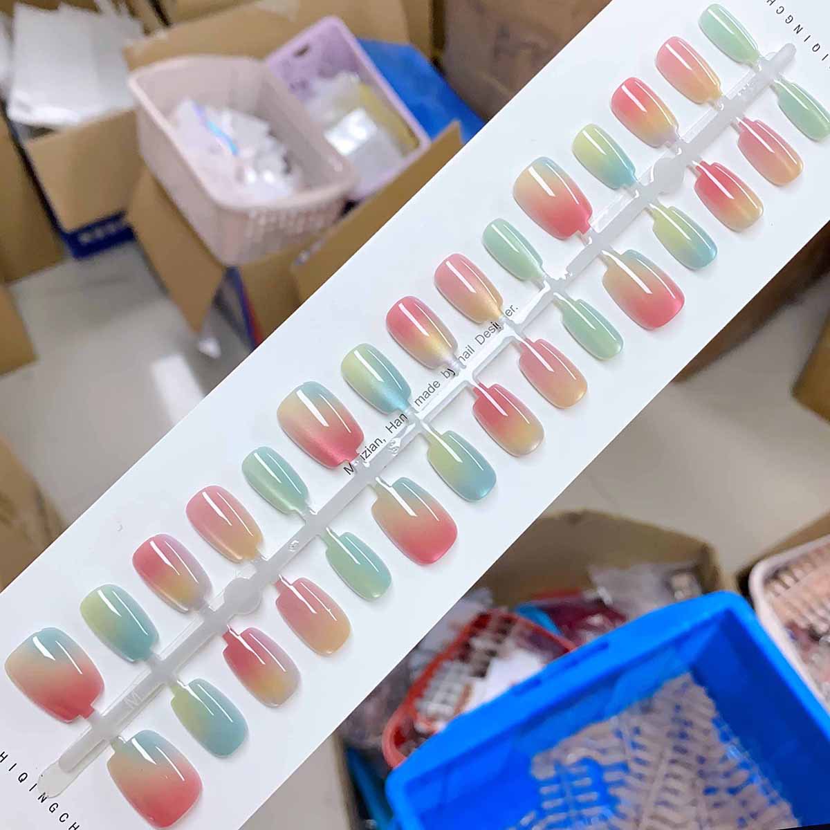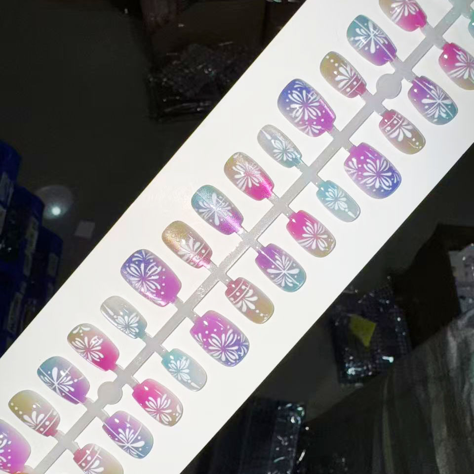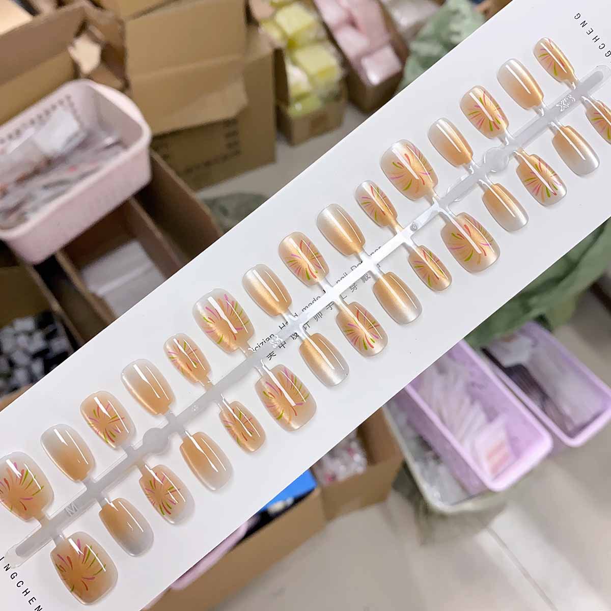 预制甲片抖音新款穿戴甲可批发猫眼条美甲猫眼假指甲合集30片