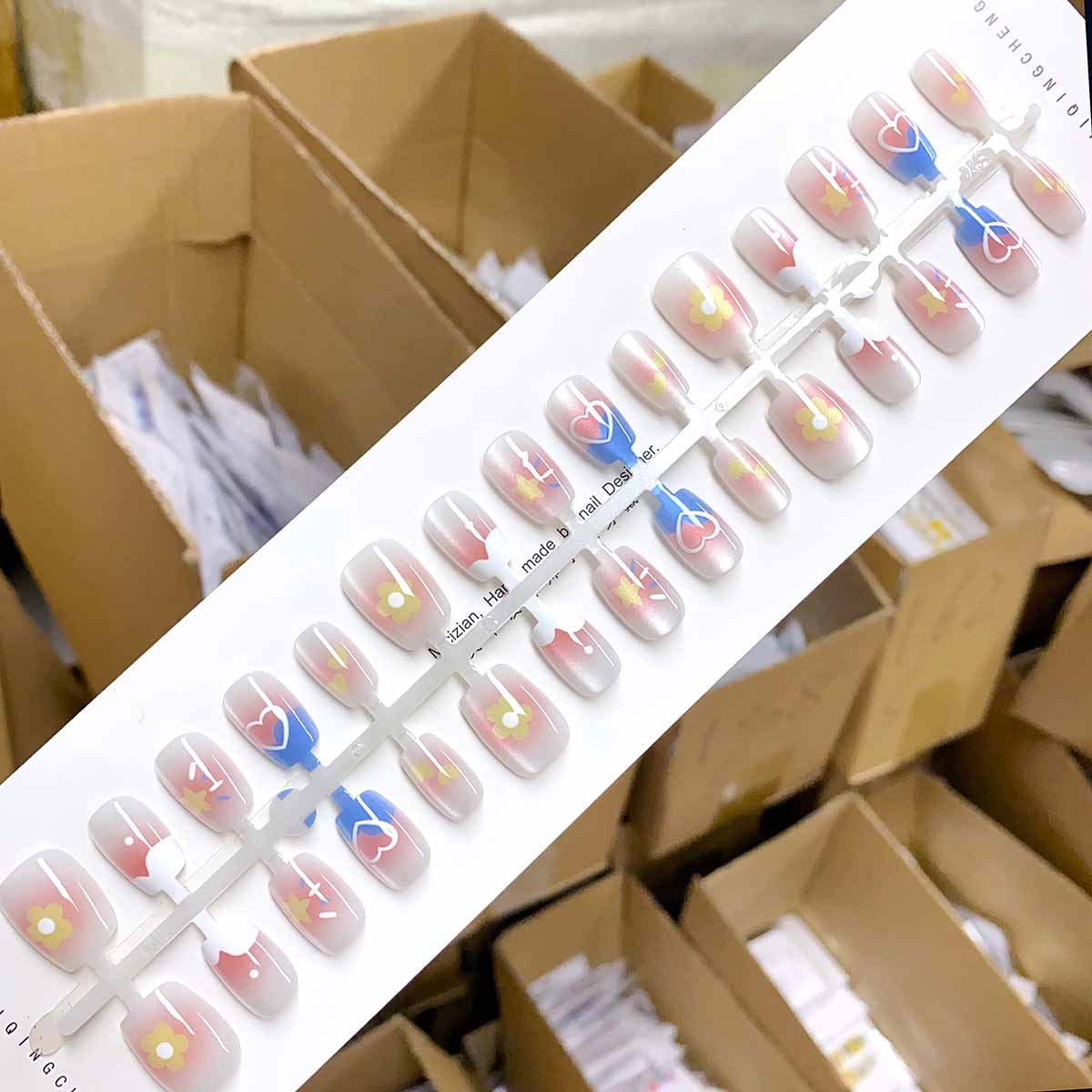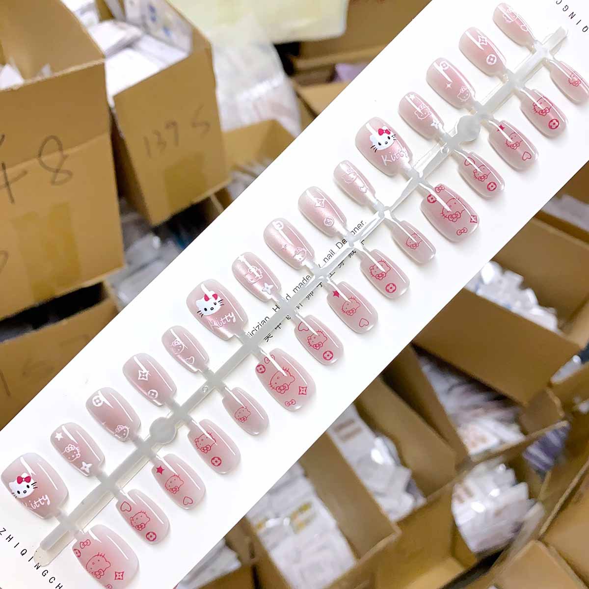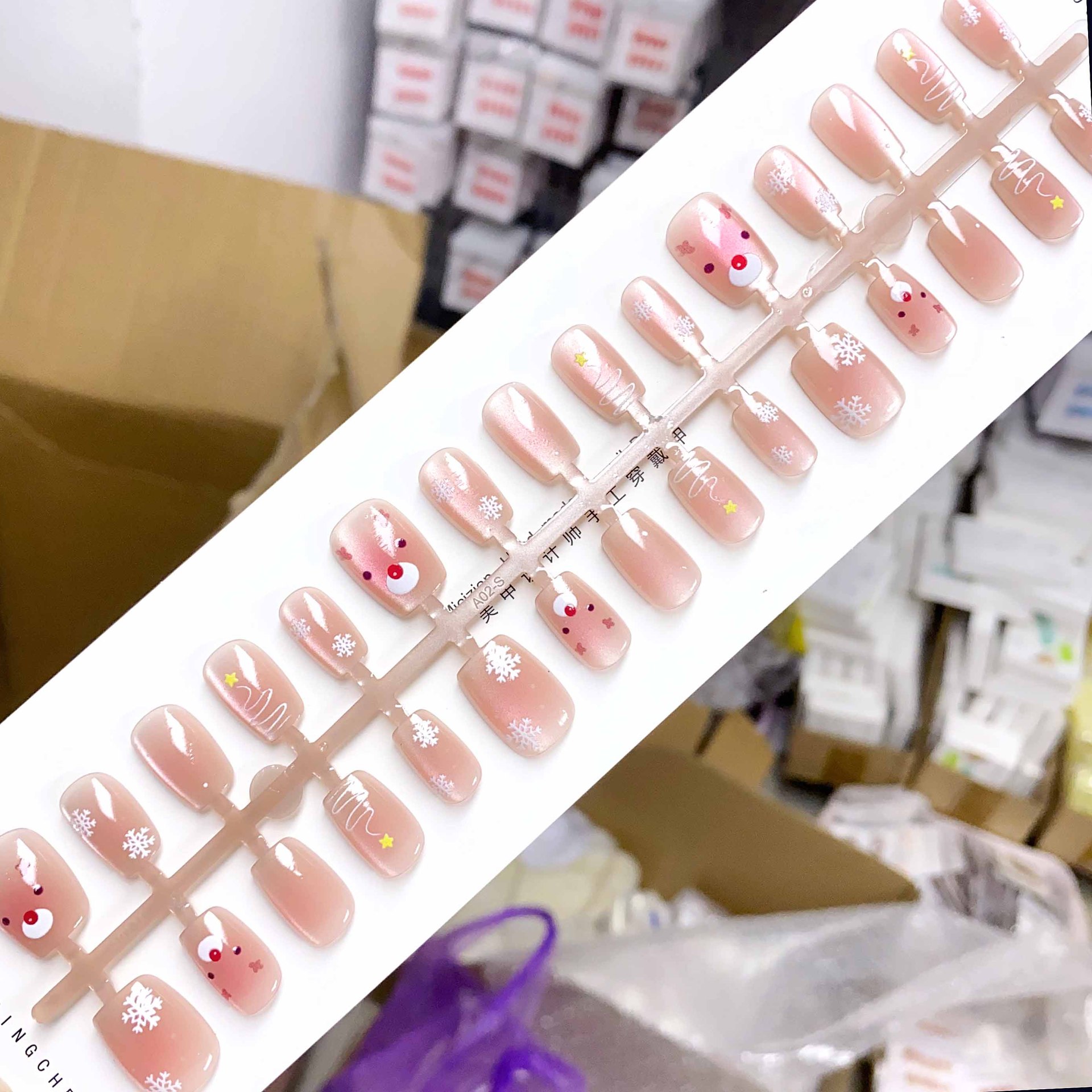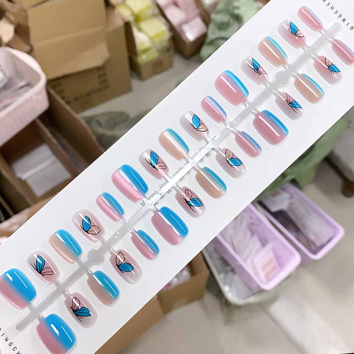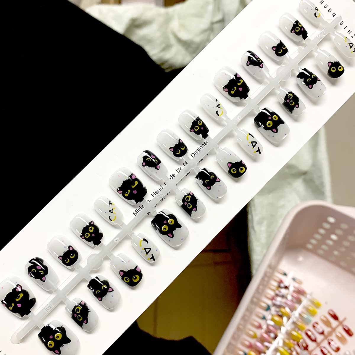 预制甲片抖音新款穿戴甲可批发猫眼条美甲猫眼假指甲合集30片