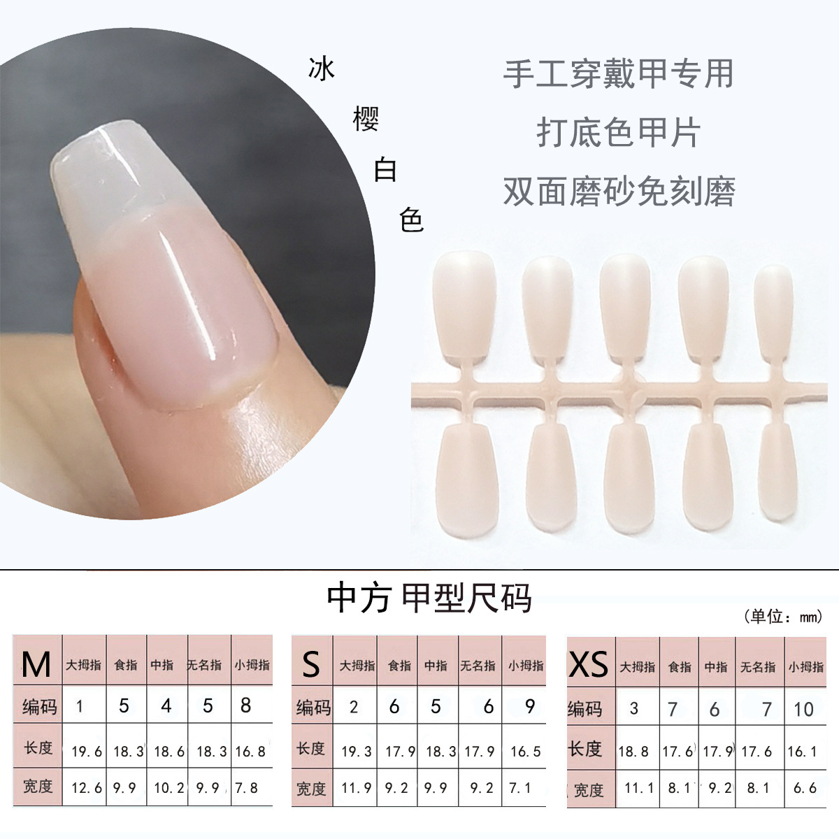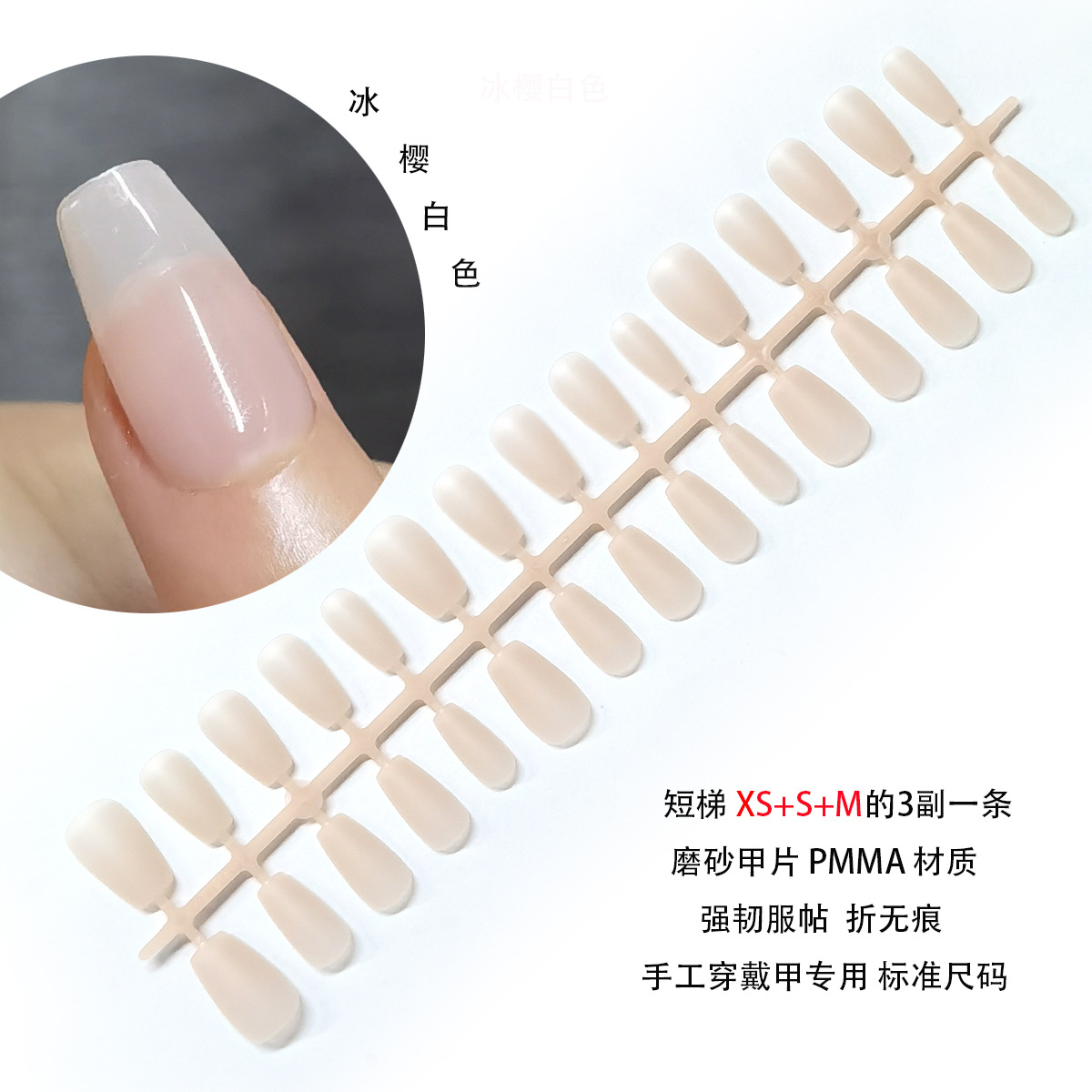 冰樱白色美肌裸色穿戴甲专用打底色甲片折无痕假指甲贴片分码甲条