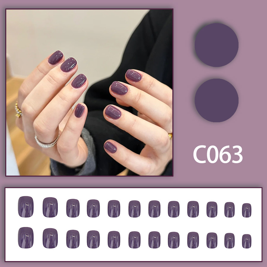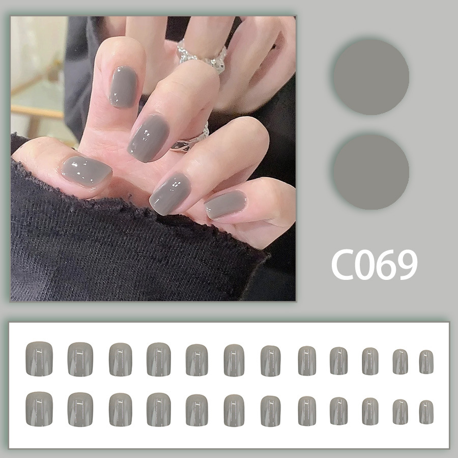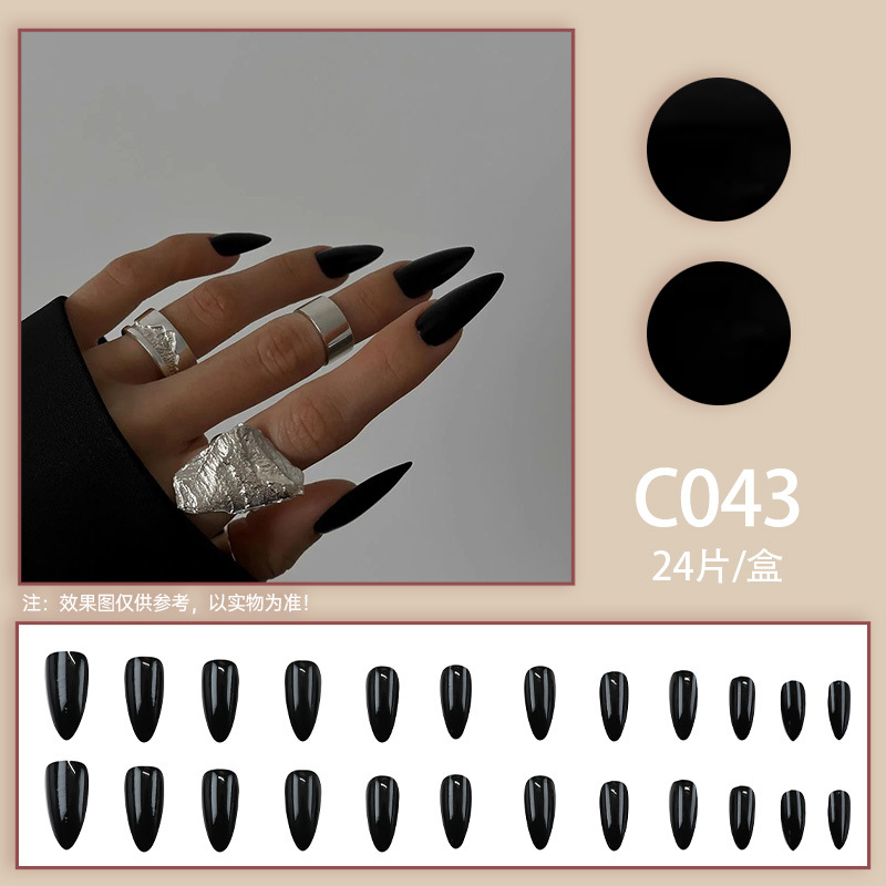 纯色简约美甲甲片高级感可拆卸显白成品24片裸色黑色白红色穿戴甲