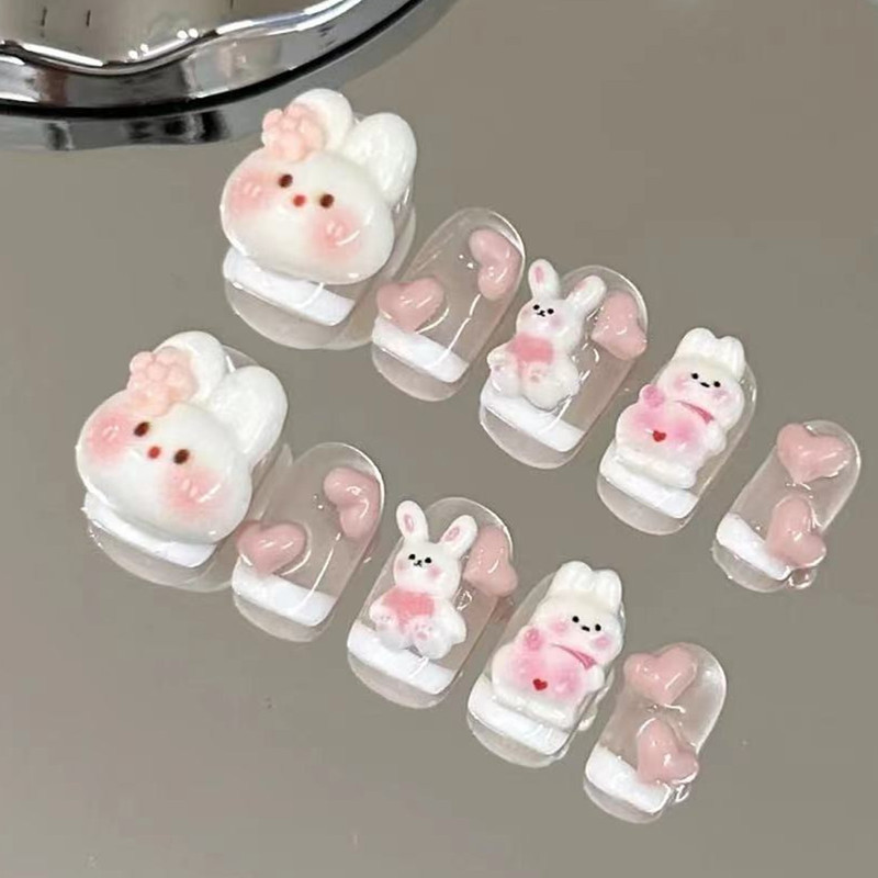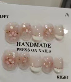 裸色显白可拆卸假指甲轻奢甜美指甲贴美甲贴纯手工美甲穿戴甲