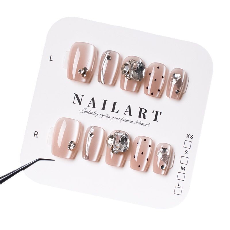 抖音爆款猫眼手工穿戴甲波点纯欲显白猫眼美甲定制30片预制甲条