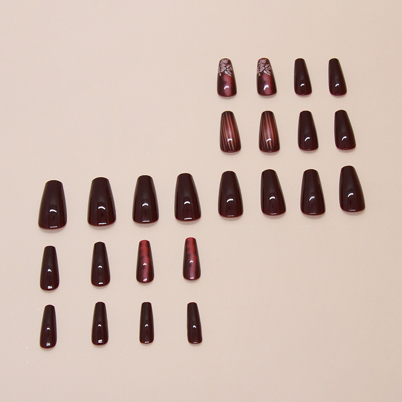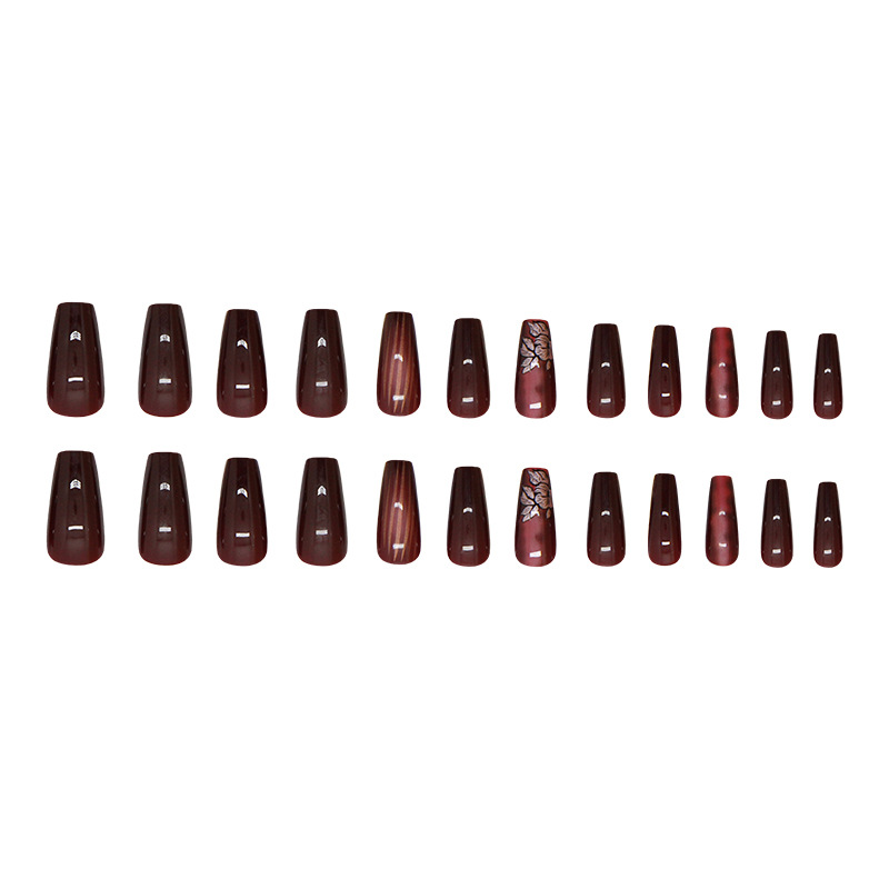 外贸暗红色神秘晕染花朵条纹甜酷少女百搭显白ins欧美风美甲片24