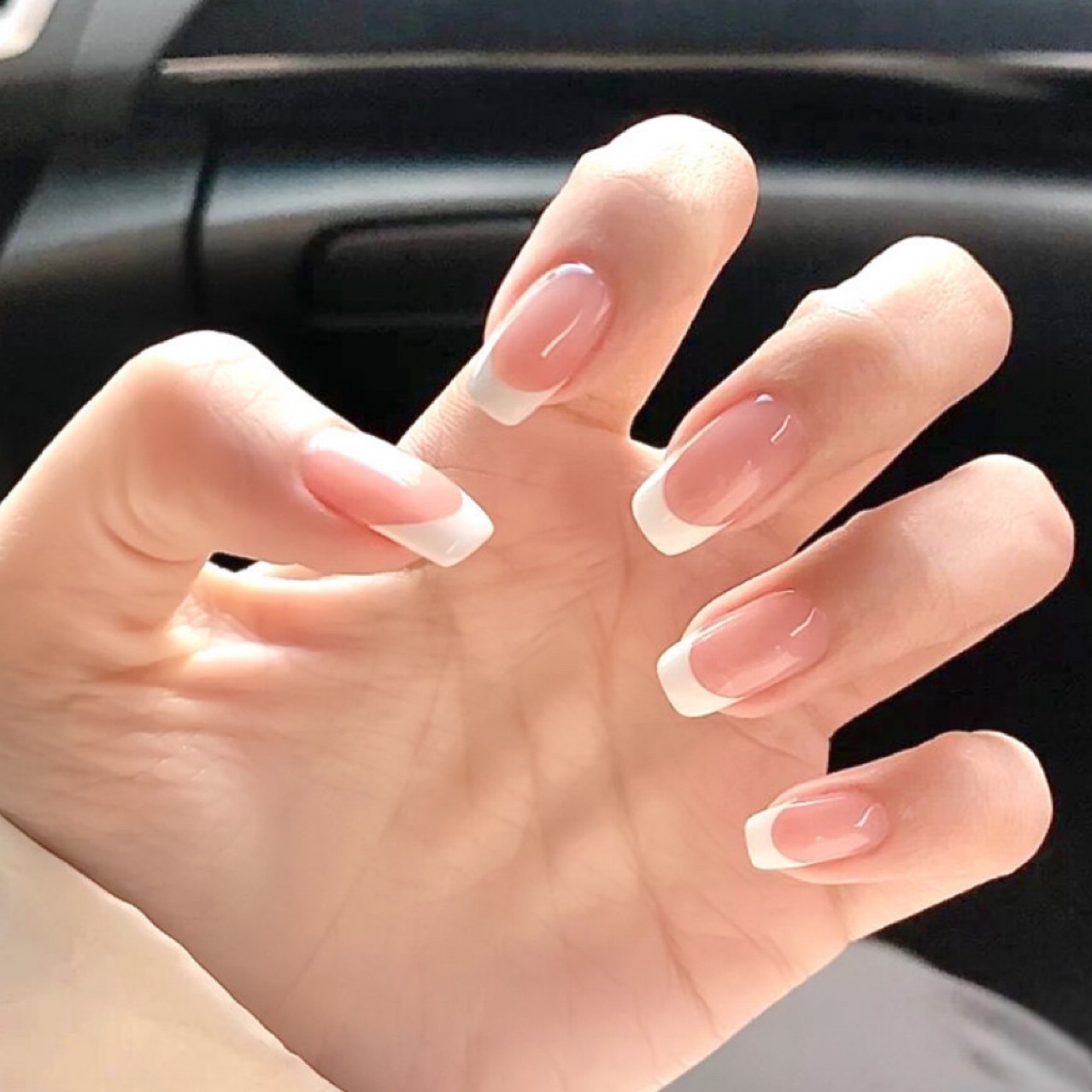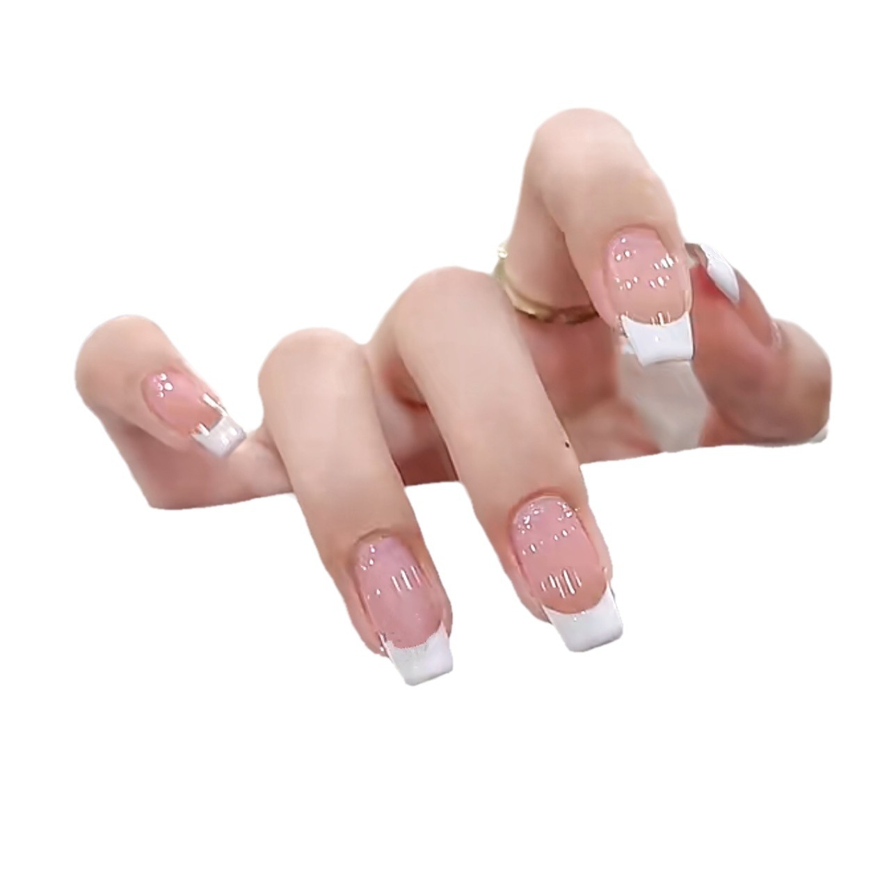 穿戴美甲法式白边中长款穿戴美甲贴片显可拆卸成品贴片甲片