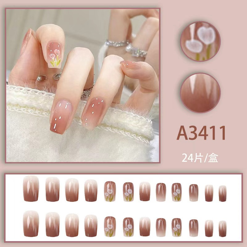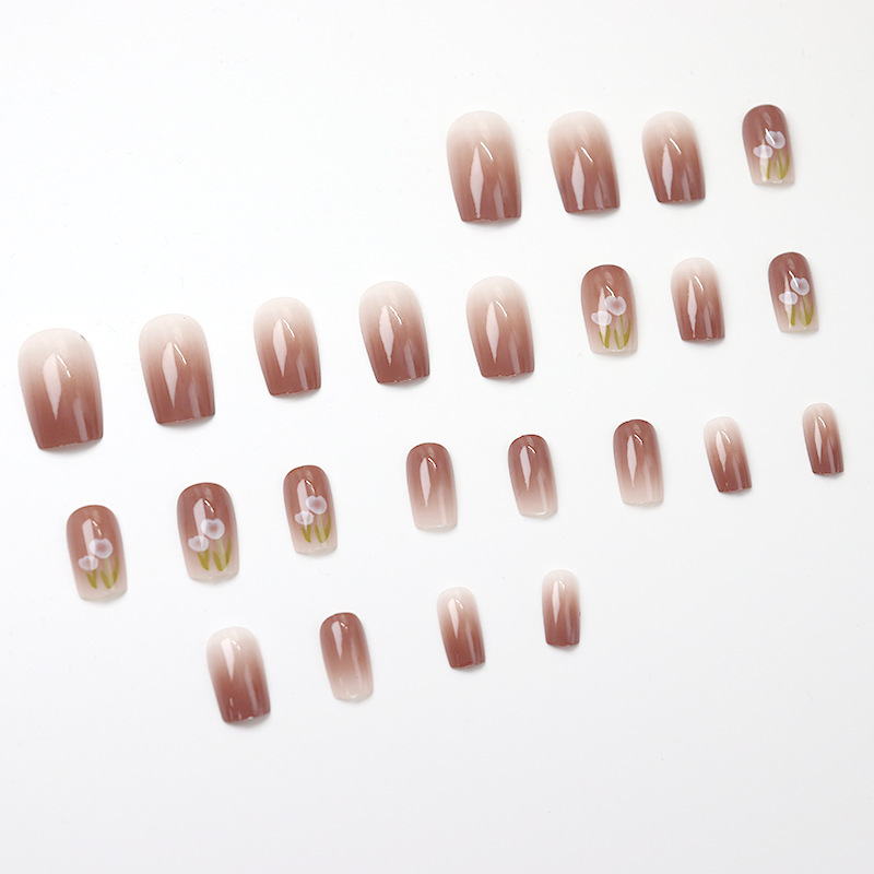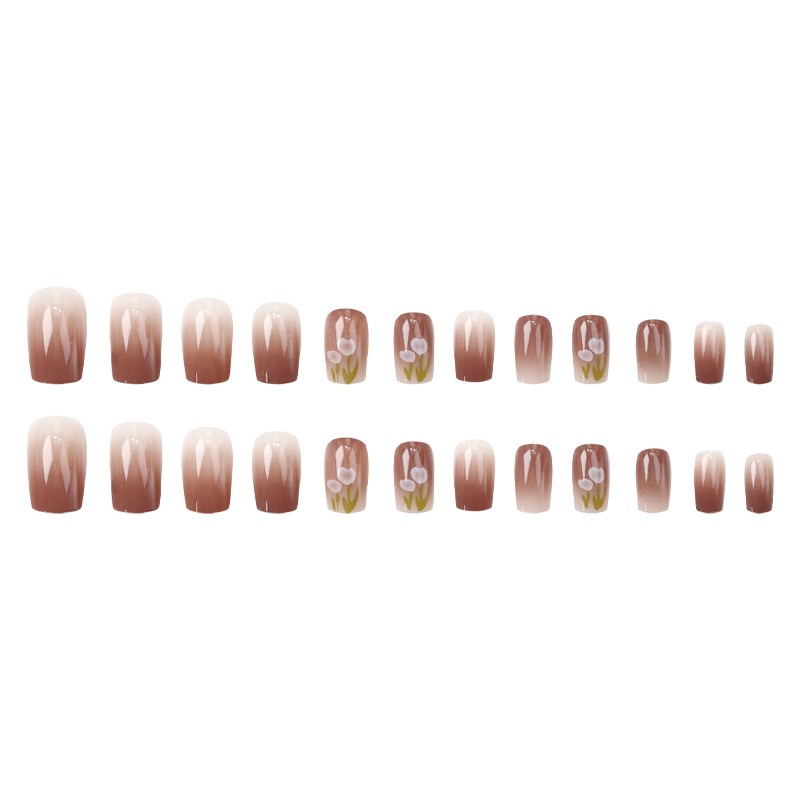 温柔郁金香短甲穿戴式夏日春夏款清爽显白冰透晕染渐变裸色穿戴甲