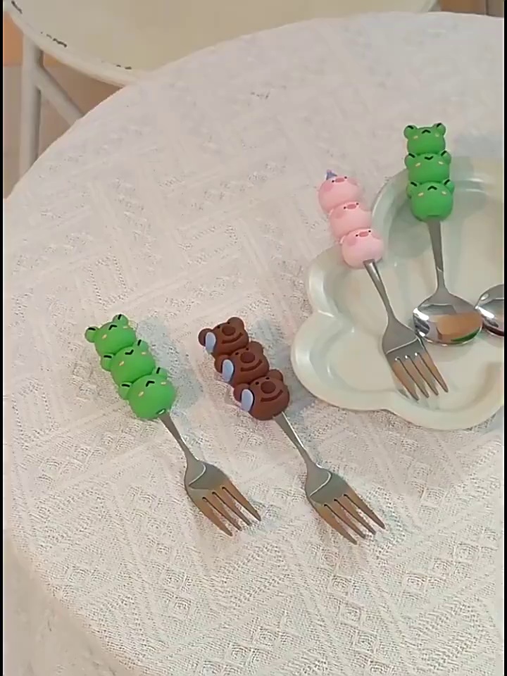 可爱创意蛋糕甜品不锈钢叉子勺子冰淇淋串串动物餐具防摔吃饭叉勺