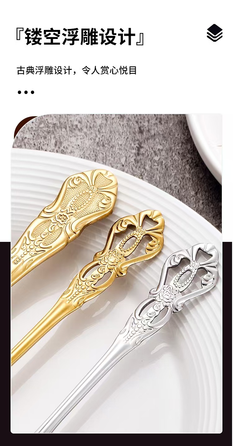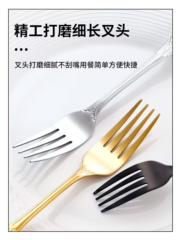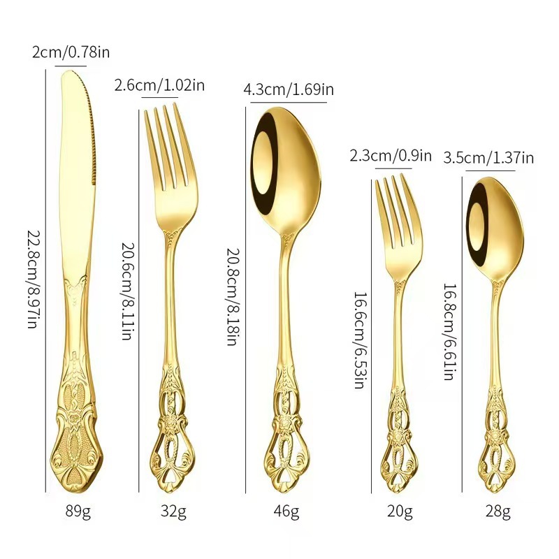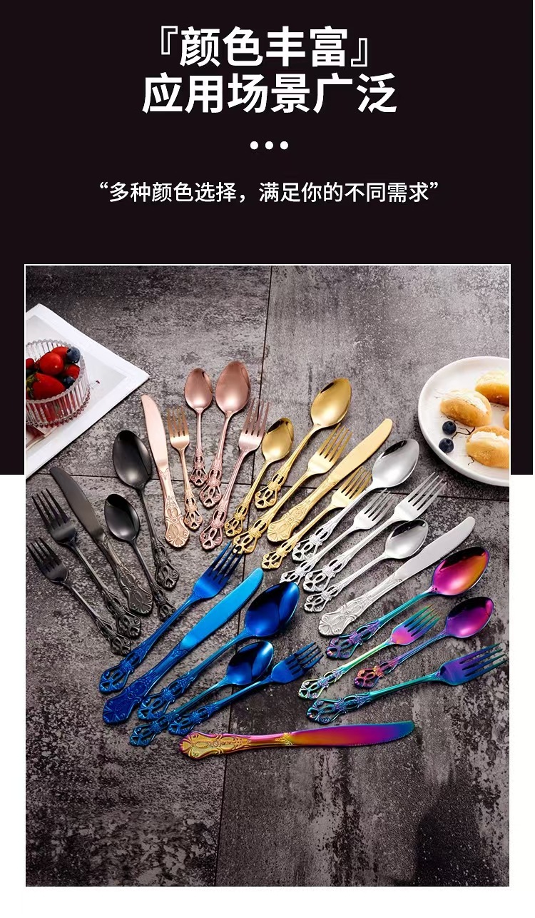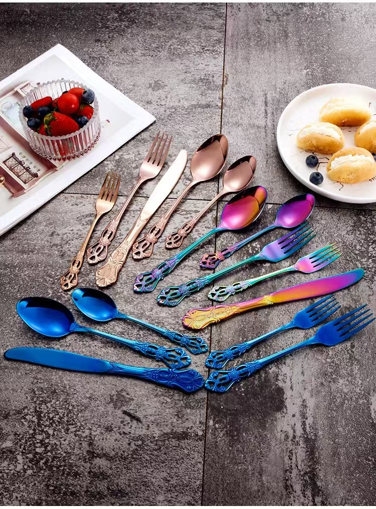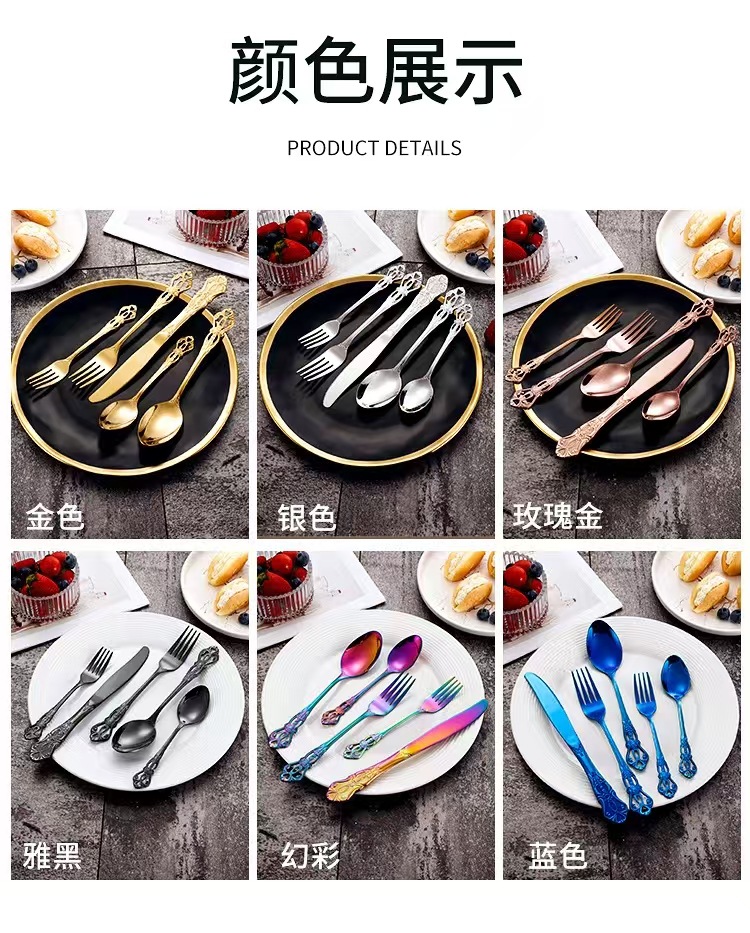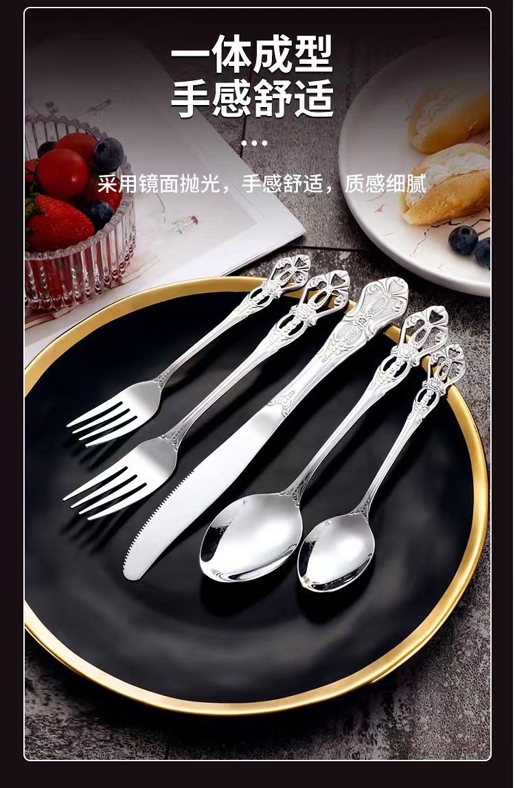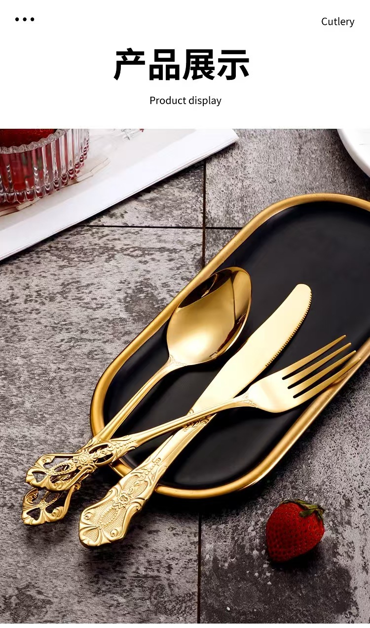 跨境不锈钢刀叉勺餐具皇庭浮雕镂空24件套西餐牛排刀叉勺礼品套装