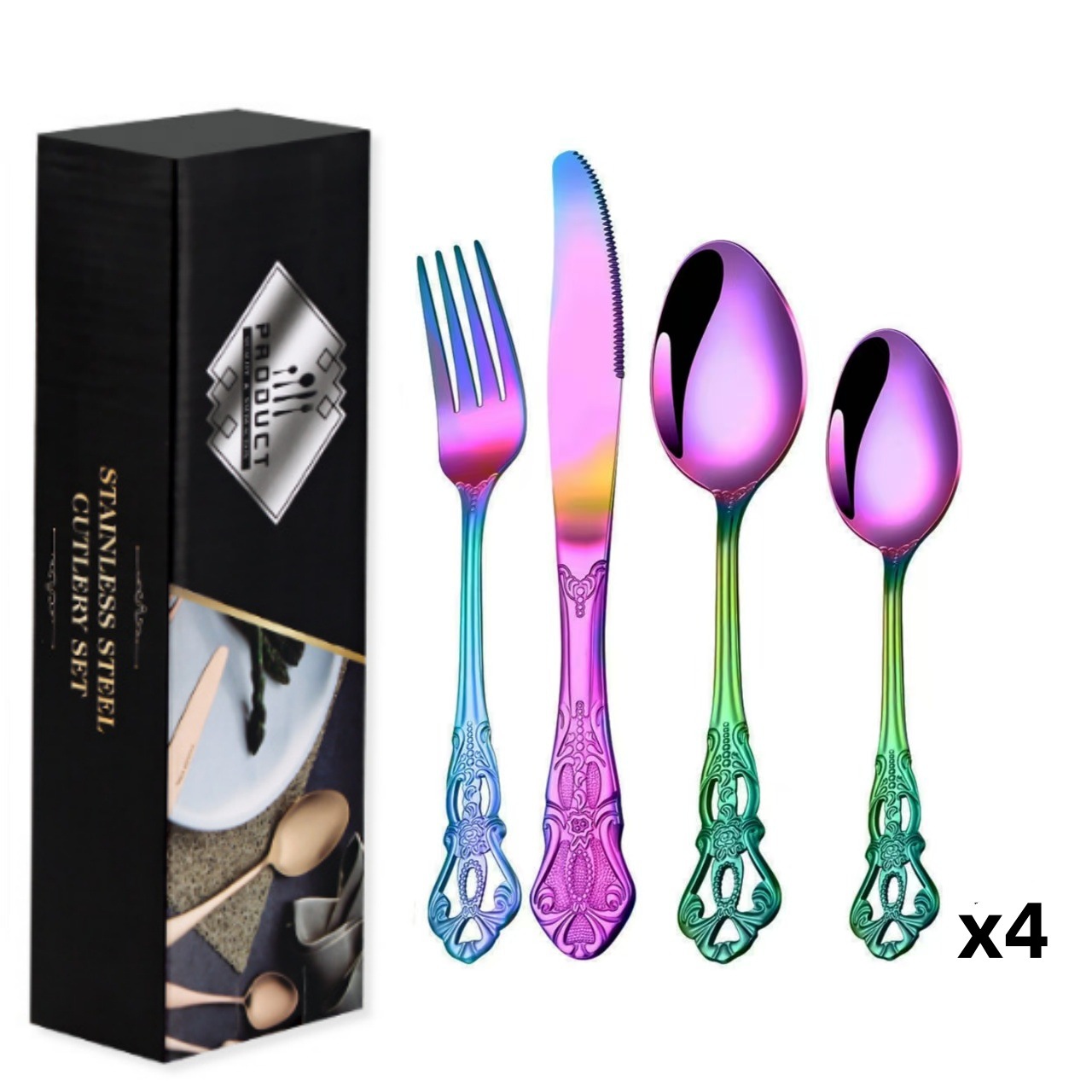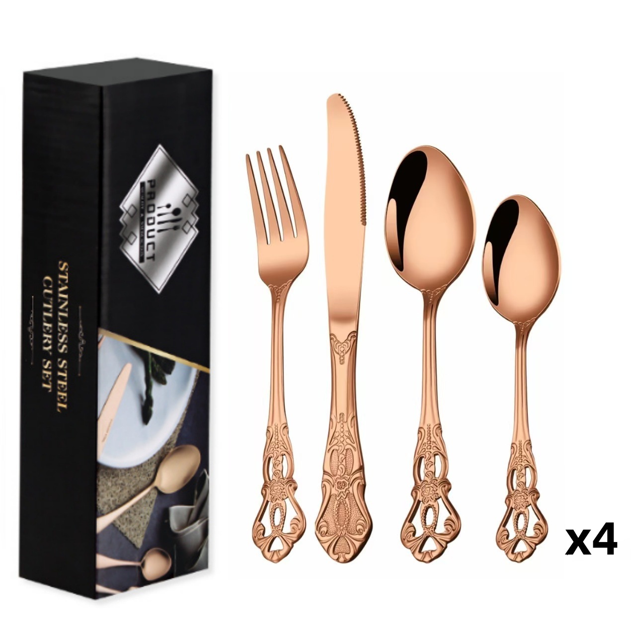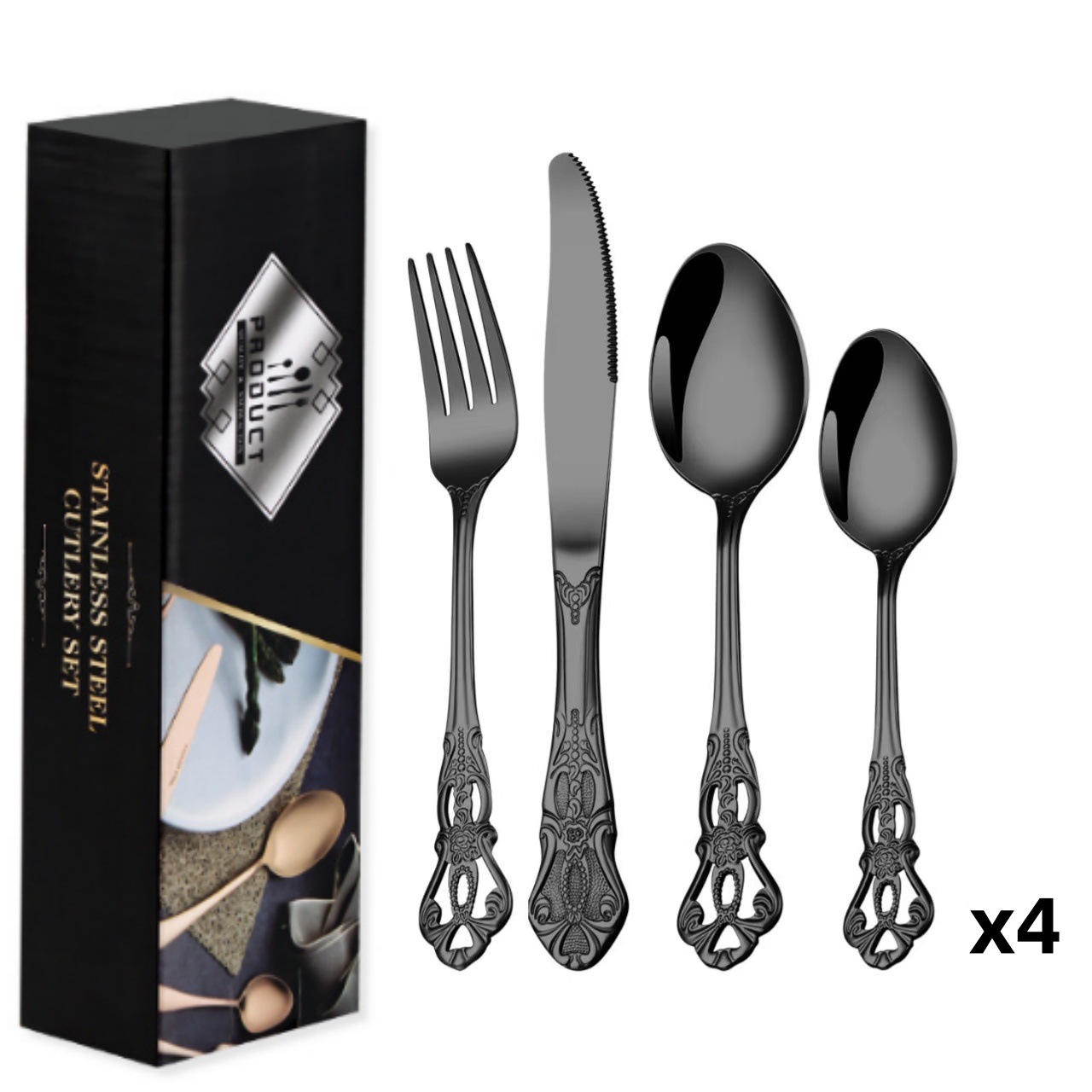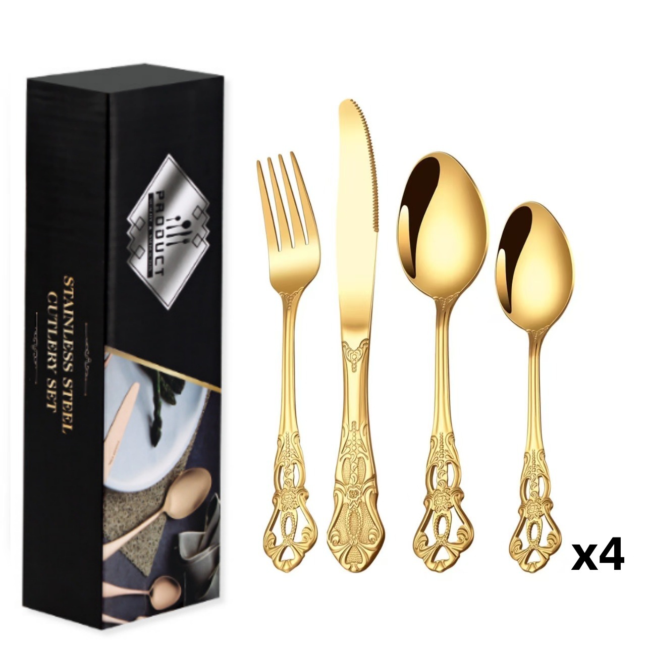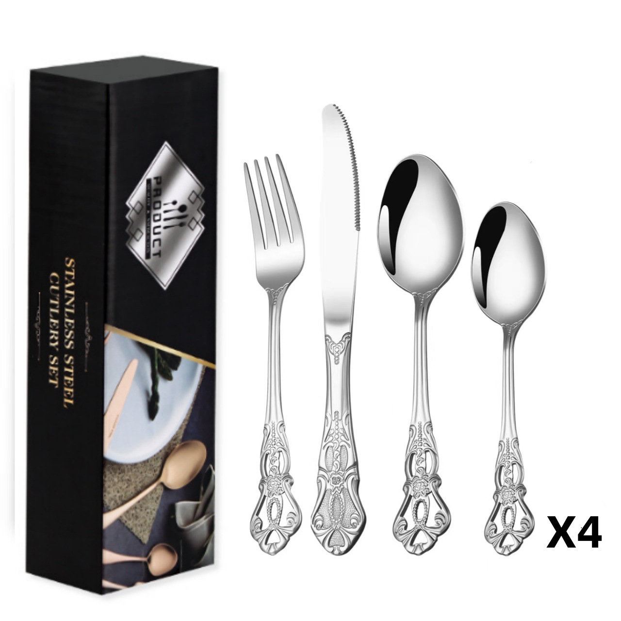 跨境不锈钢刀叉勺餐具皇庭浮雕镂空24件套西餐牛排刀叉勺礼品套装