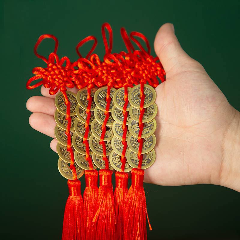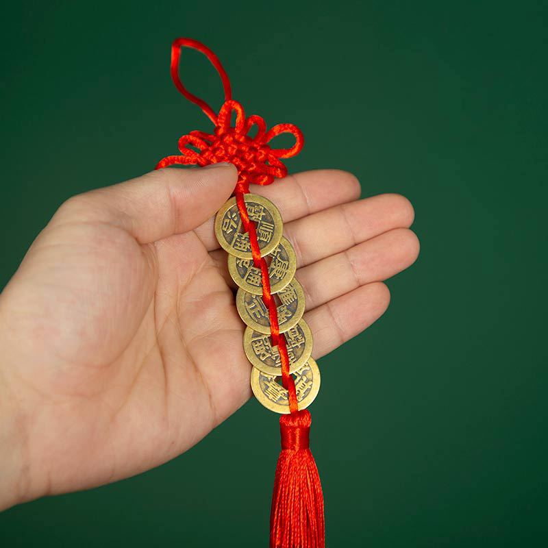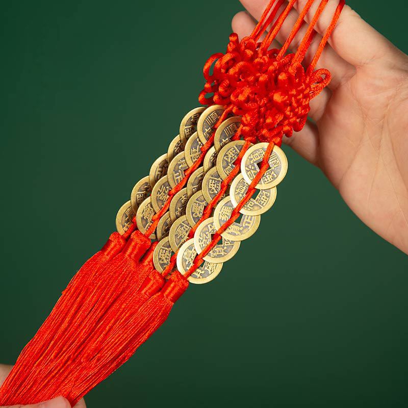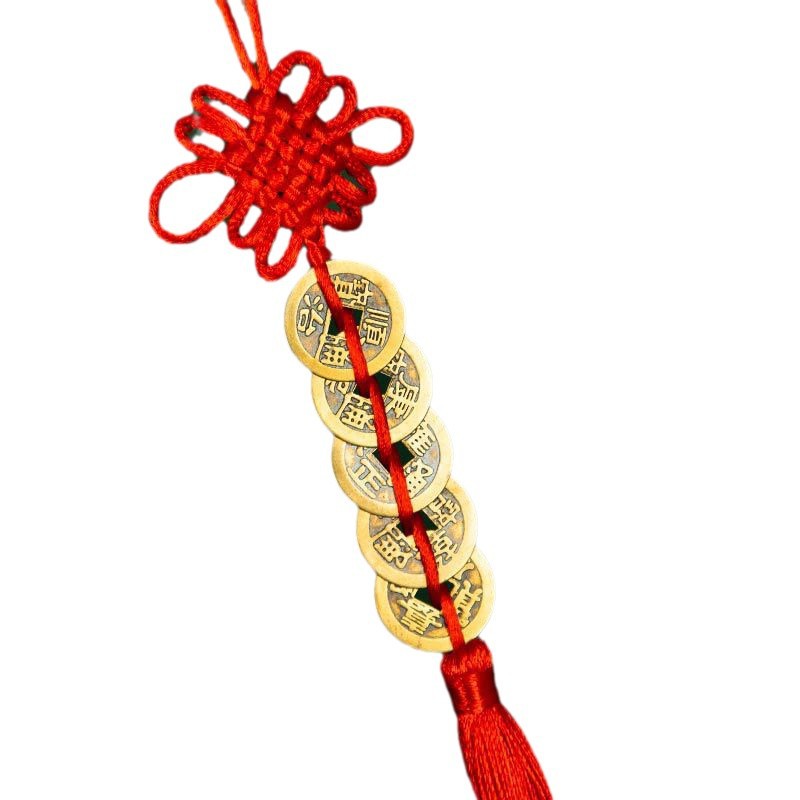 五帝钱挂件全铜真品门对门压门槛吉祥结纯黄铜中国结铜钱