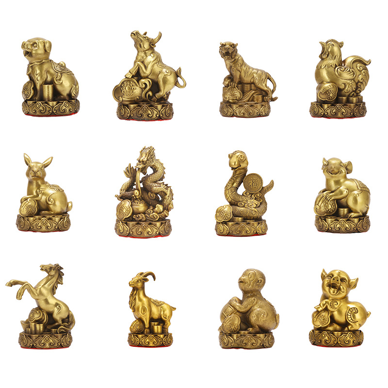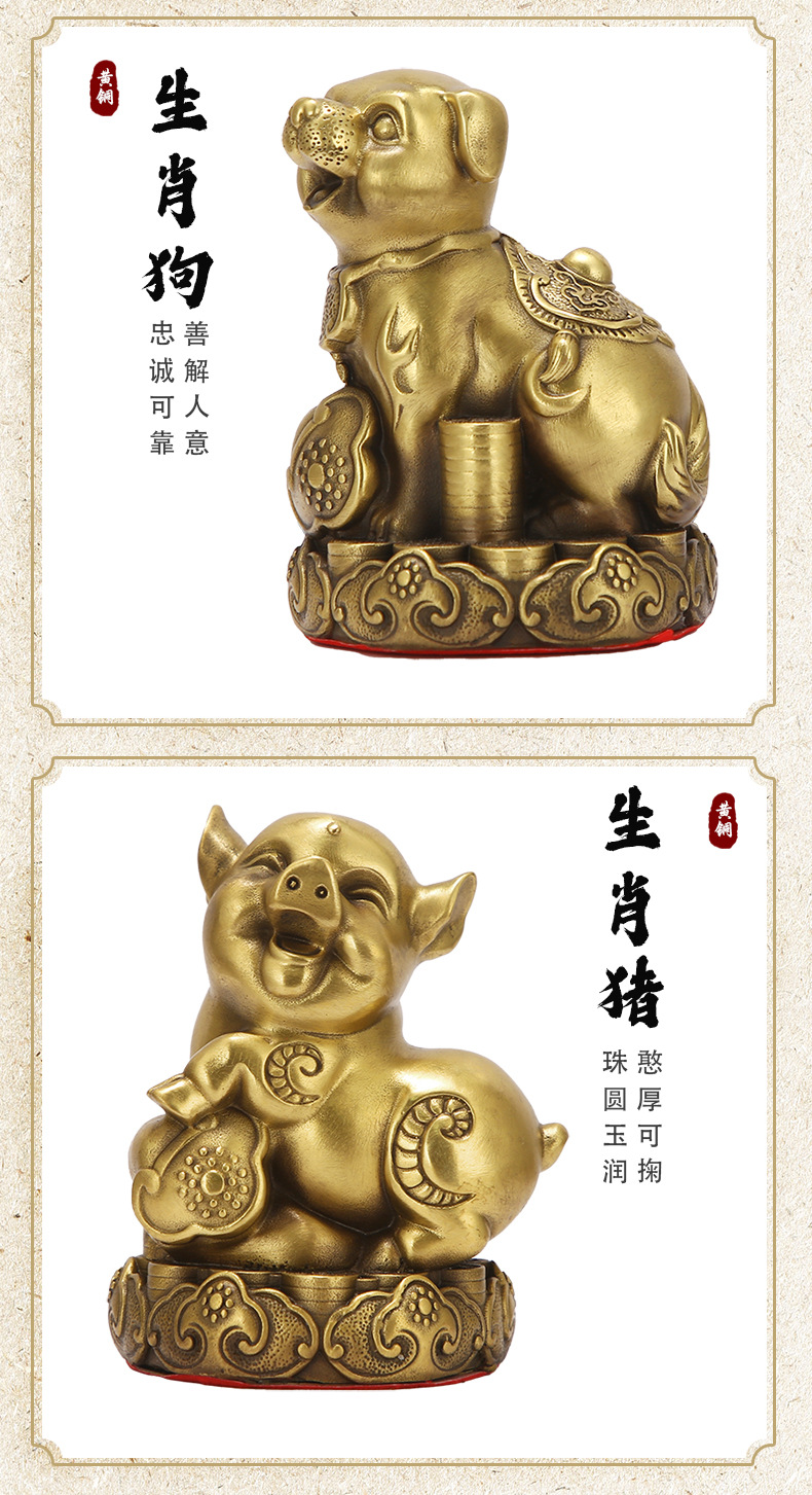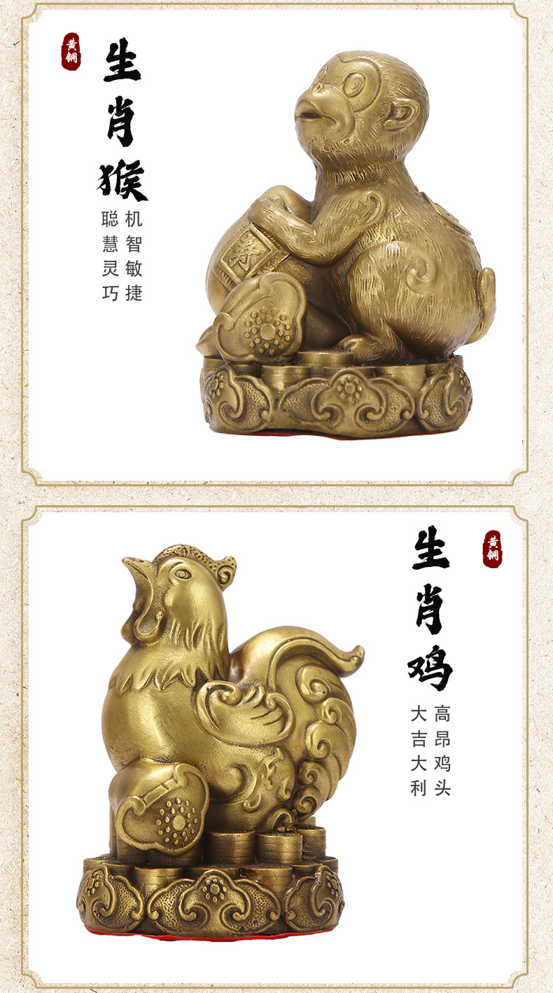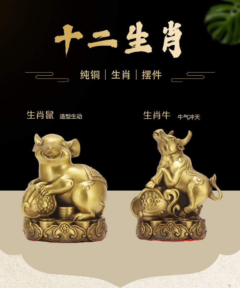 厂家批发纯黄铜如意生肖鼠牛虎兔子龙蛇马羊猴鸡狗猪工艺品摆件