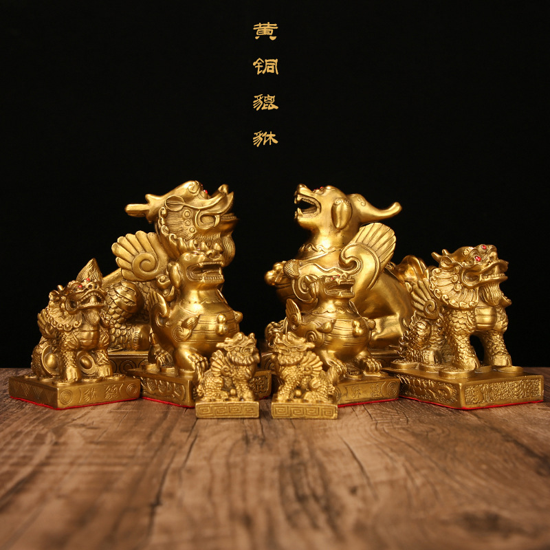厂家批发黄铜貔貅风 水摆件大小号铜皮休怪兽聚 财办公家居礼品