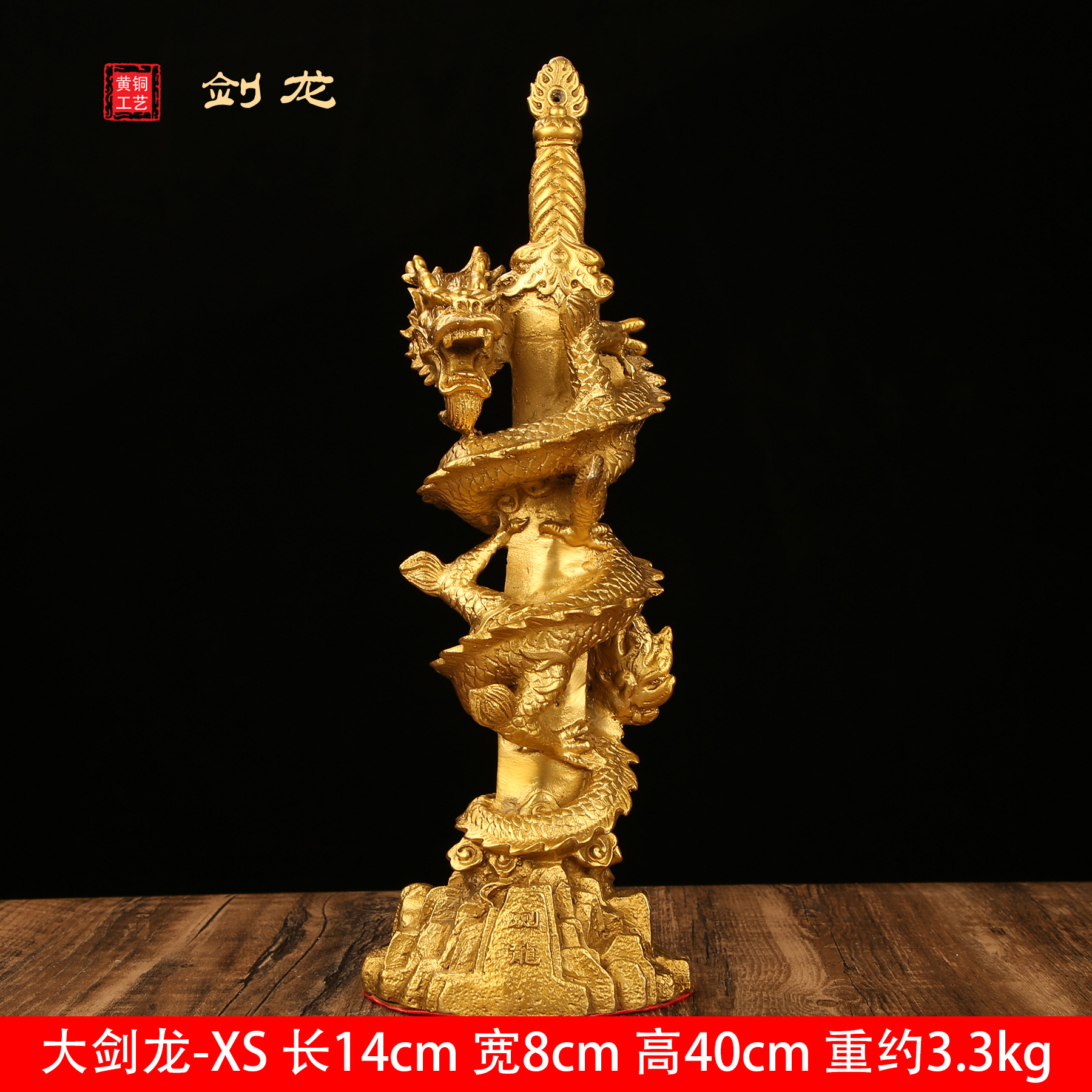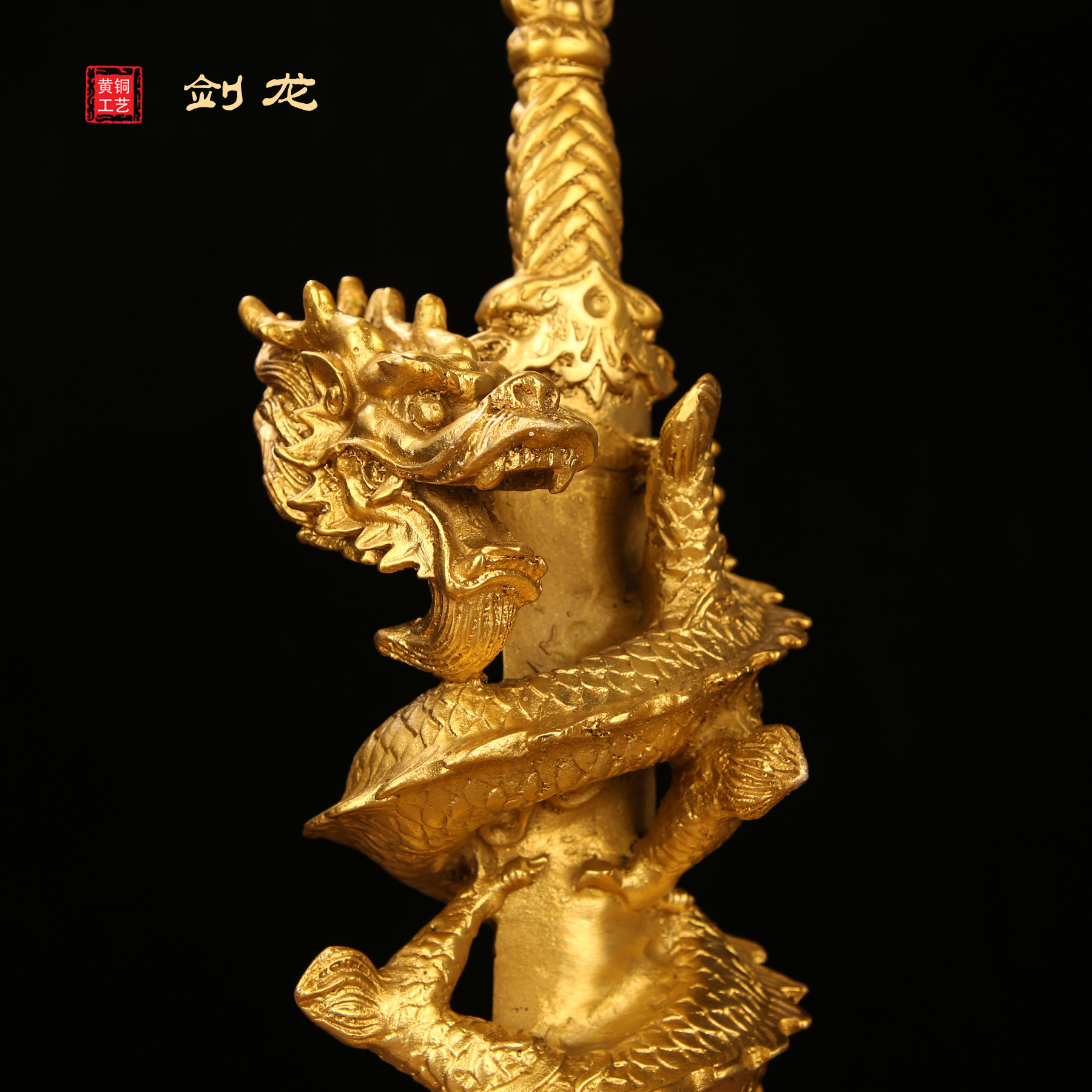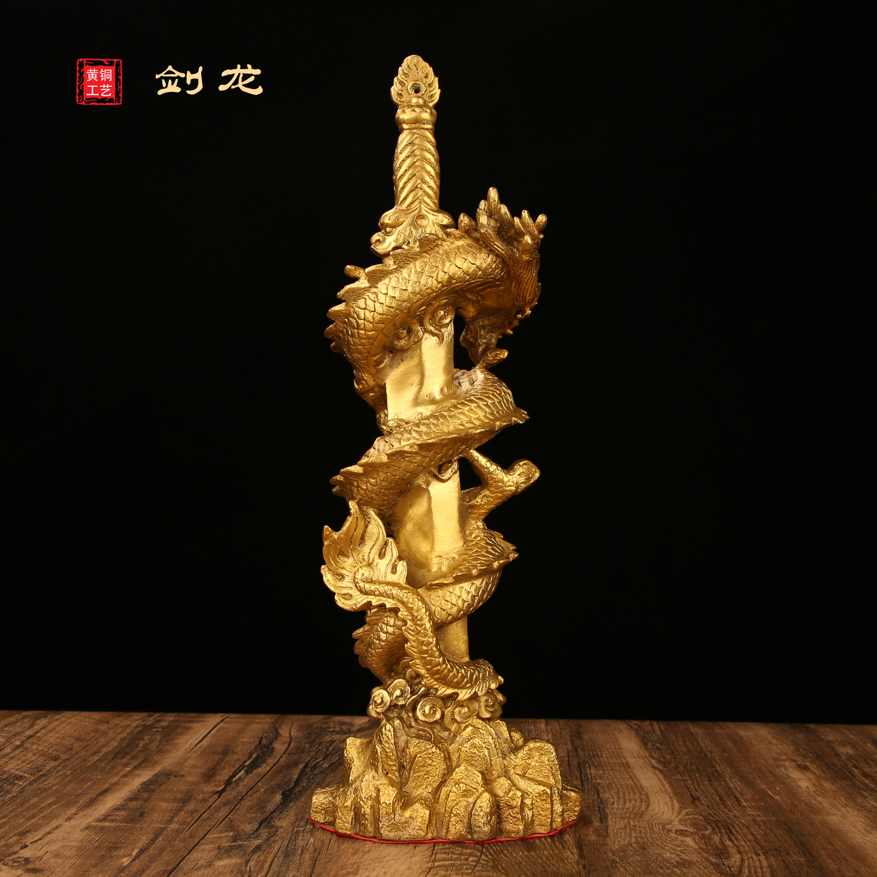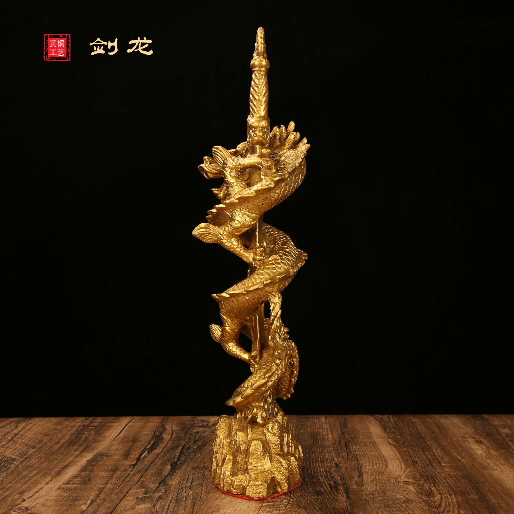 铜龙摆件纯黄铜剑龙办公室家居全黄铜装饰品龙摆件工艺品大号