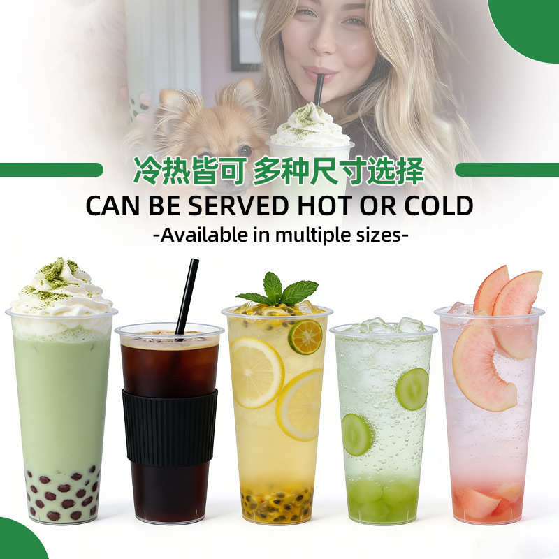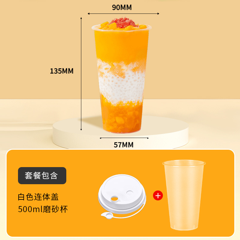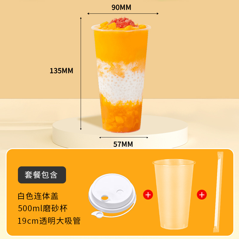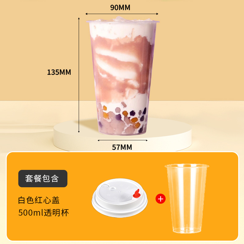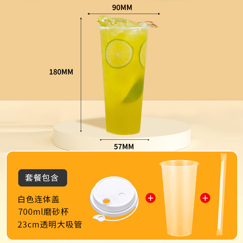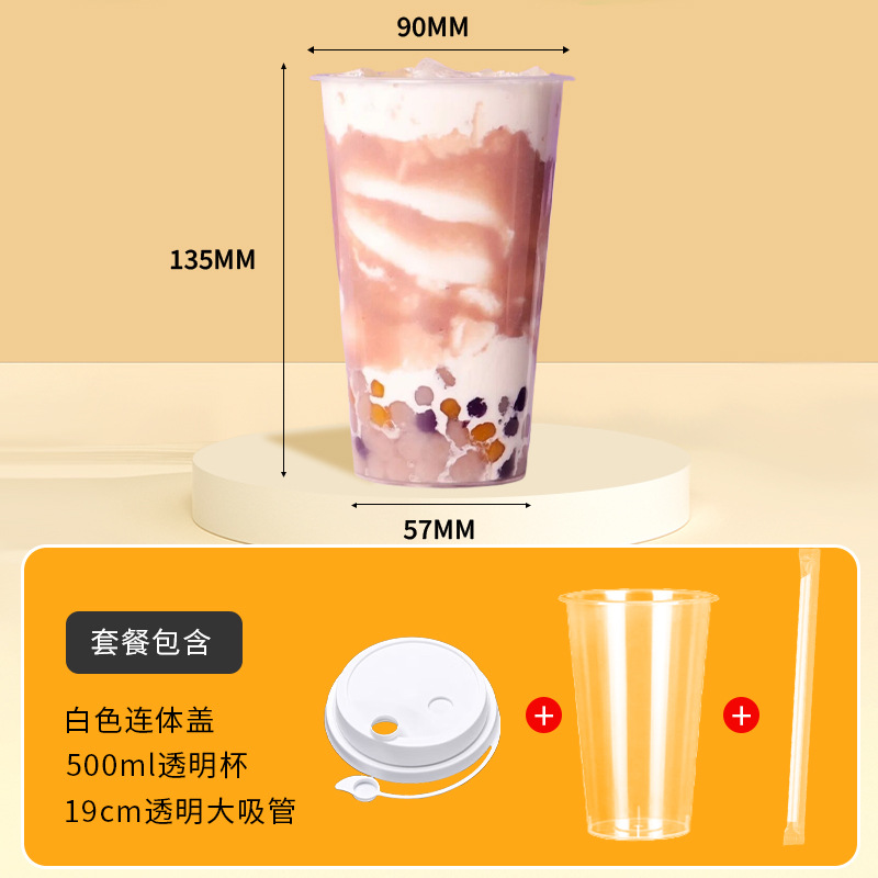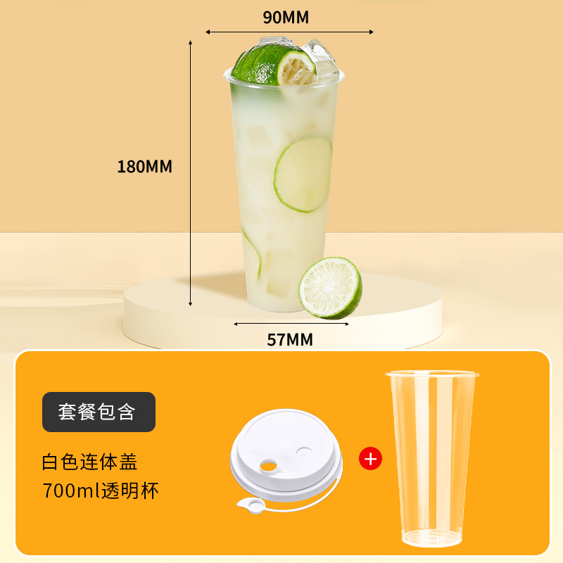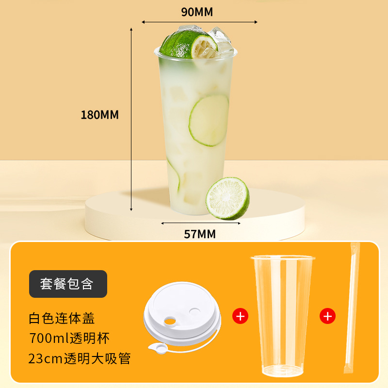 奶茶杯500ml饮料果汁杯700ml塑料带吸管盖子冷热饮奶茶杯子一次性