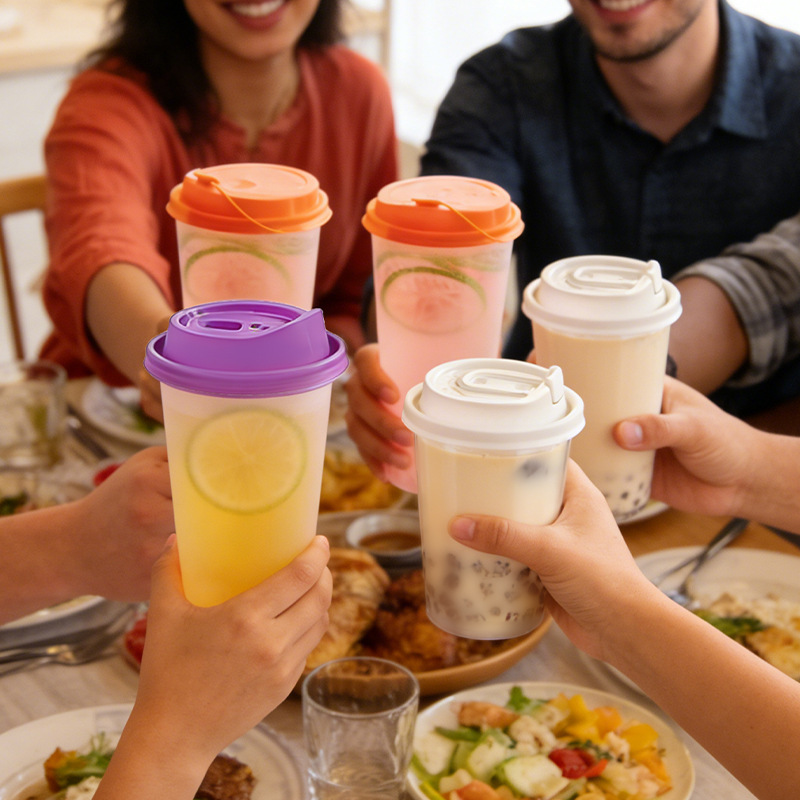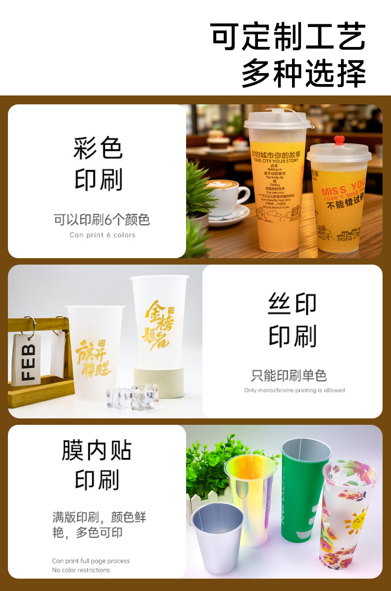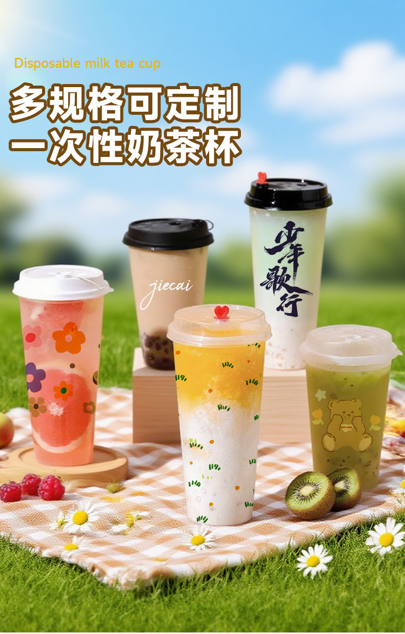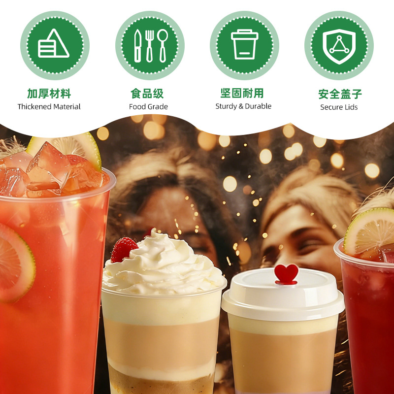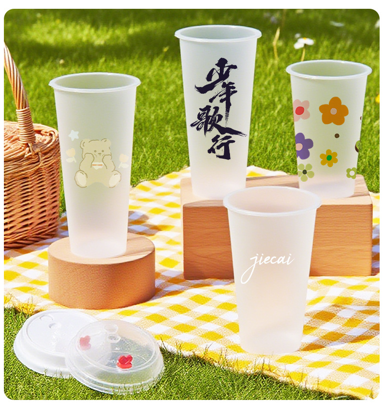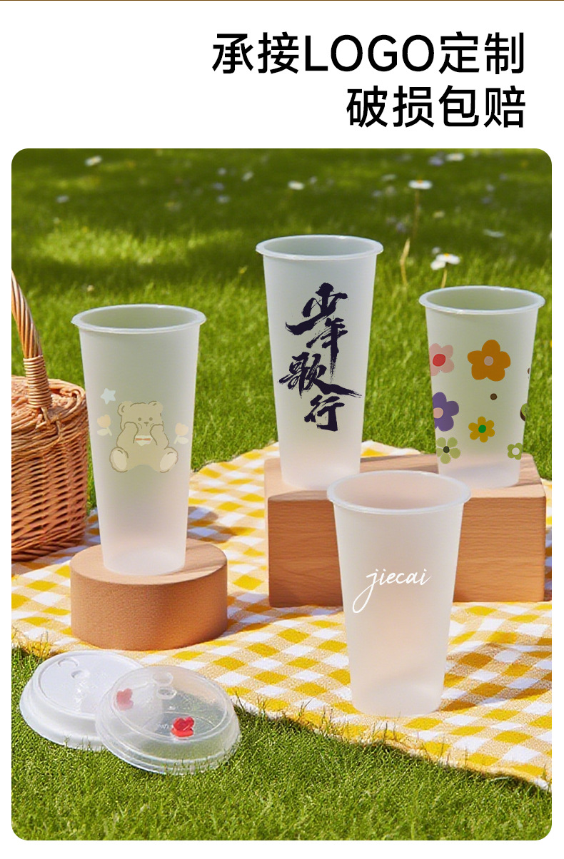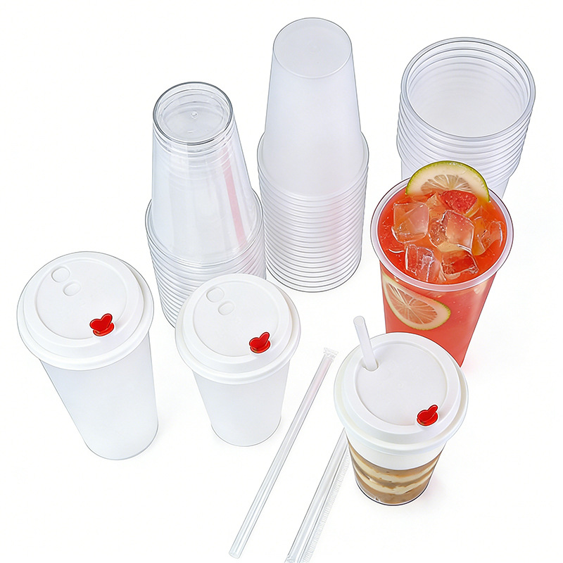 奶茶杯500ml饮料果汁杯700ml塑料带吸管盖子冷热饮奶茶杯子一次性
