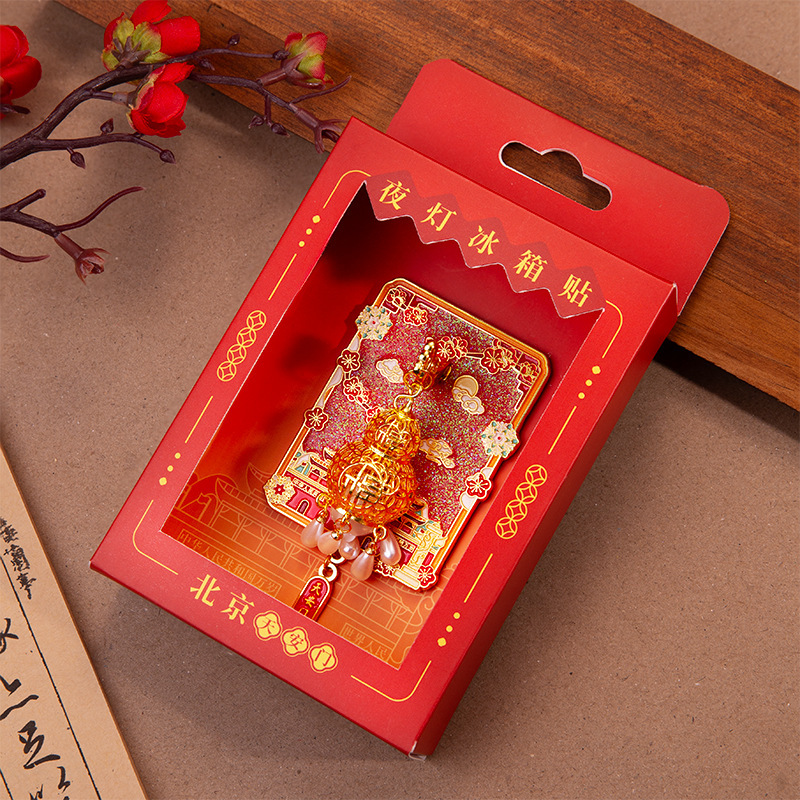 杭州灵隐寺普陀山五台山文创发光金属冰箱贴夜光磁吸纪念工艺品