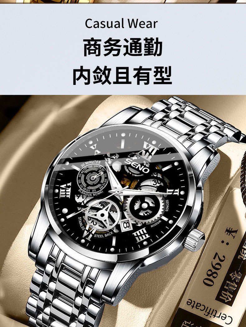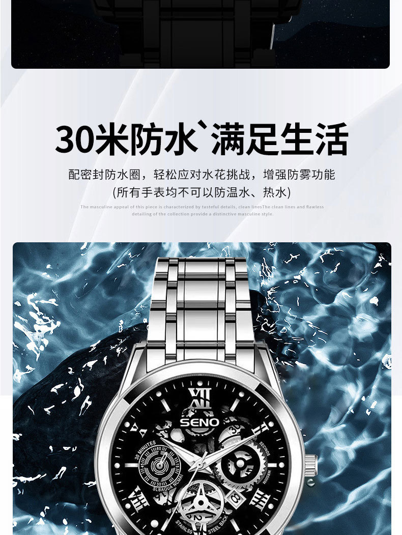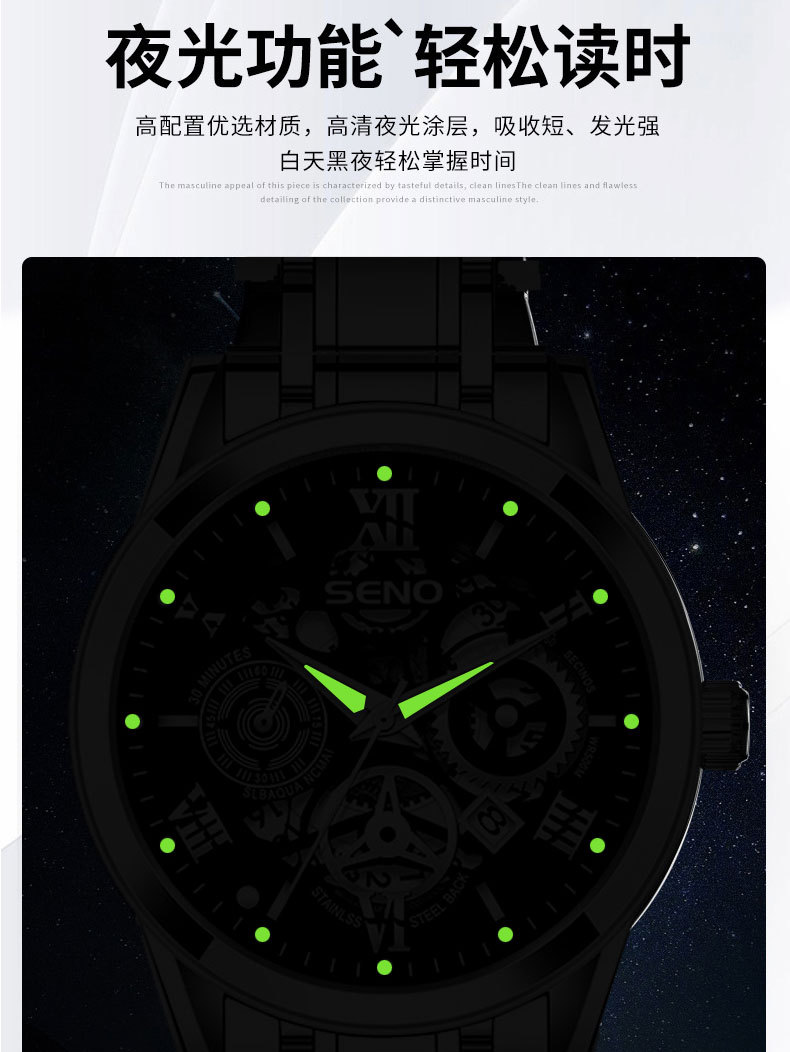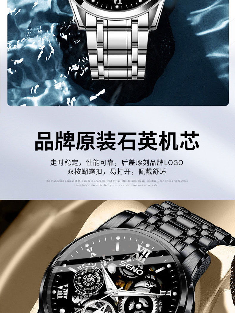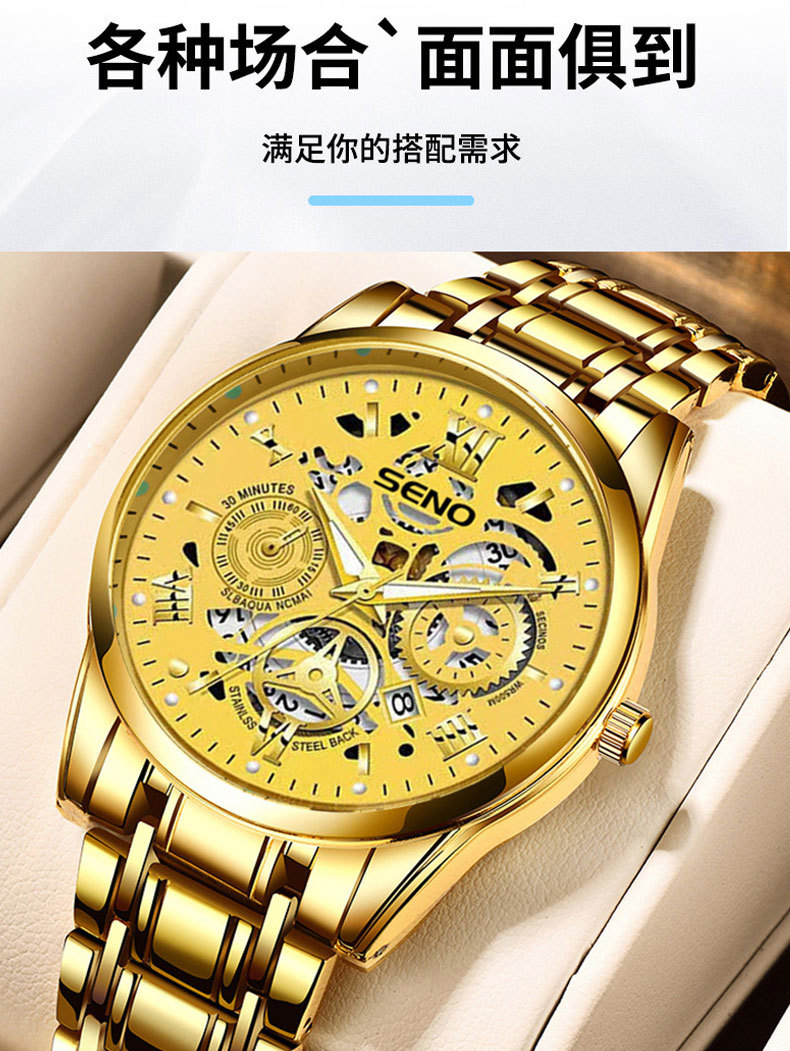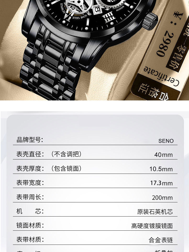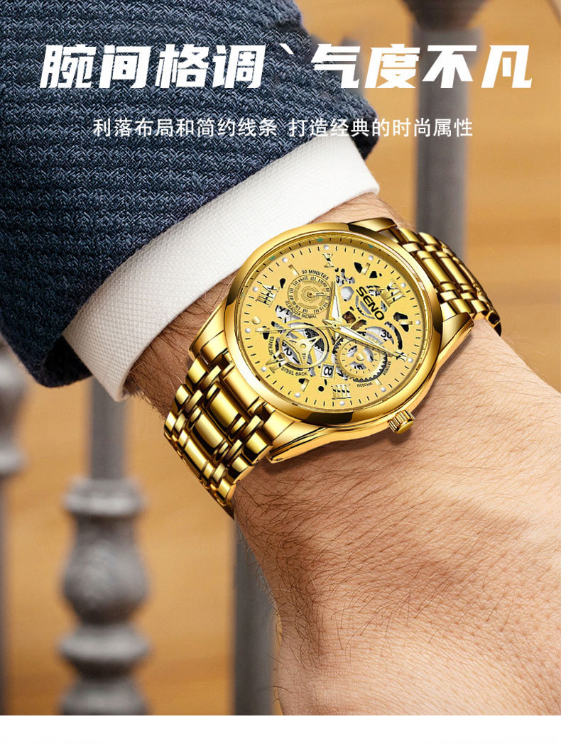 辰诺SENO跨境爆款手表全自动石英表商务感夜光防水时尚男批发手表