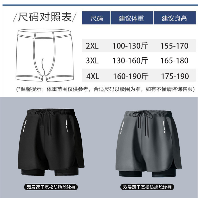 跨境泳裤男宽松防尴尬双层游泳裤男士跑步运动裤透气速干温泉泳裤