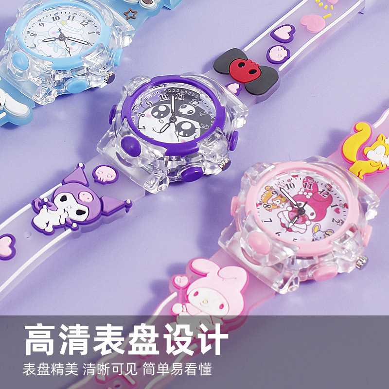 3D立体卡通手表三丽鸥七彩发光儿童石英表美乐蒂KT猫学生指针腕表