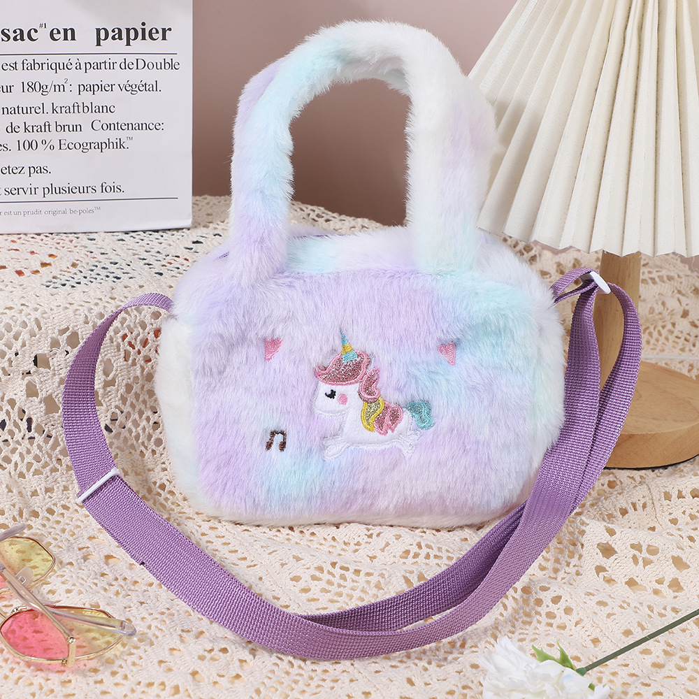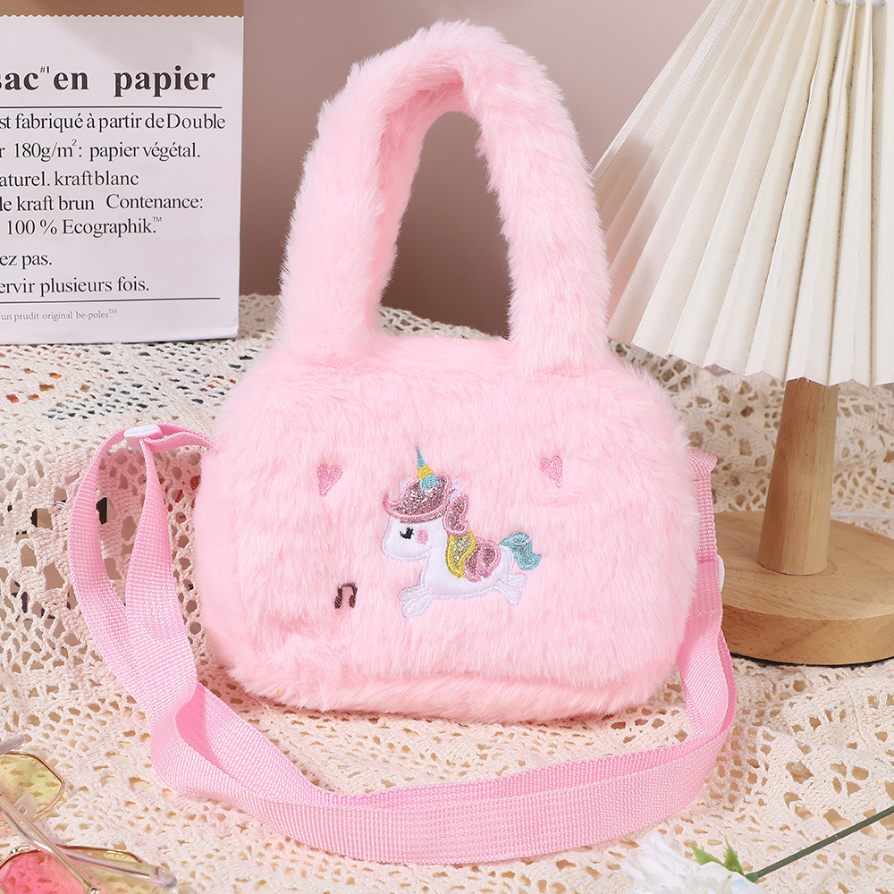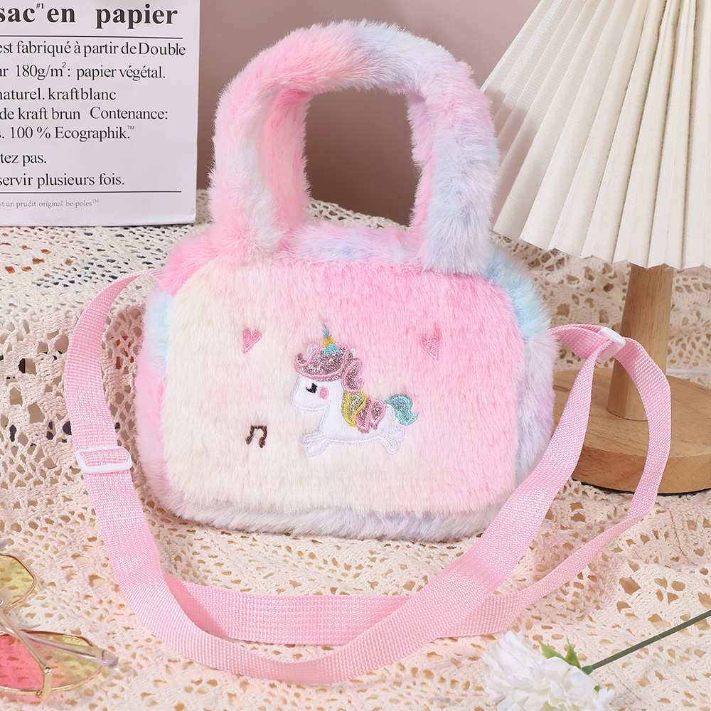 卡通独角兽毛绒手提斜挎包幼儿园包包单肩包大容量女可爱零钱包