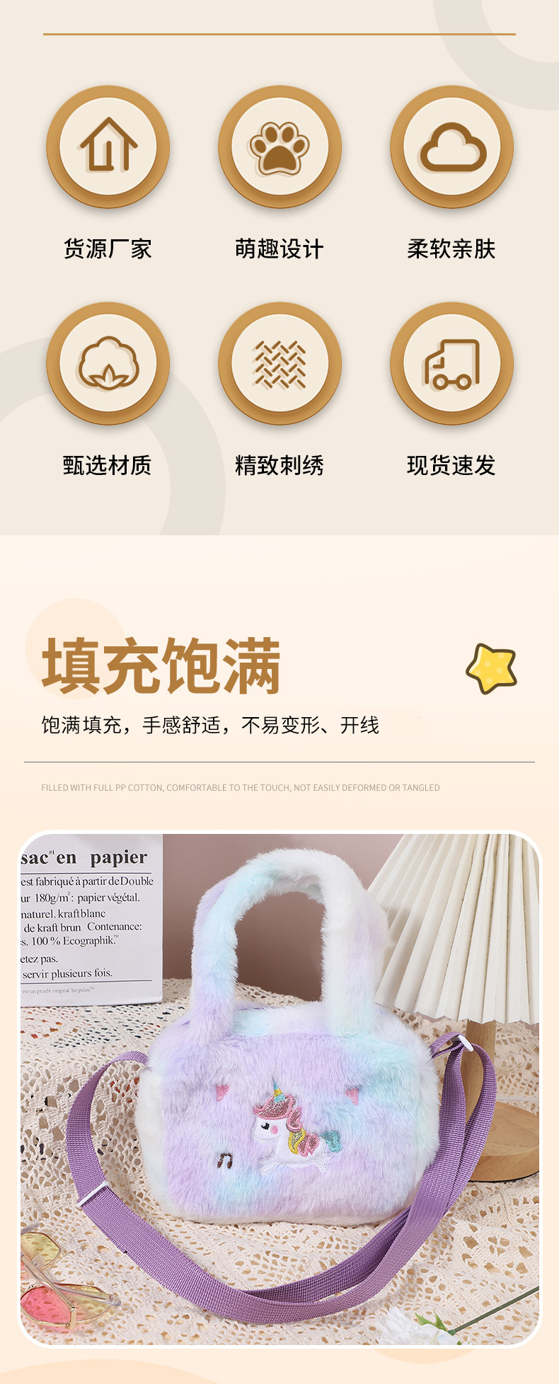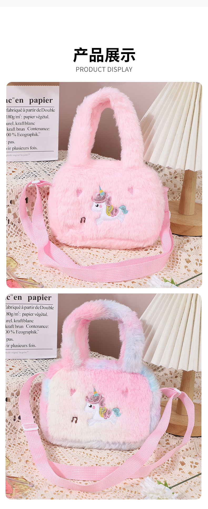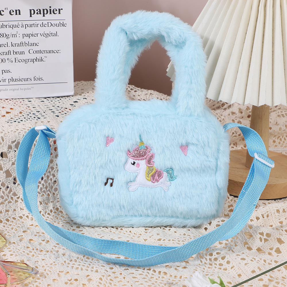 卡通独角兽毛绒手提斜挎包幼儿园包包单肩包大容量女可爱零钱包