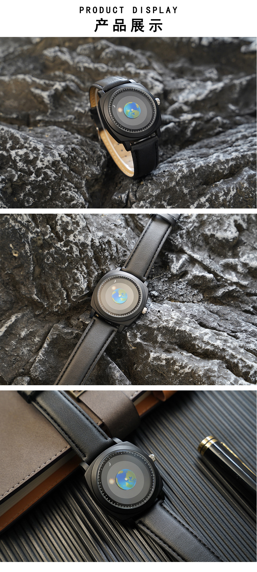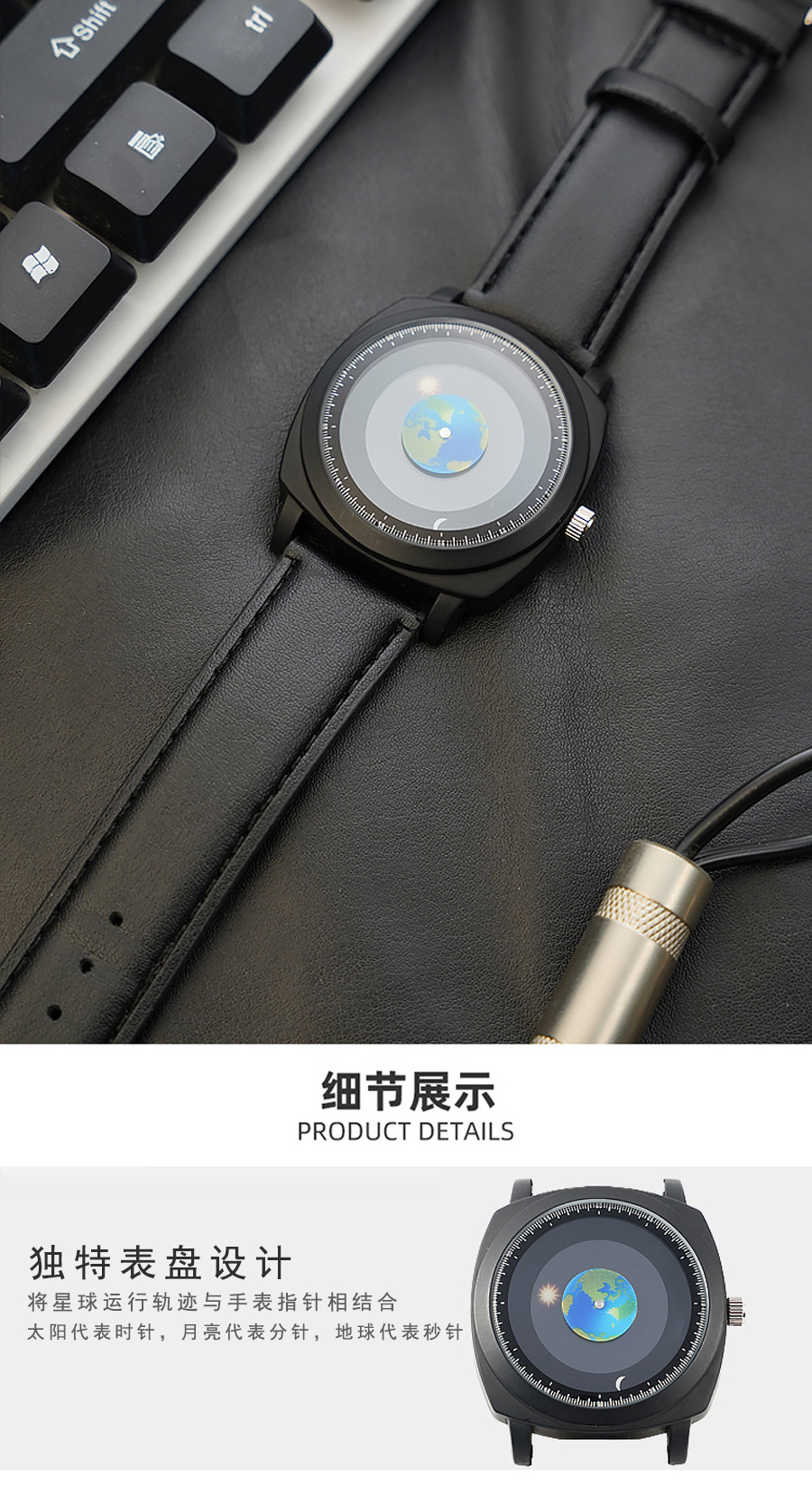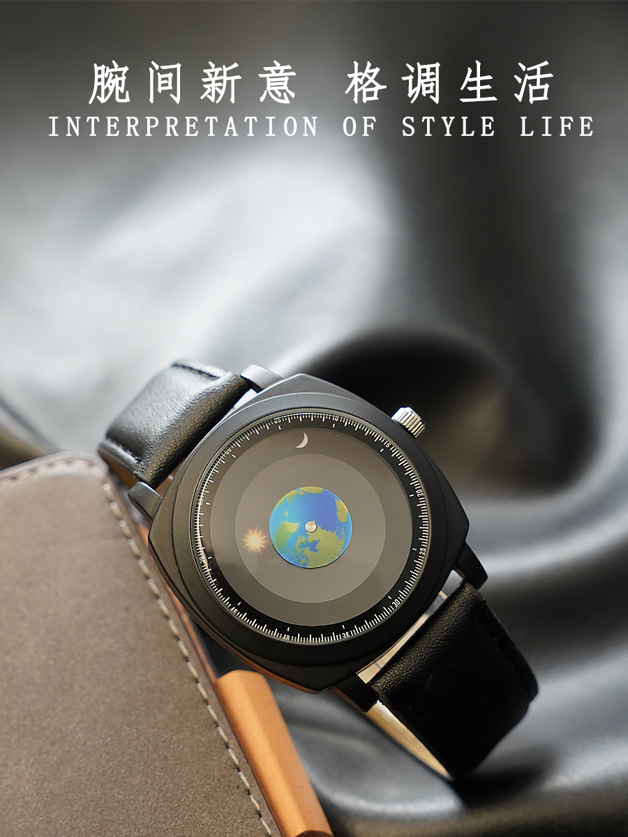时尚潮流男士手表运动太阳月亮地球指针学生男腕表跨境石英表588