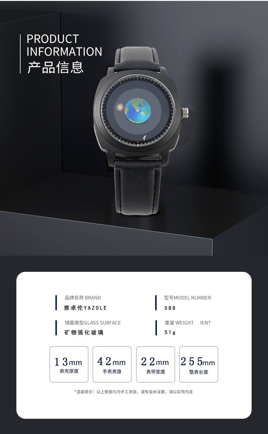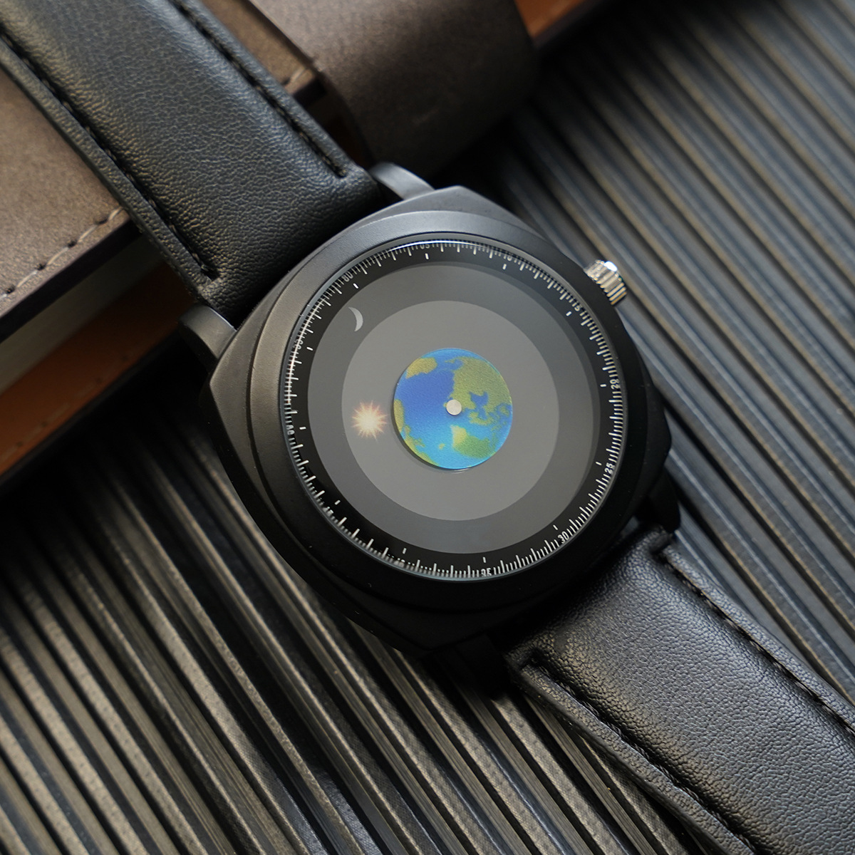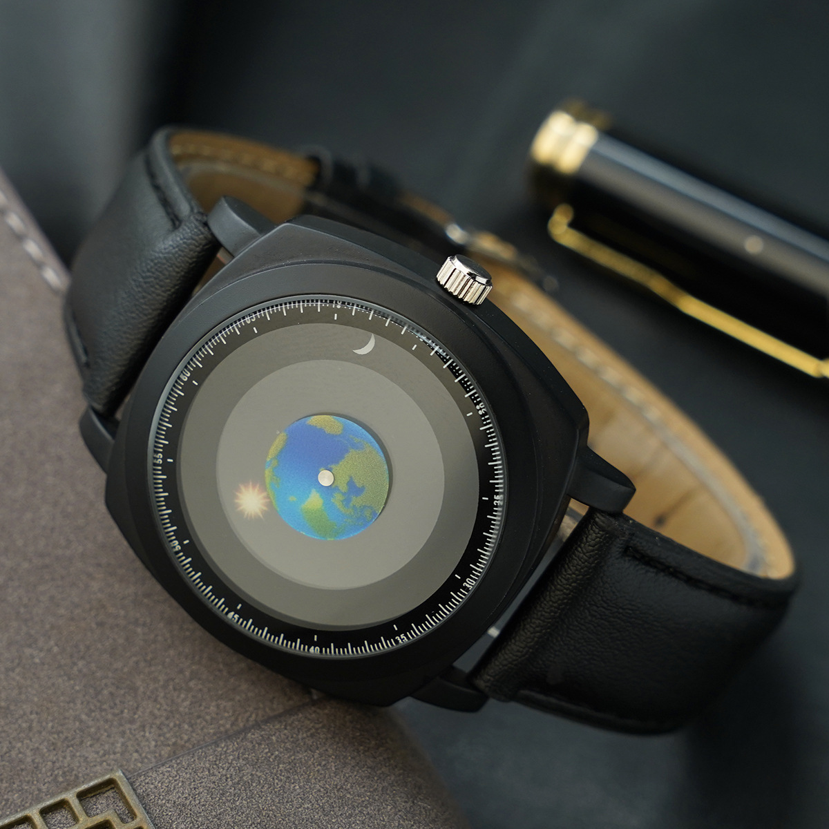 时尚潮流男士手表运动太阳月亮地球指针学生男腕表跨境石英表588